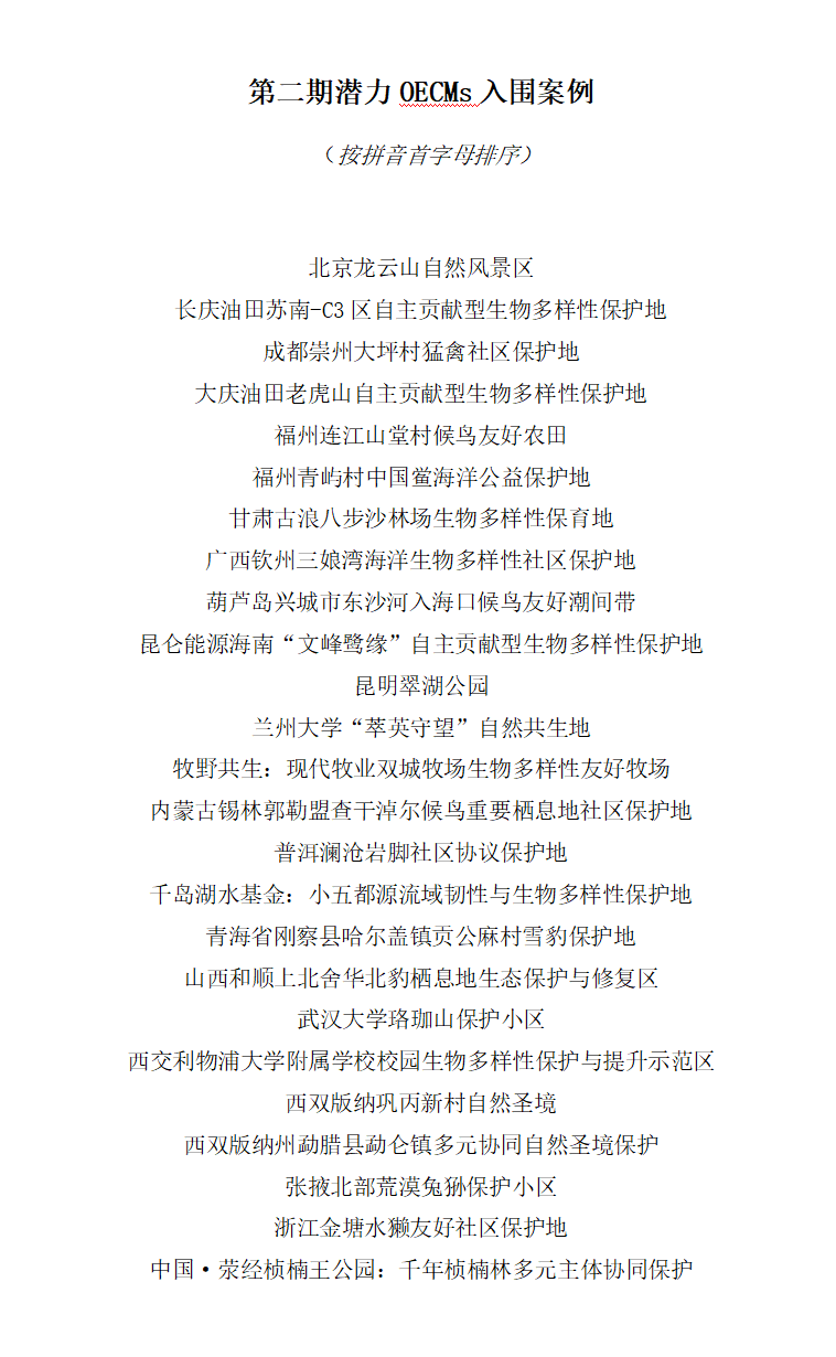 基于首期“OECMs中国潜力案例”征集成果,2025年9月,在OECMs专项基金的支持下,山水自然保护中心、中华环境保护基金会、华泰公益基金会等联合发起第二期征集活动。