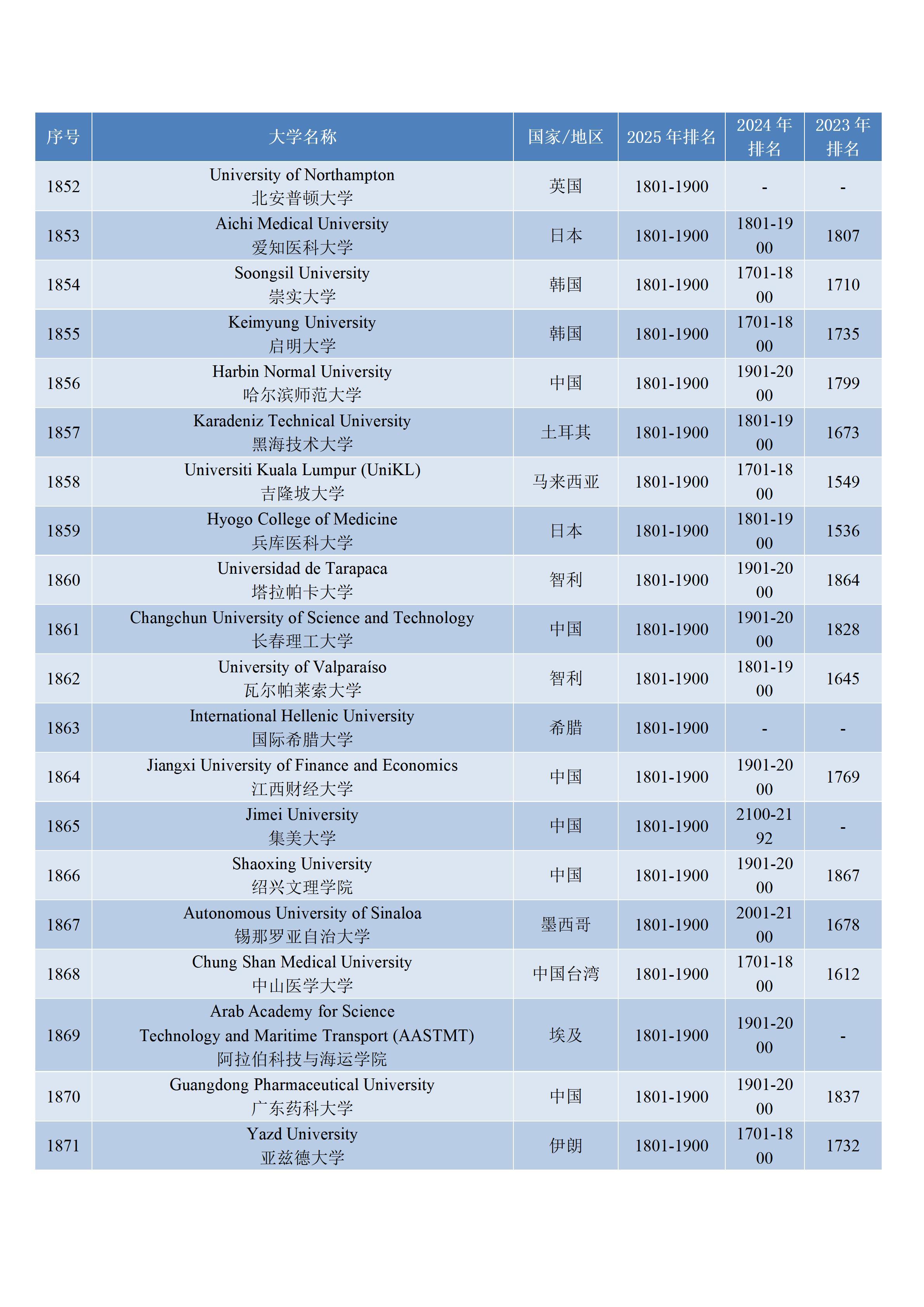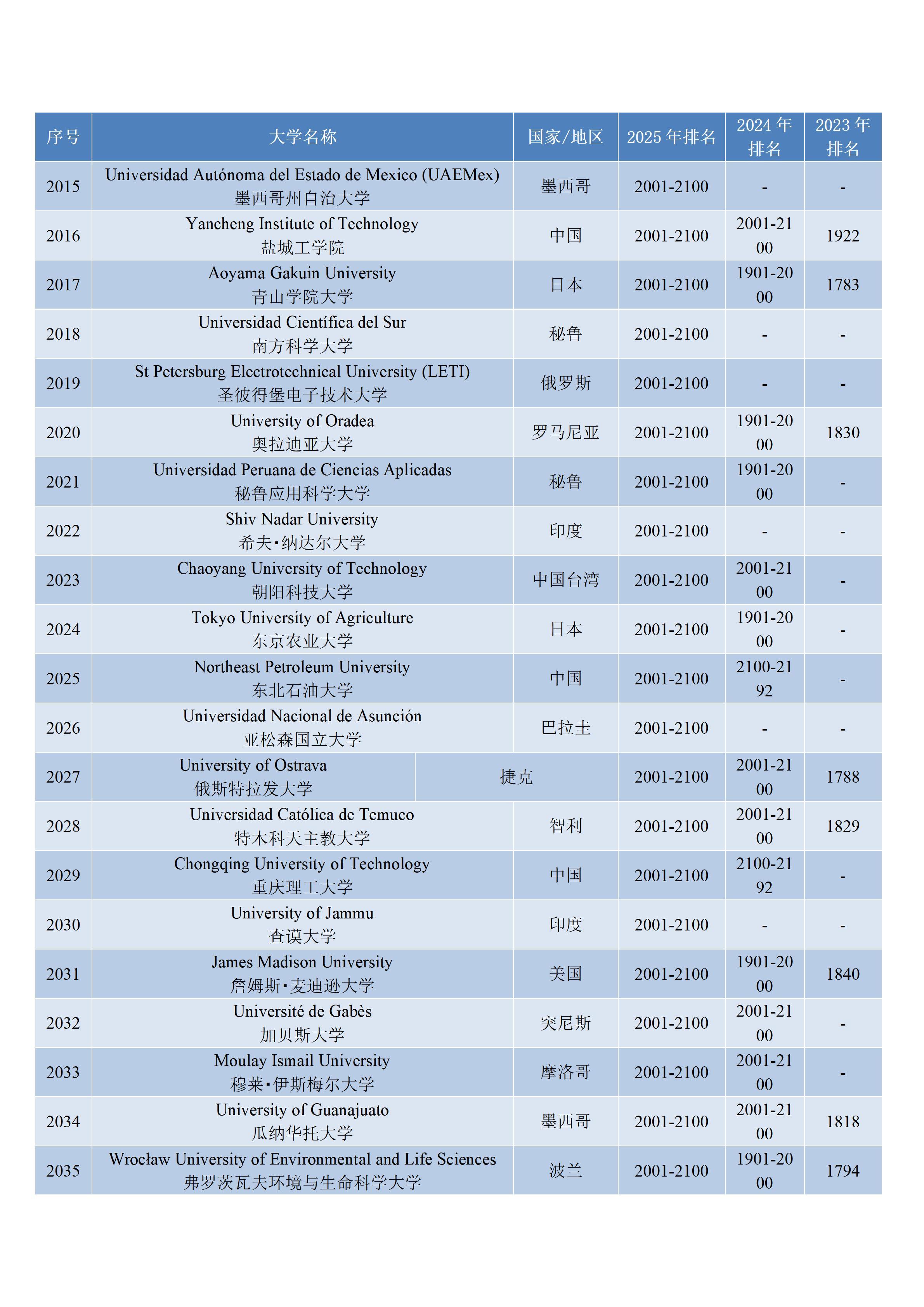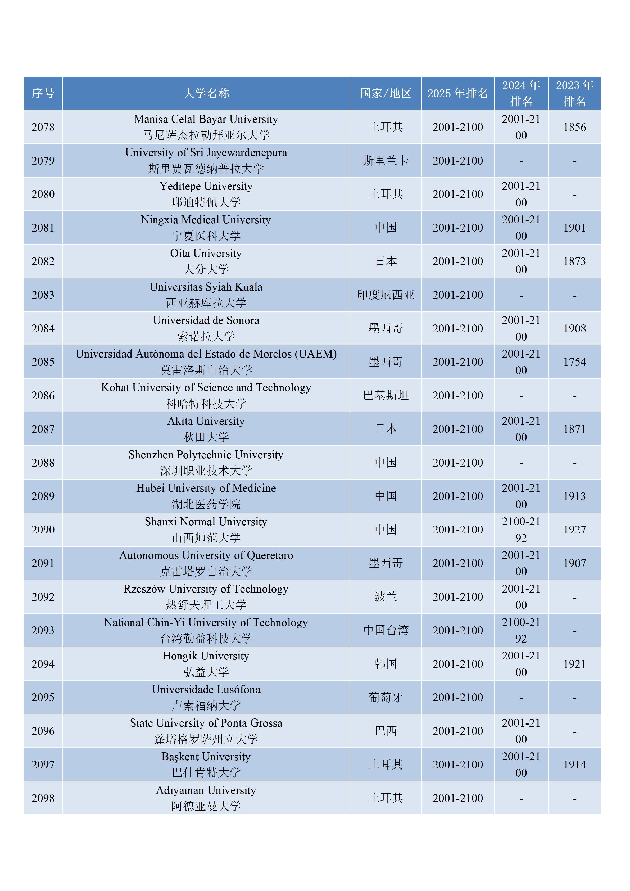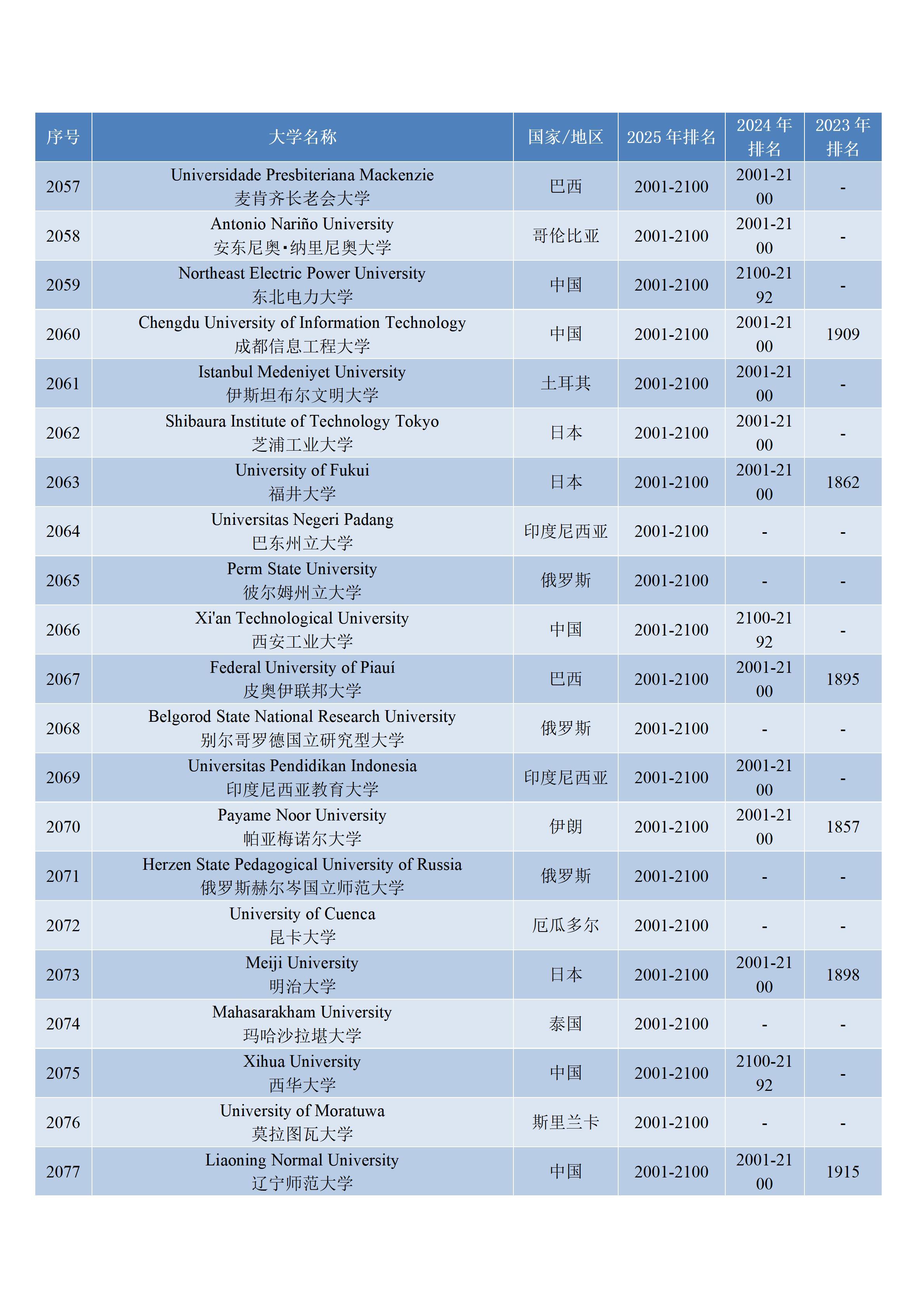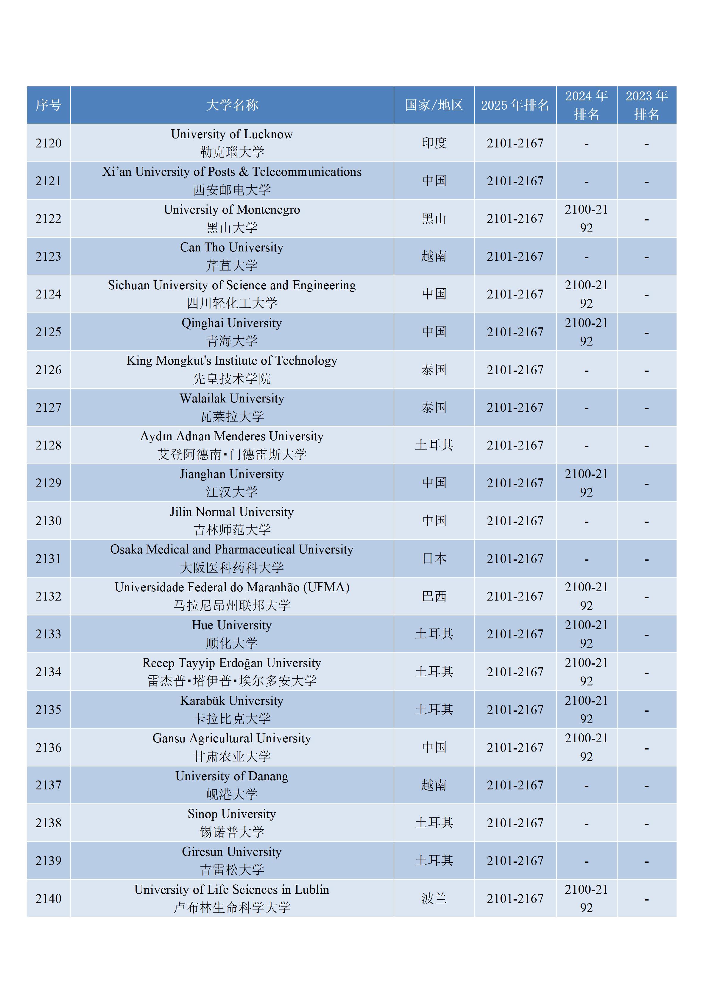 附:2167所大学的2023-2025年世界大学第三方指数排名