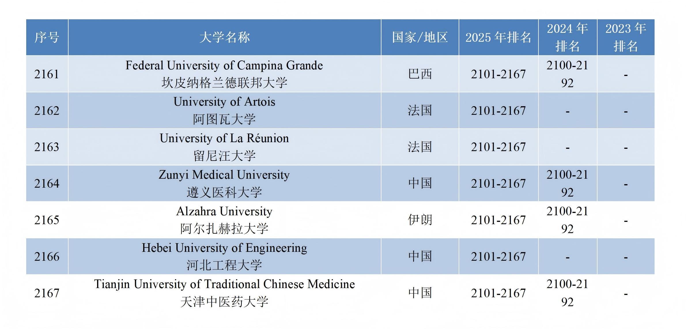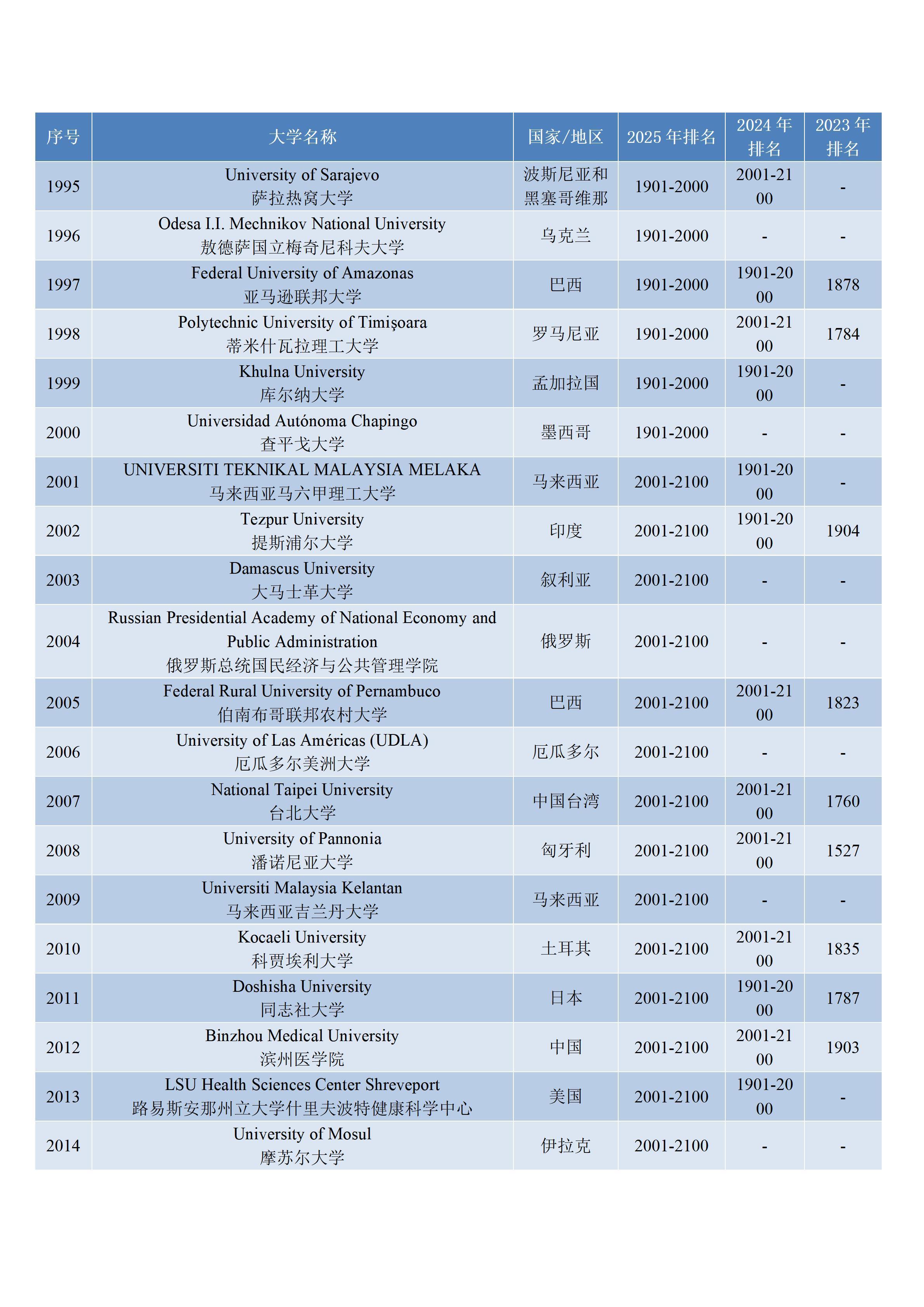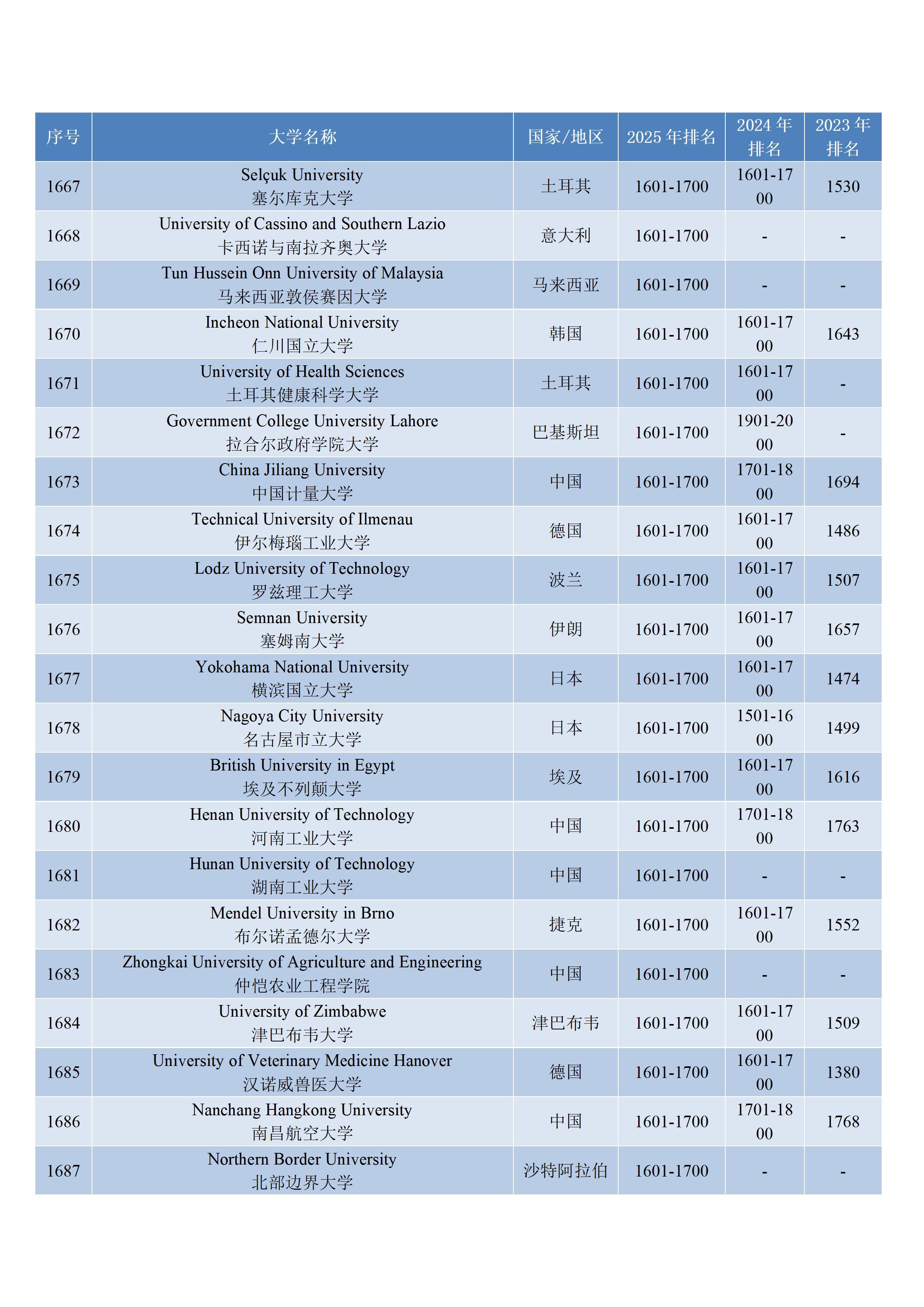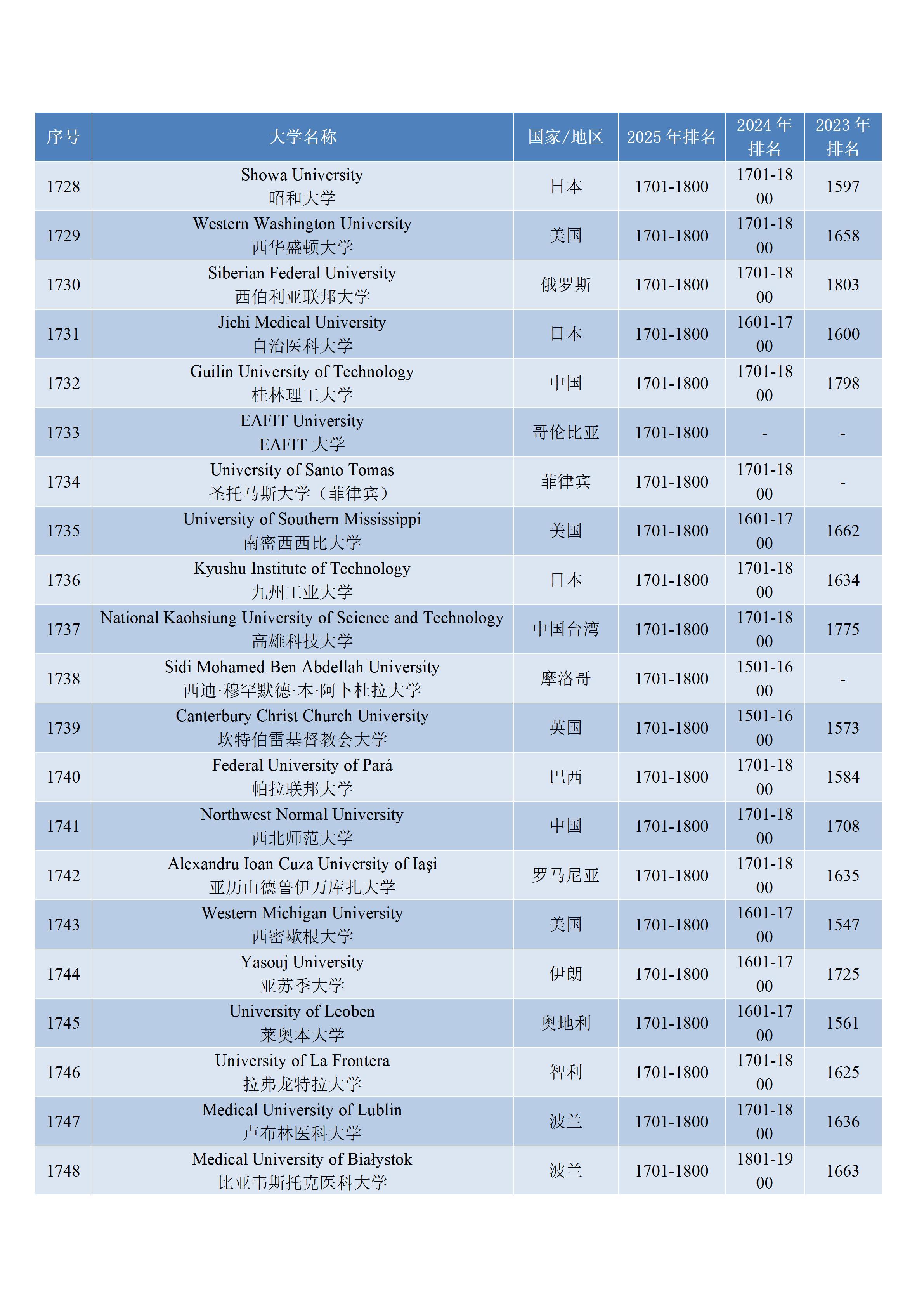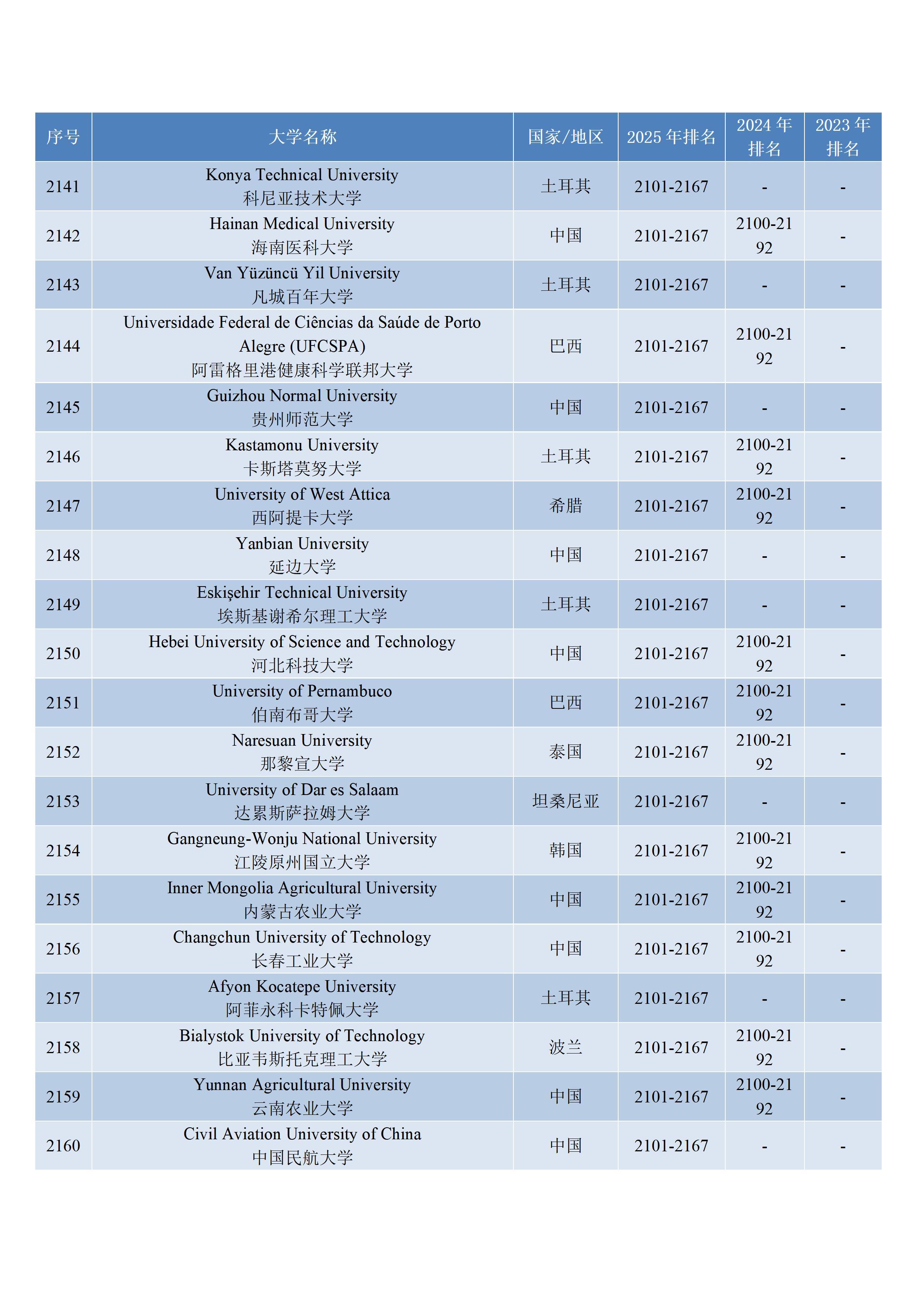 附:2167所大学的2023-2025年世界大学第三方指数排名