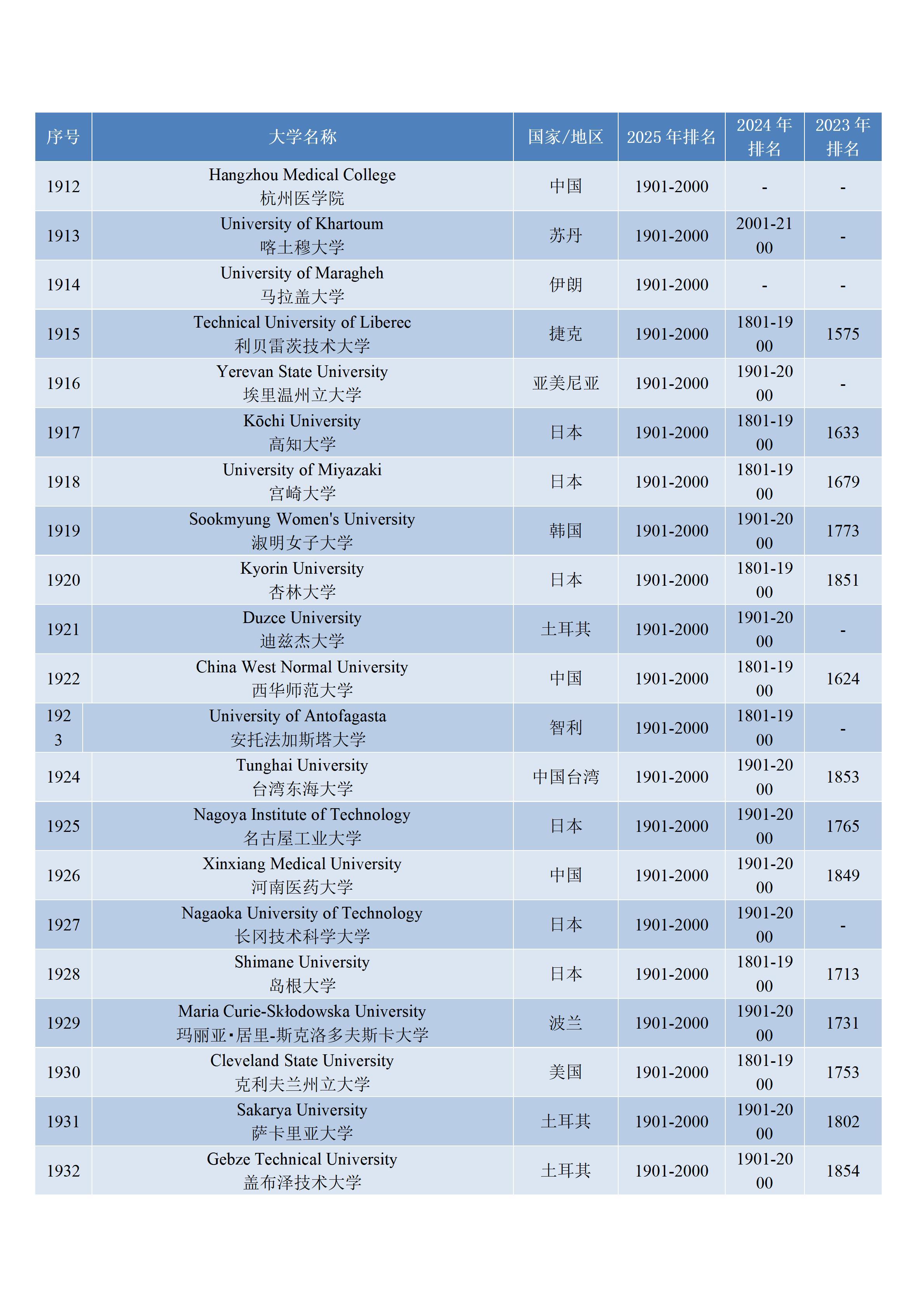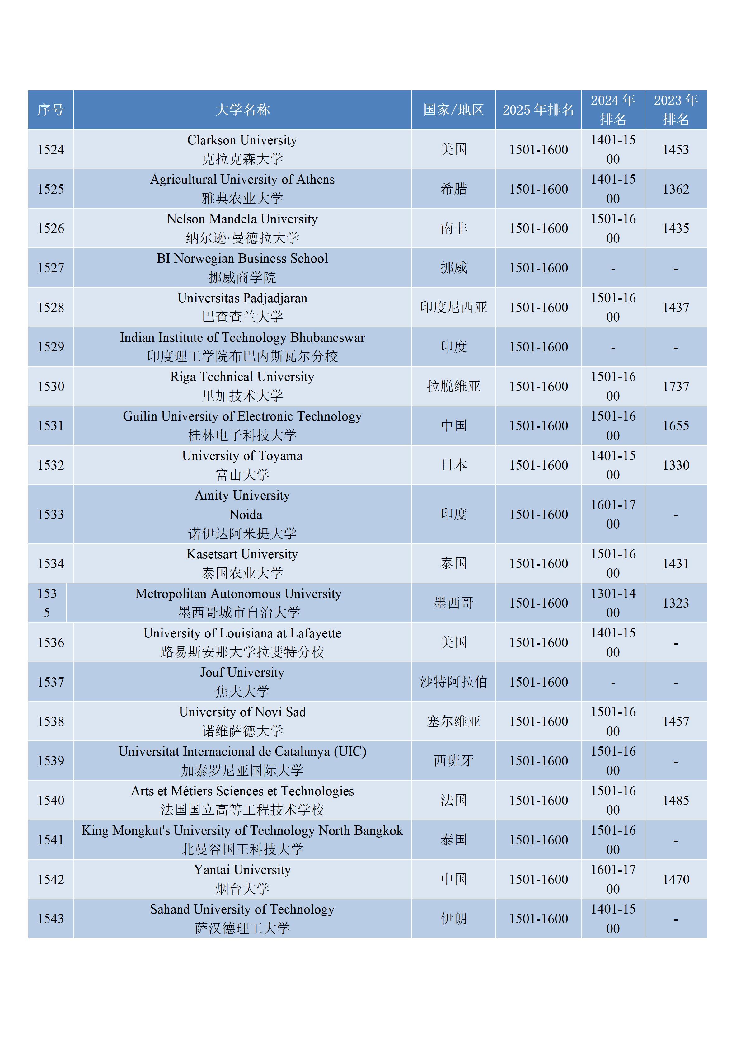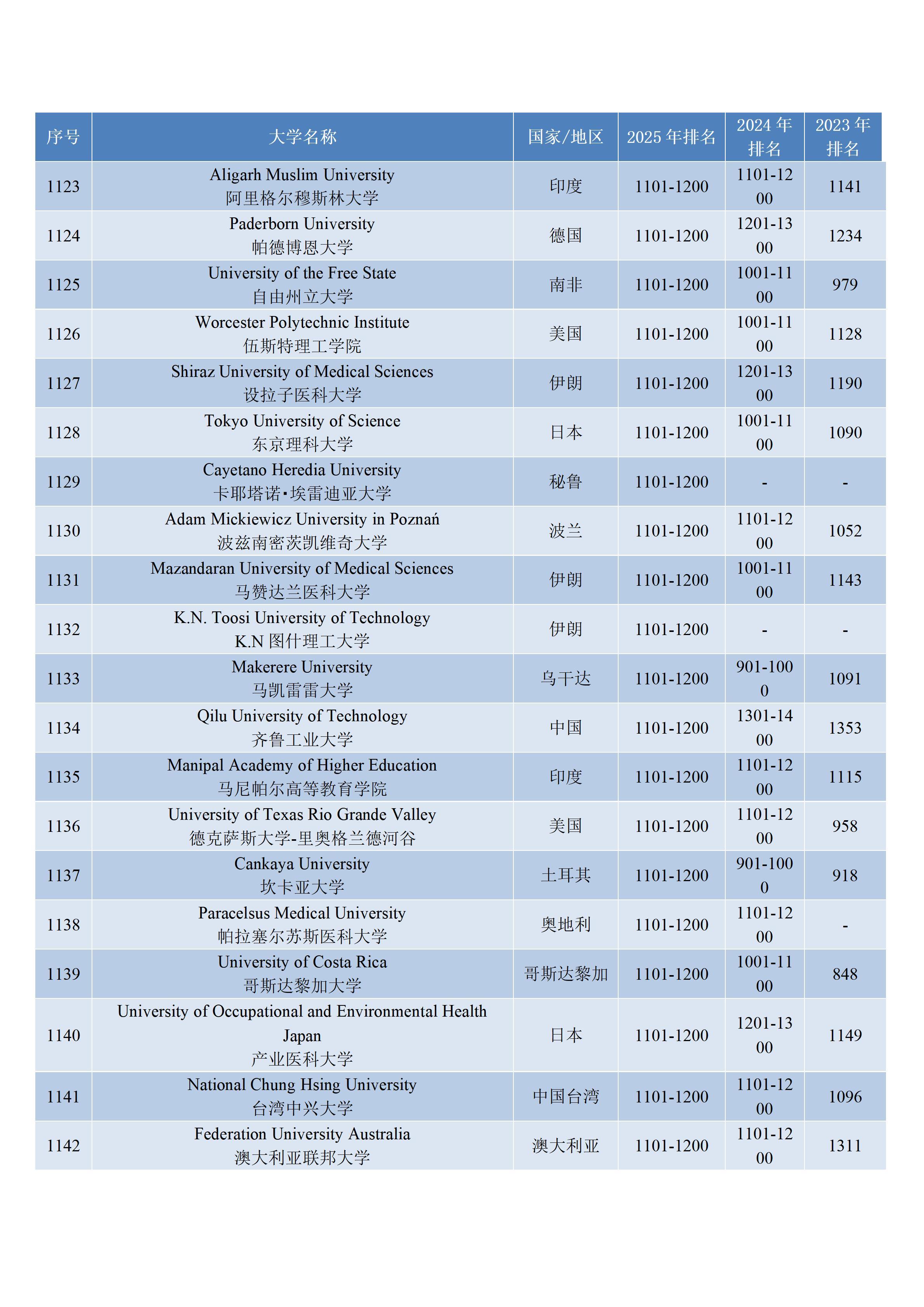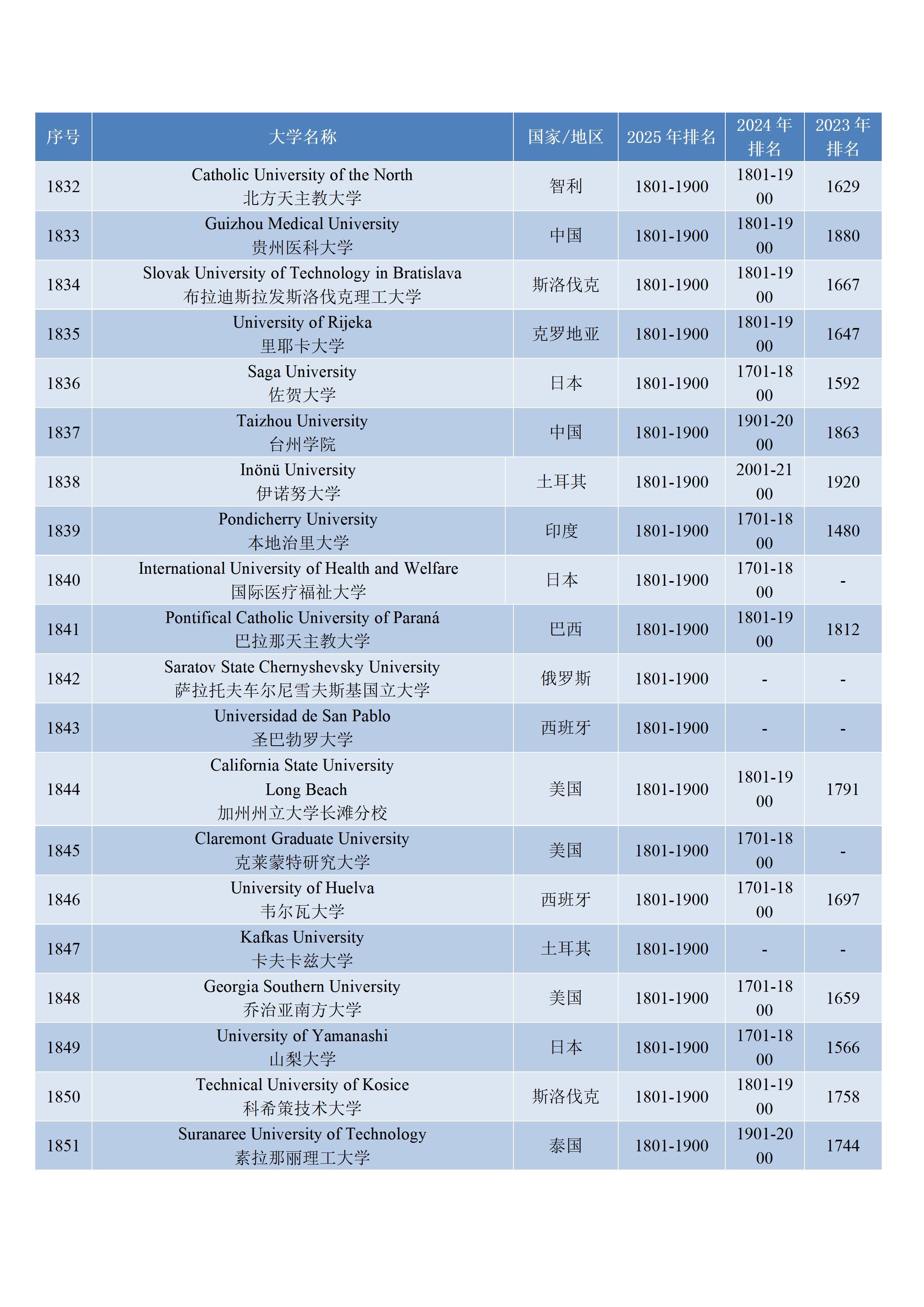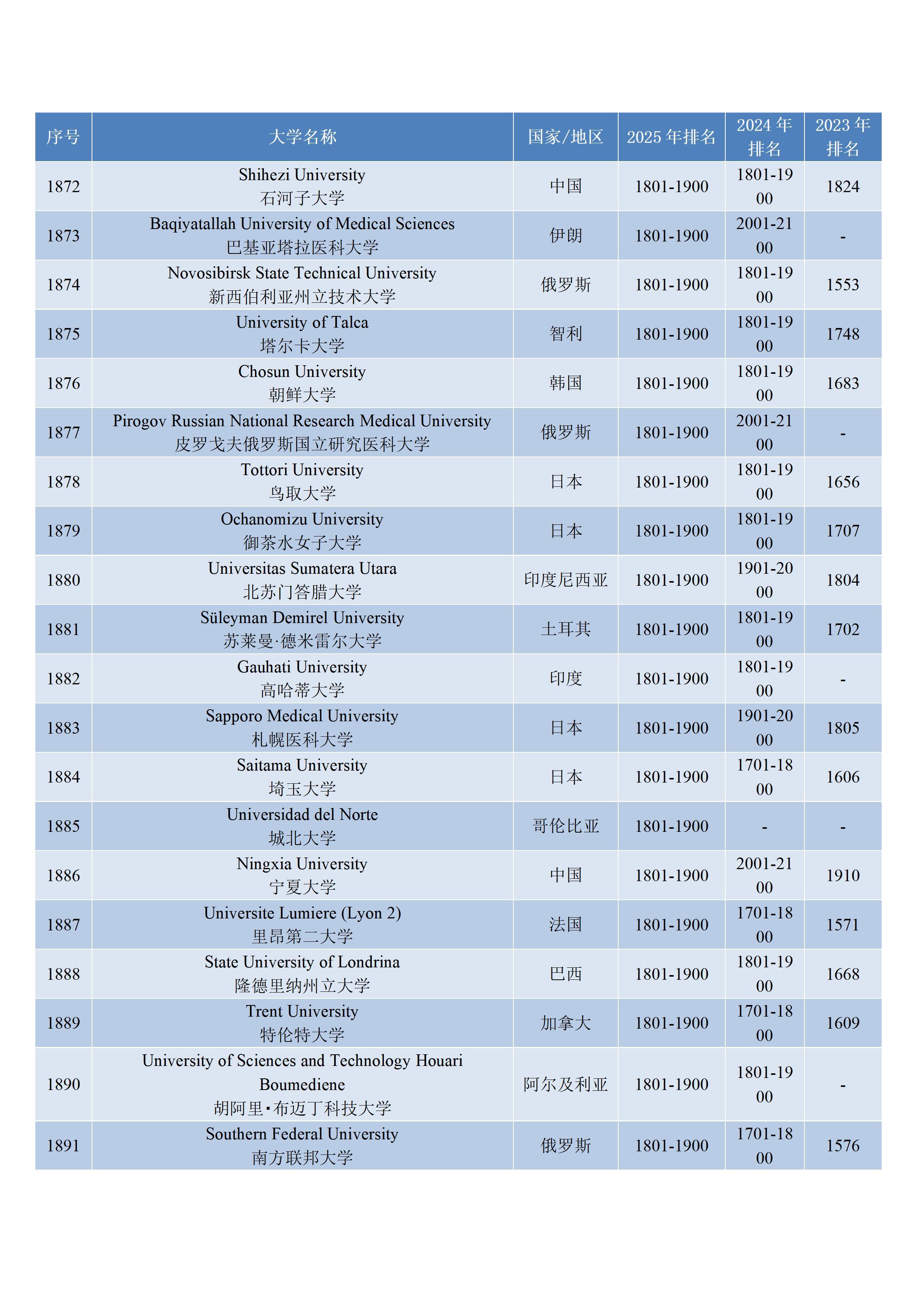 附:2167所大学的2023-2025年世界大学第三方指数排名
