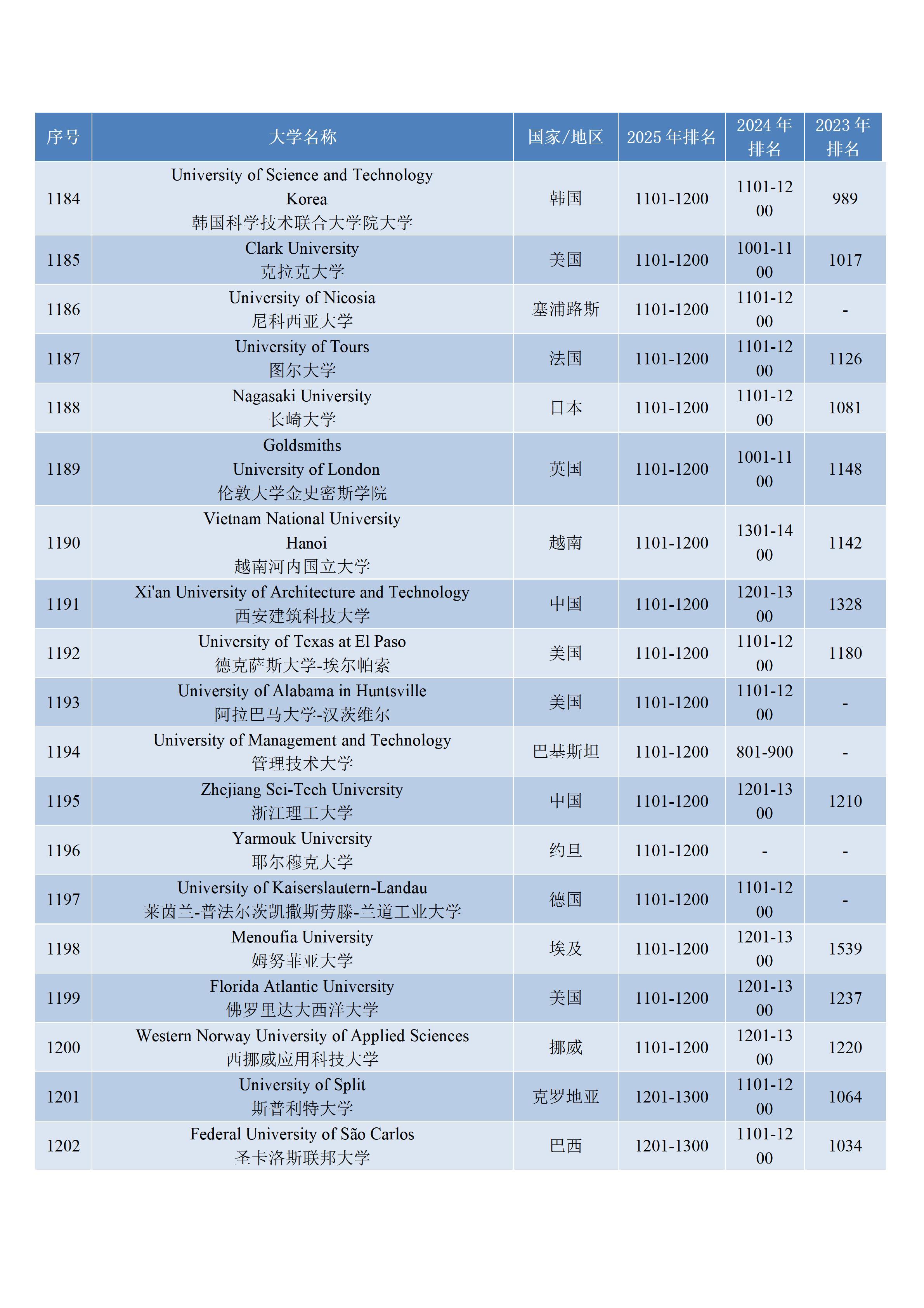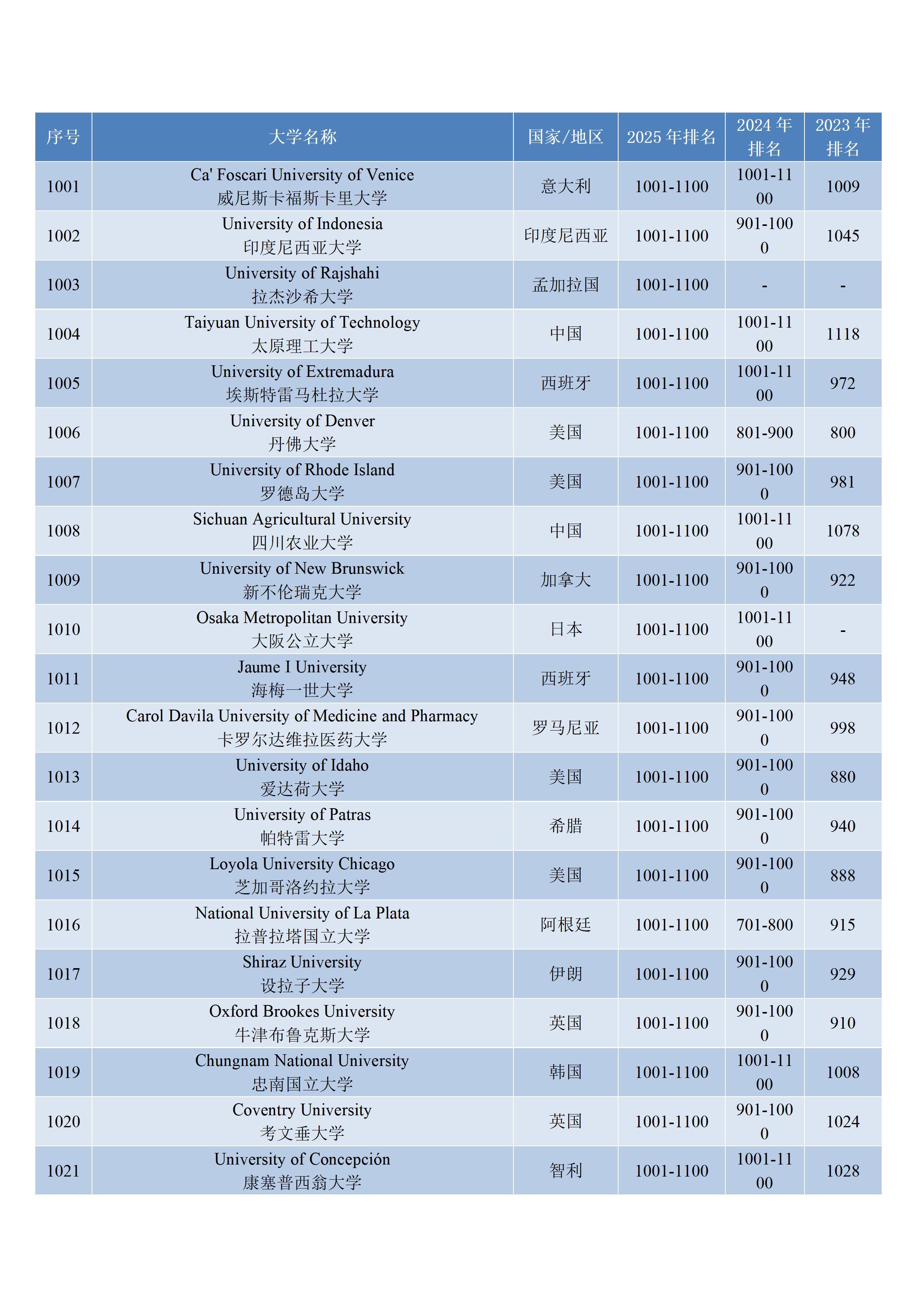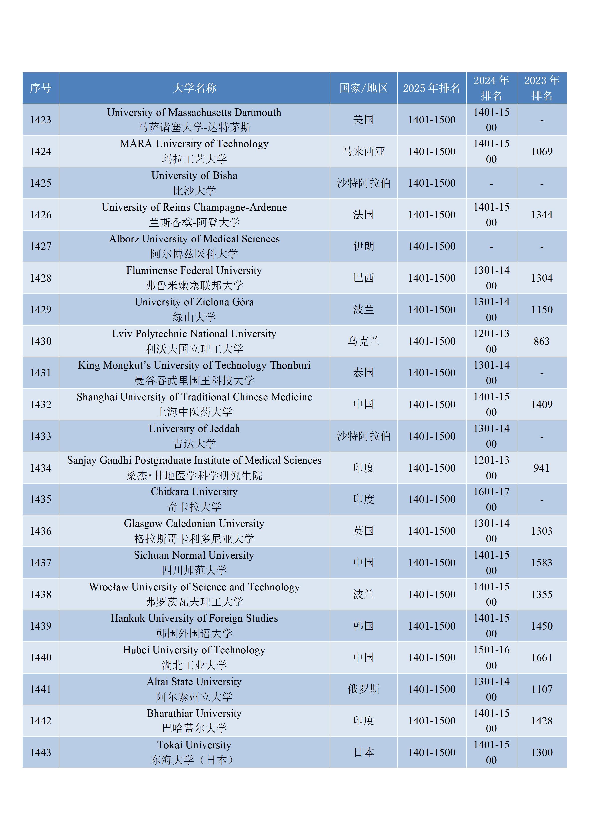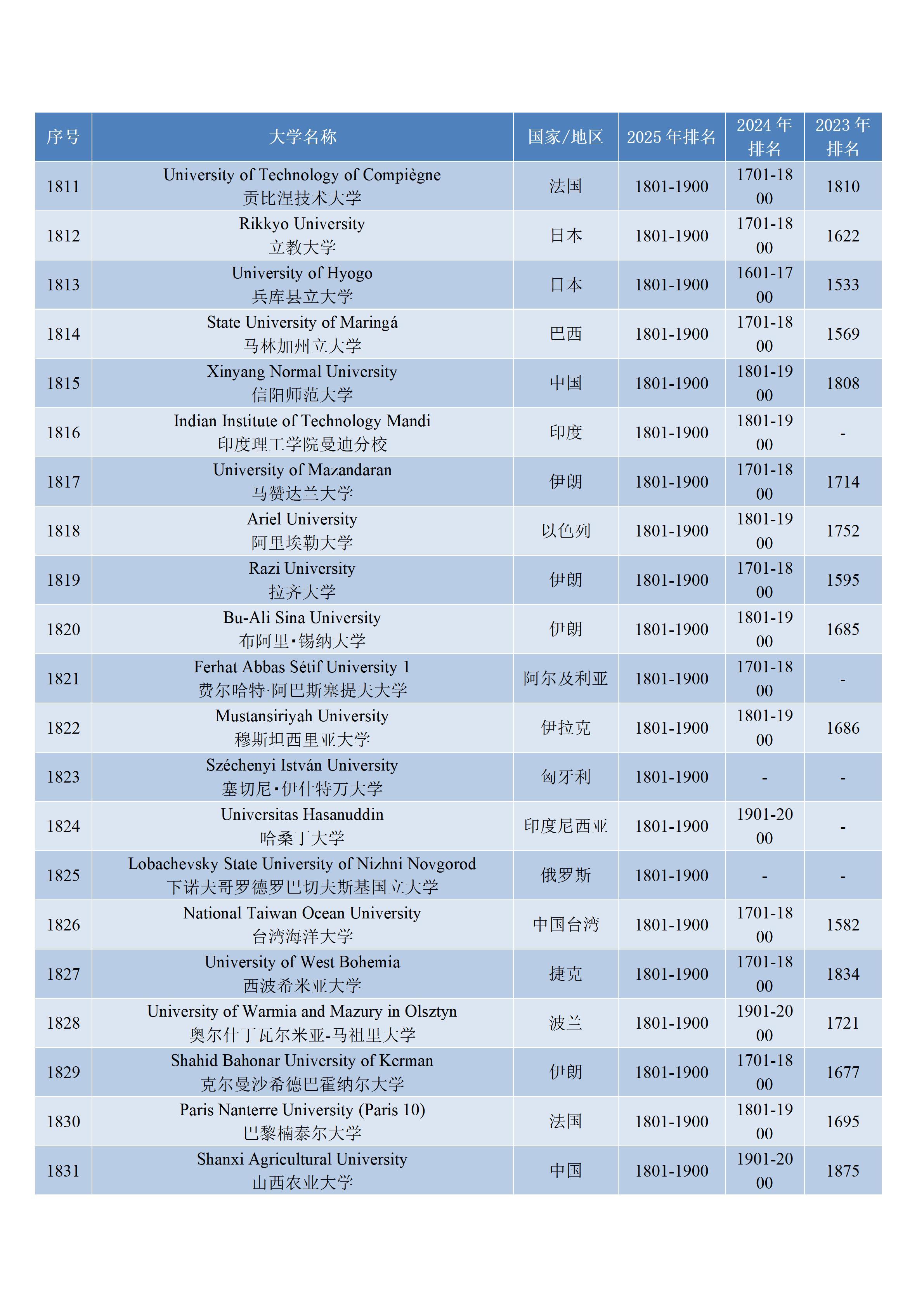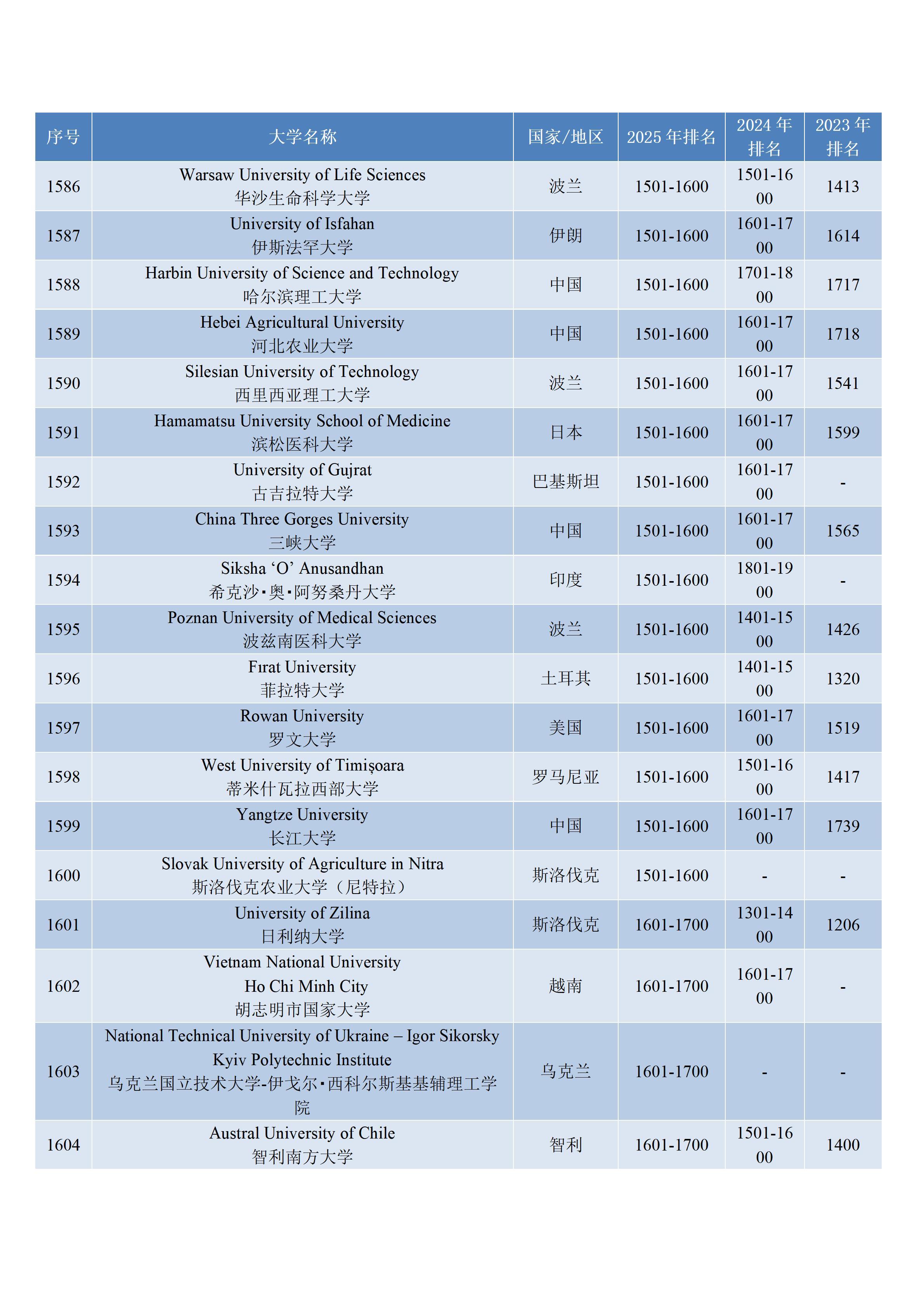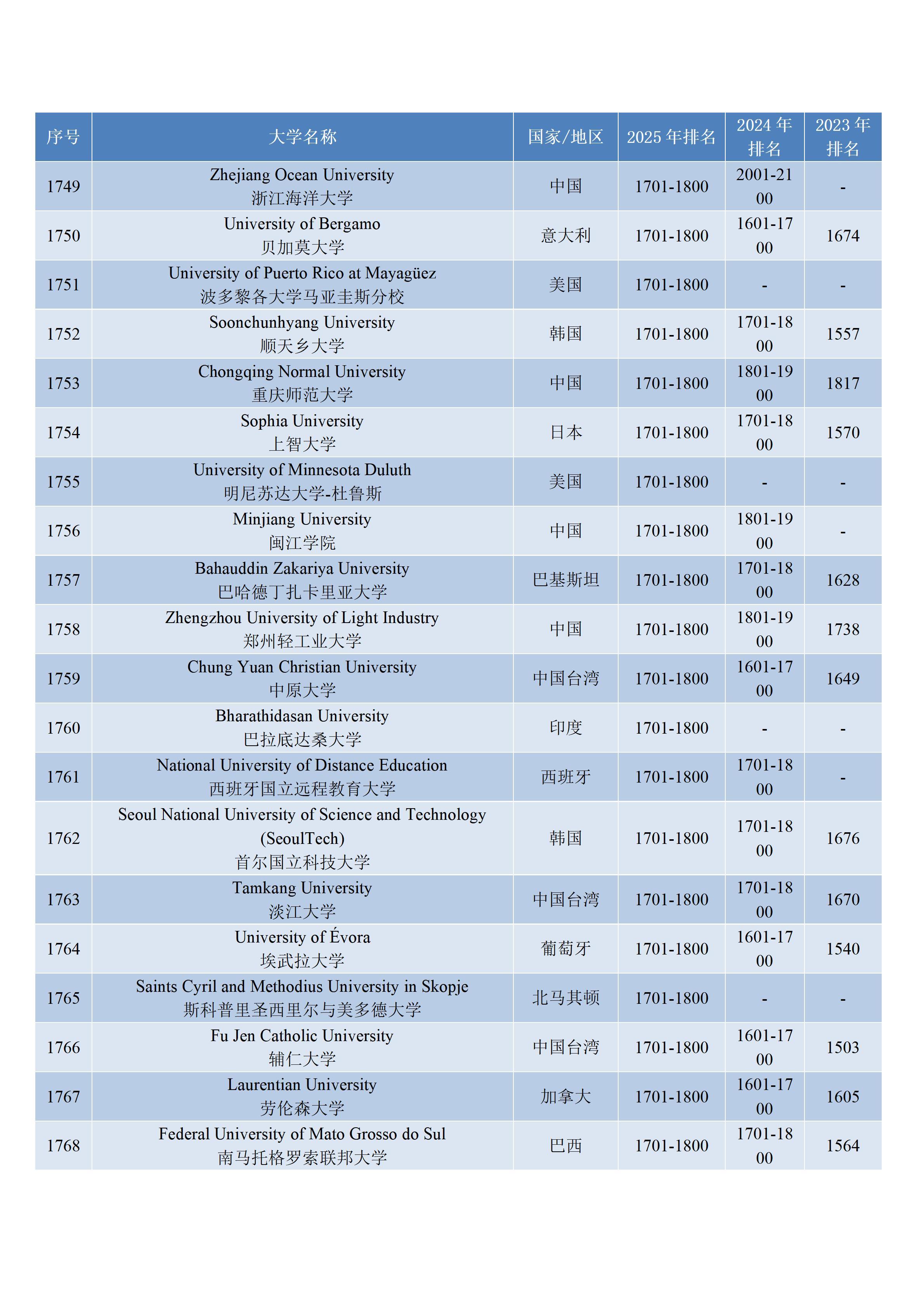 附:2167所大学的2023-2025年世界大学第三方指数排名