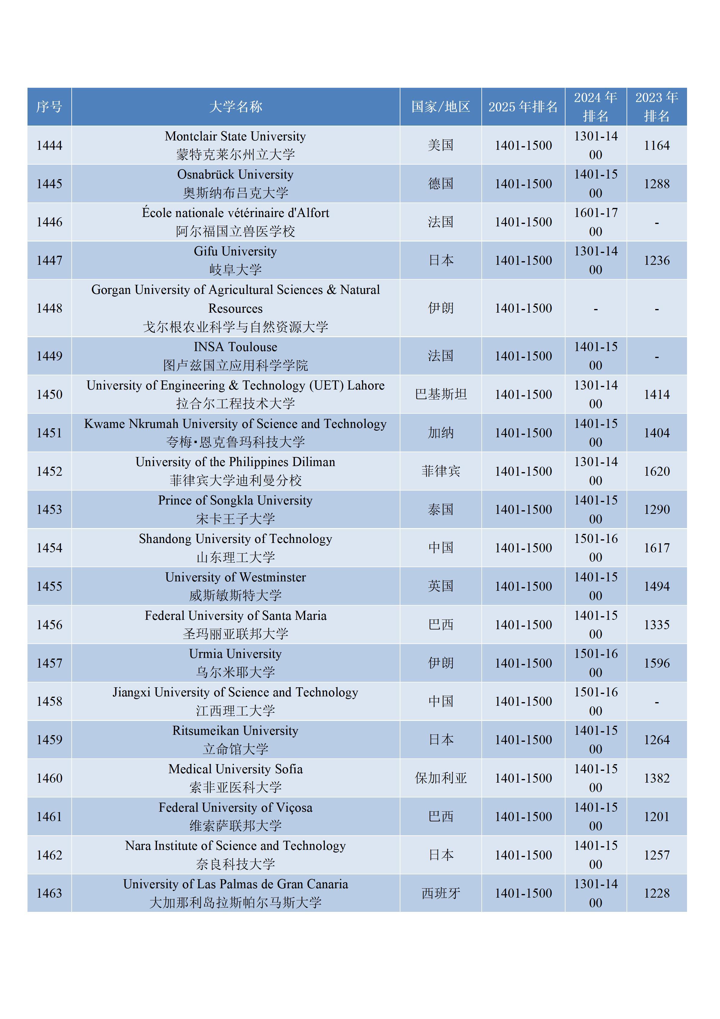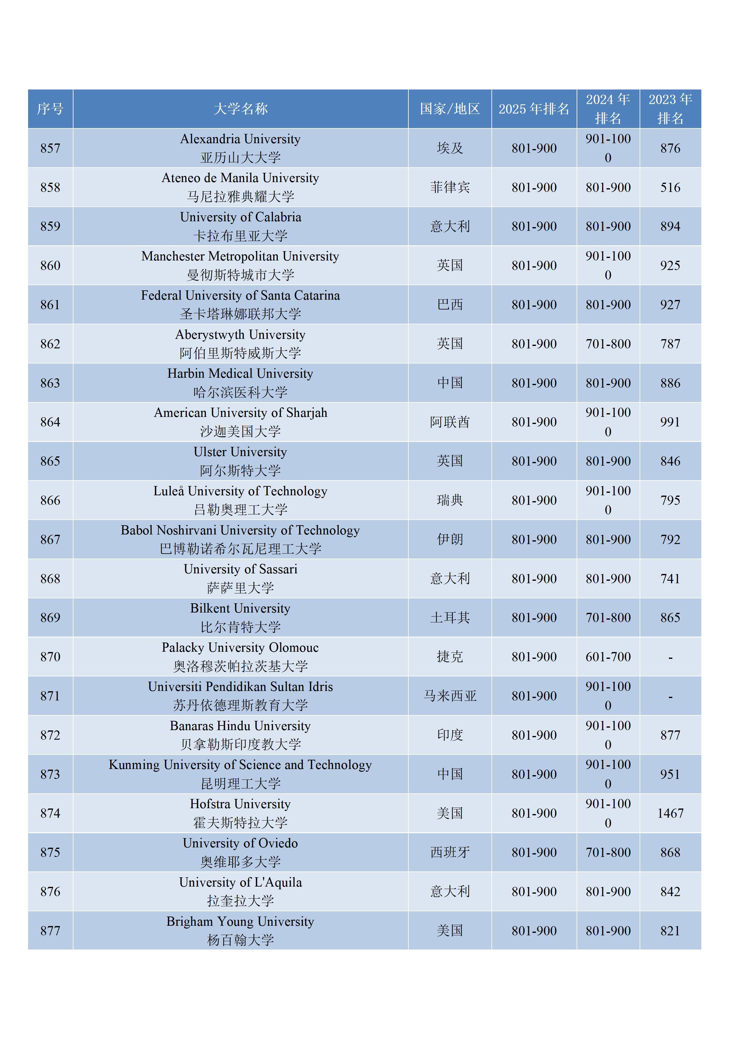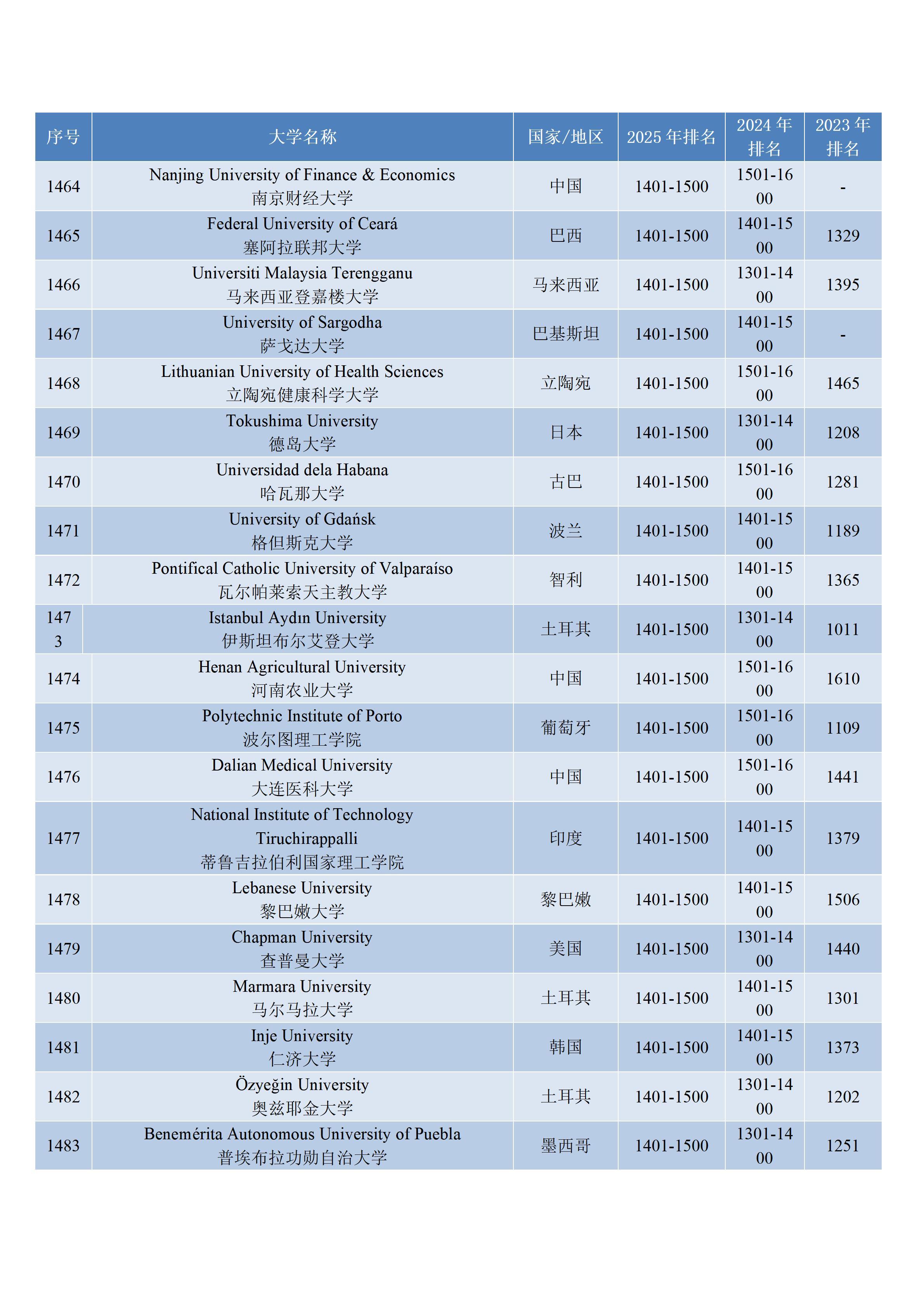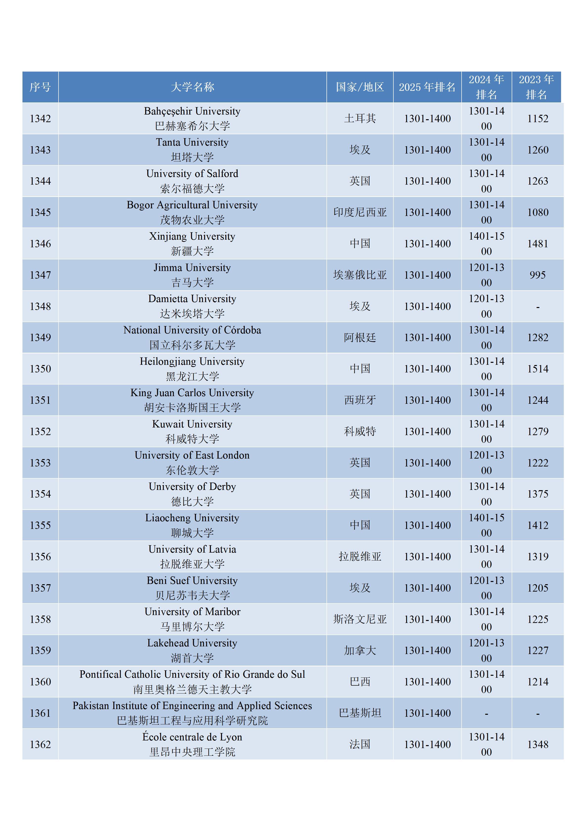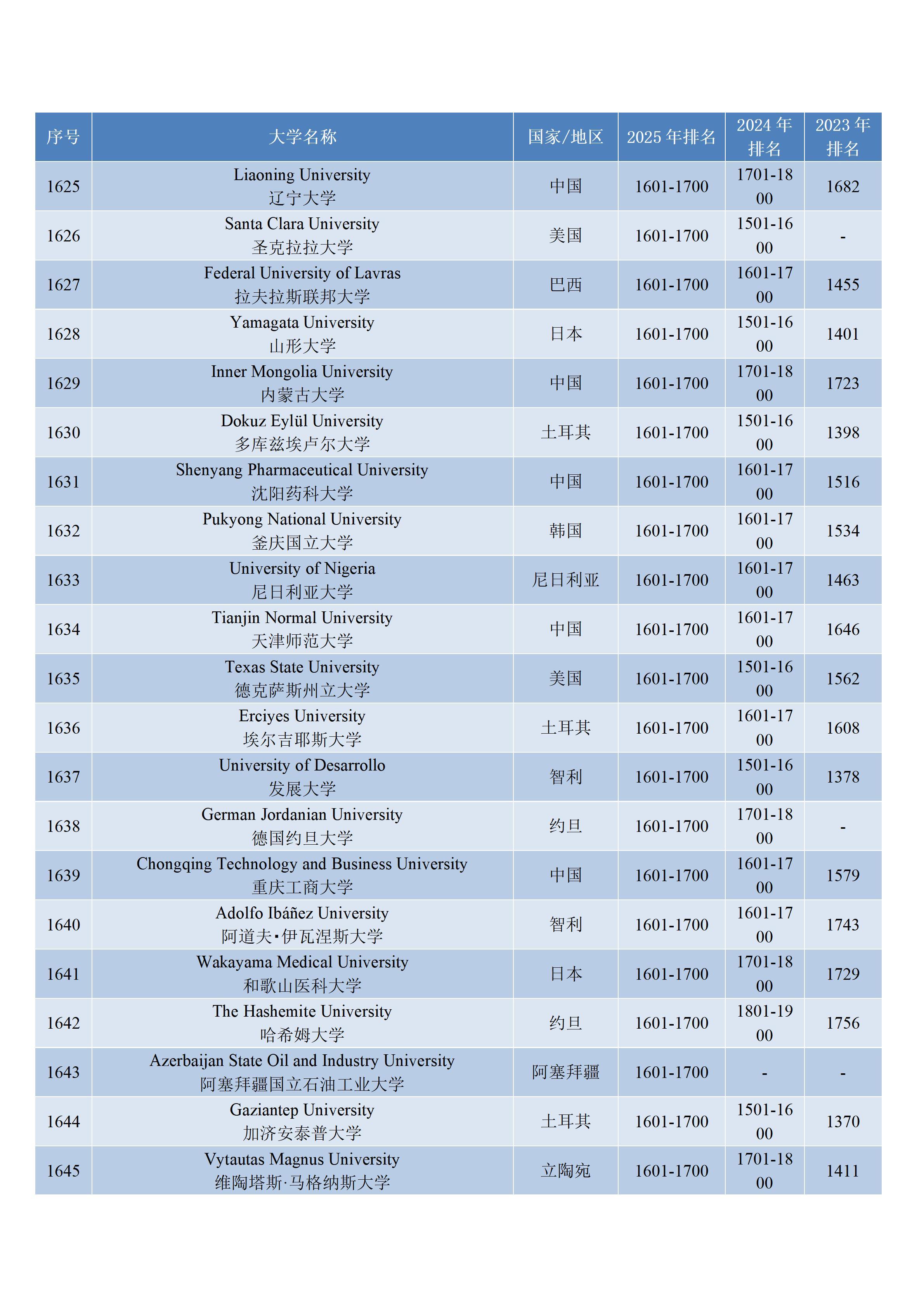 附:2167所大学的2023-2025年世界大学第三方指数排名