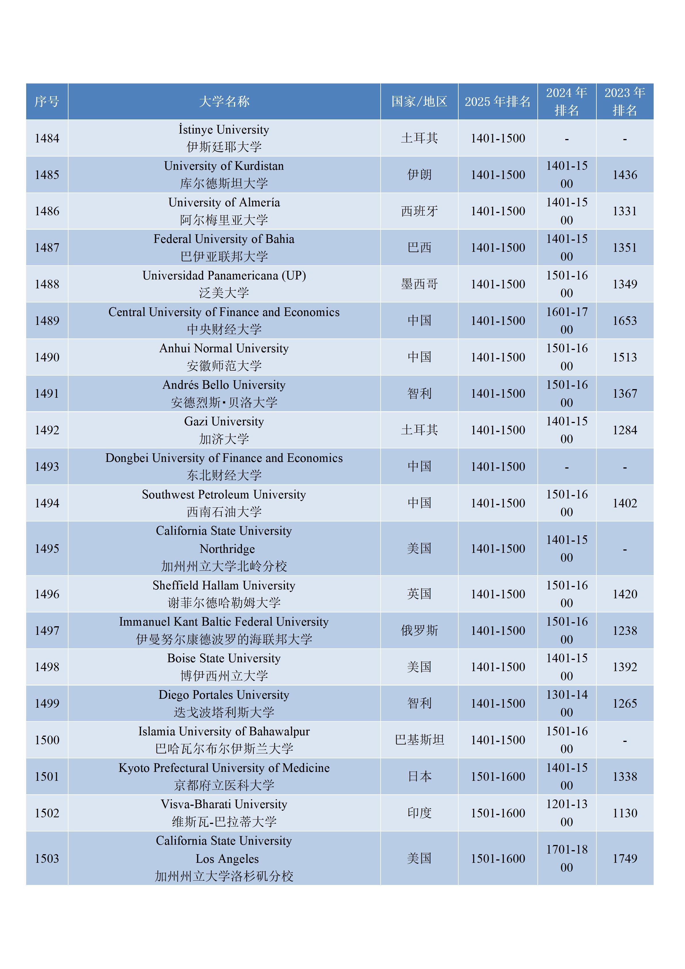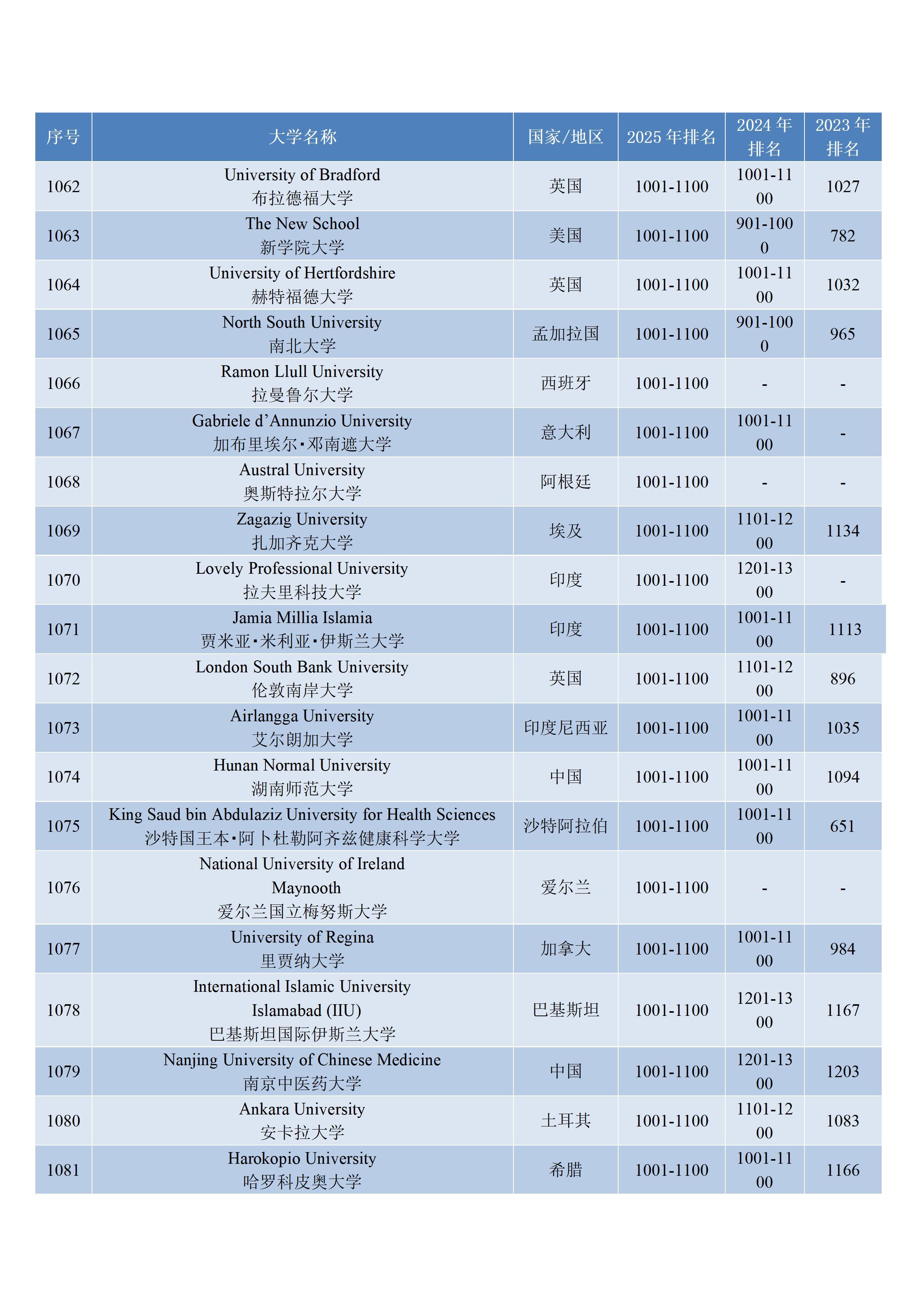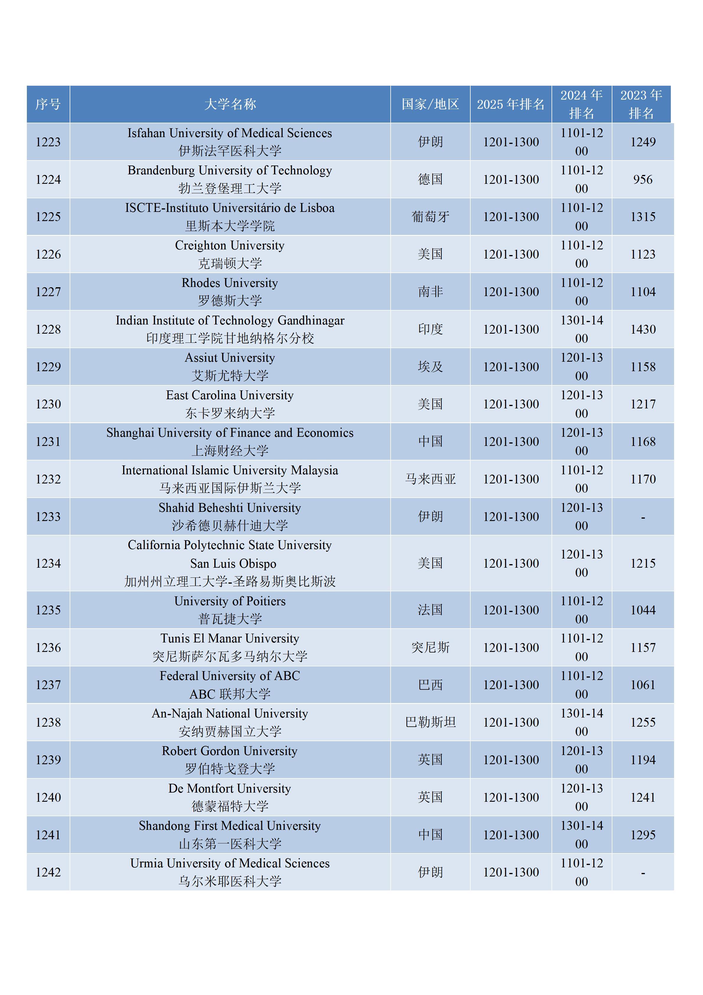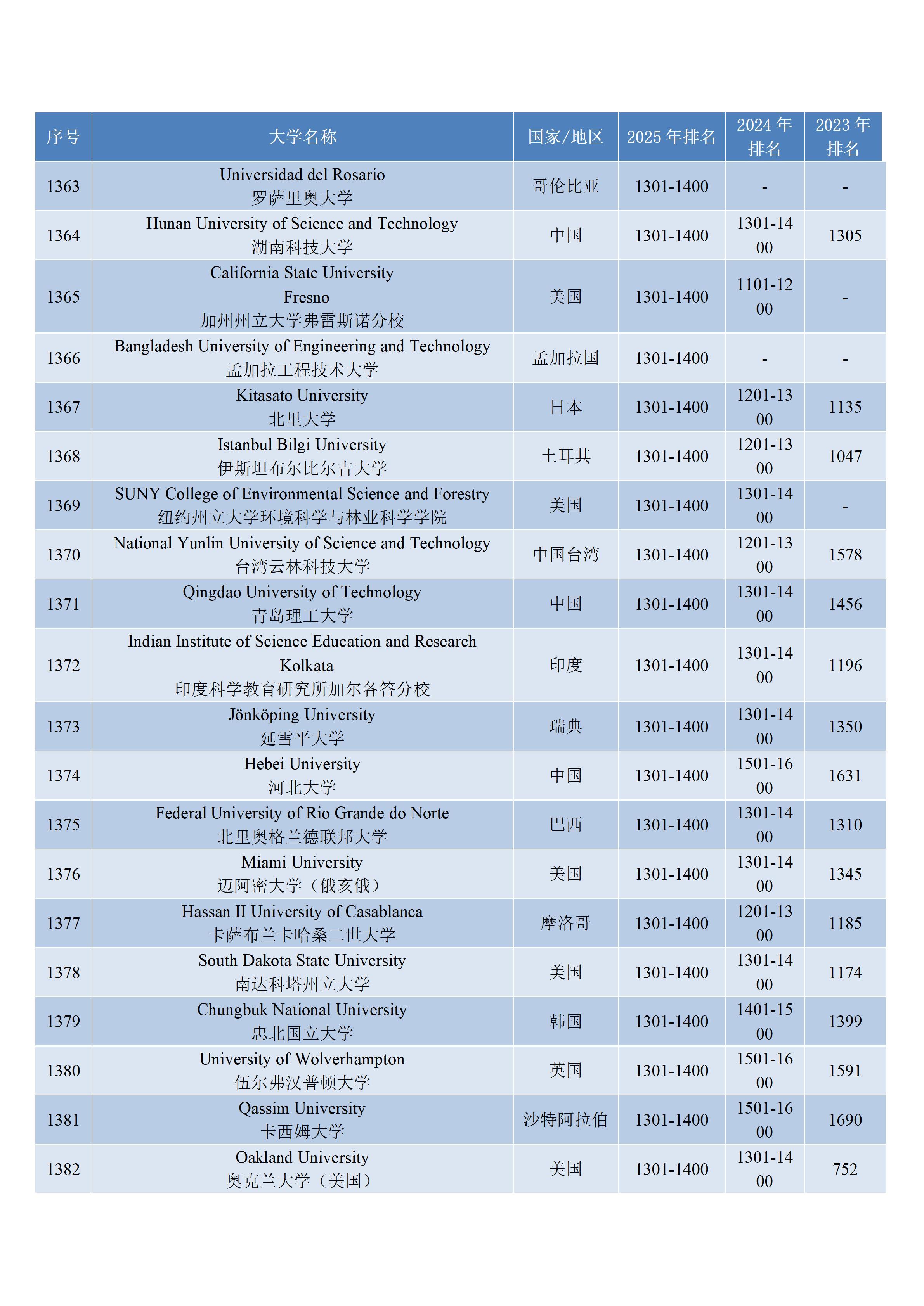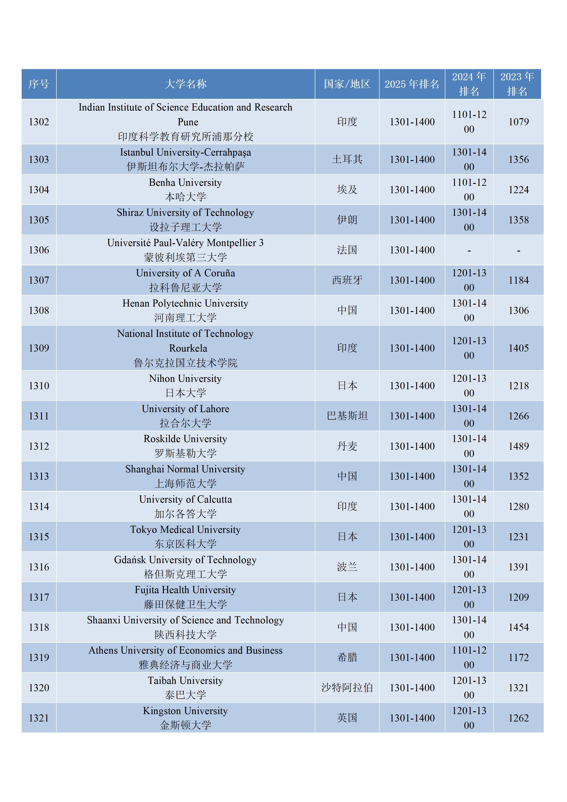 附:2167所大学的2023-2025年世界大学第三方指数排名