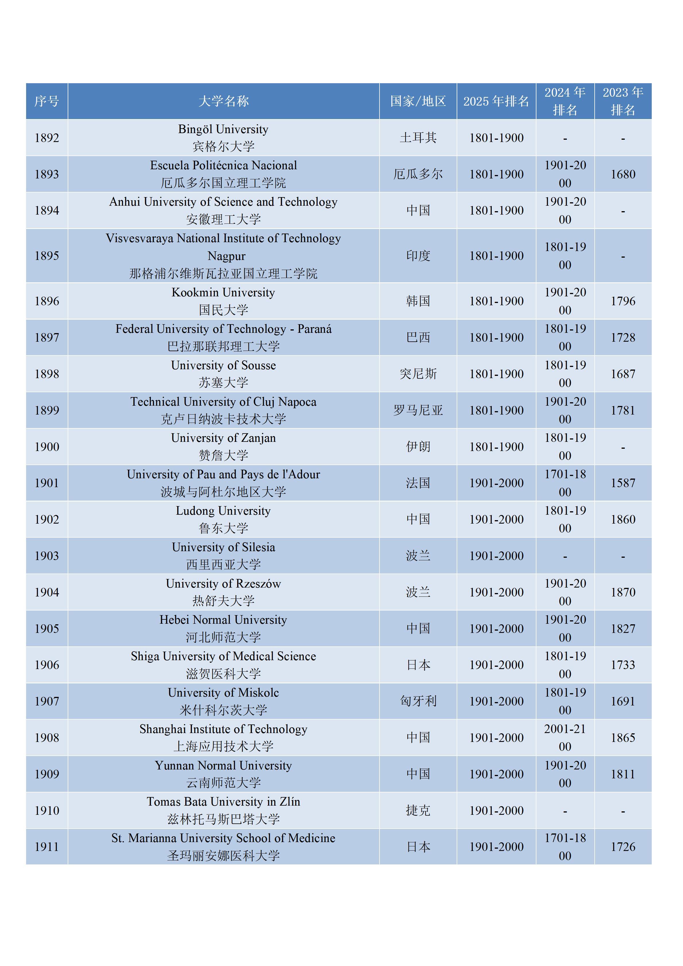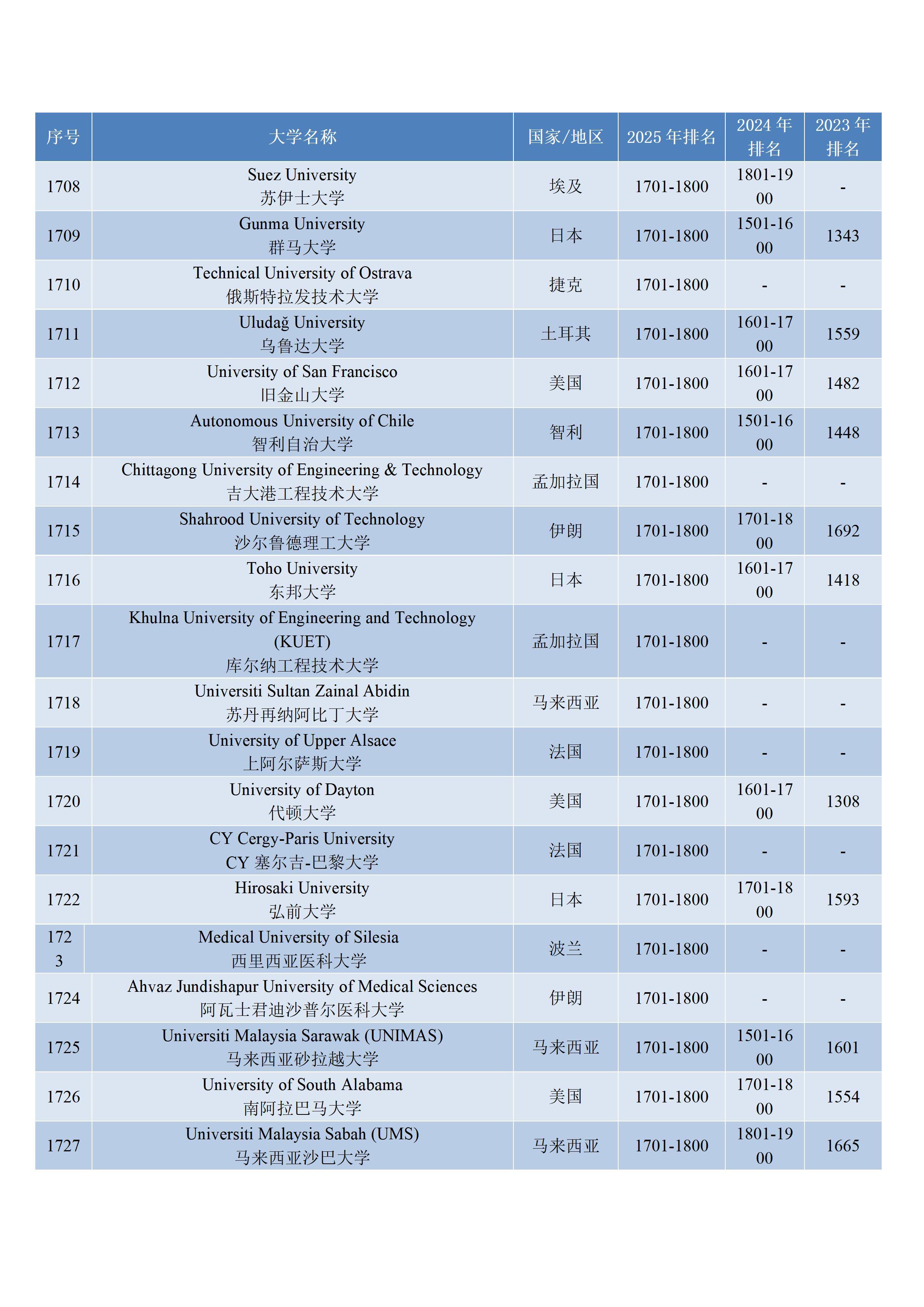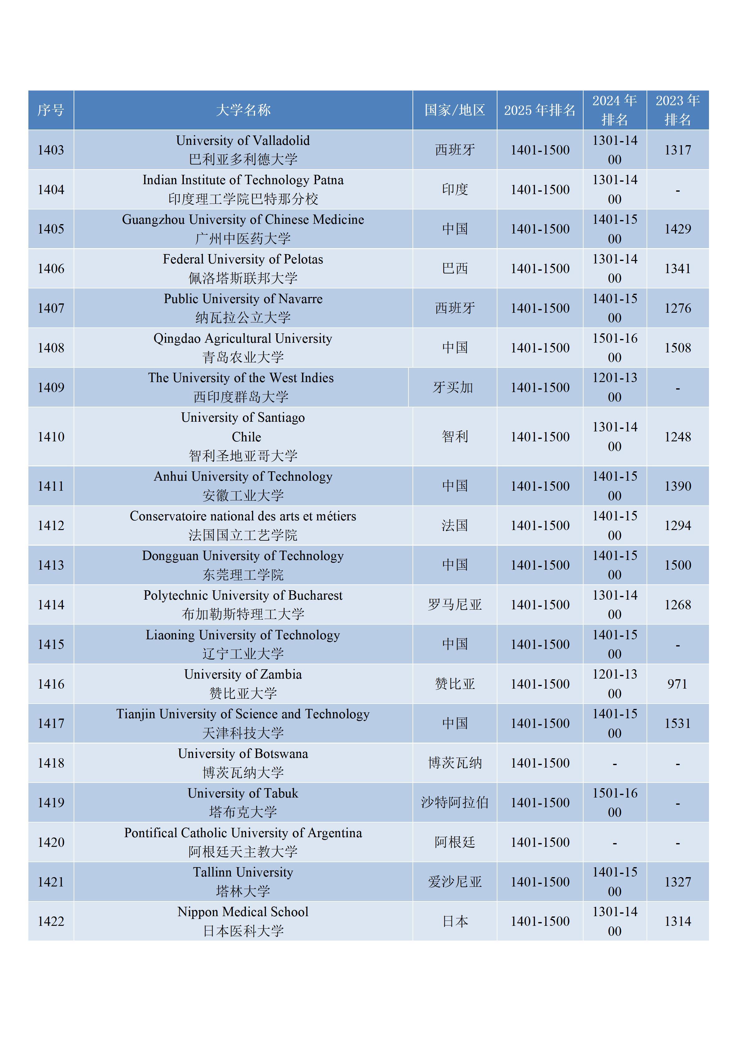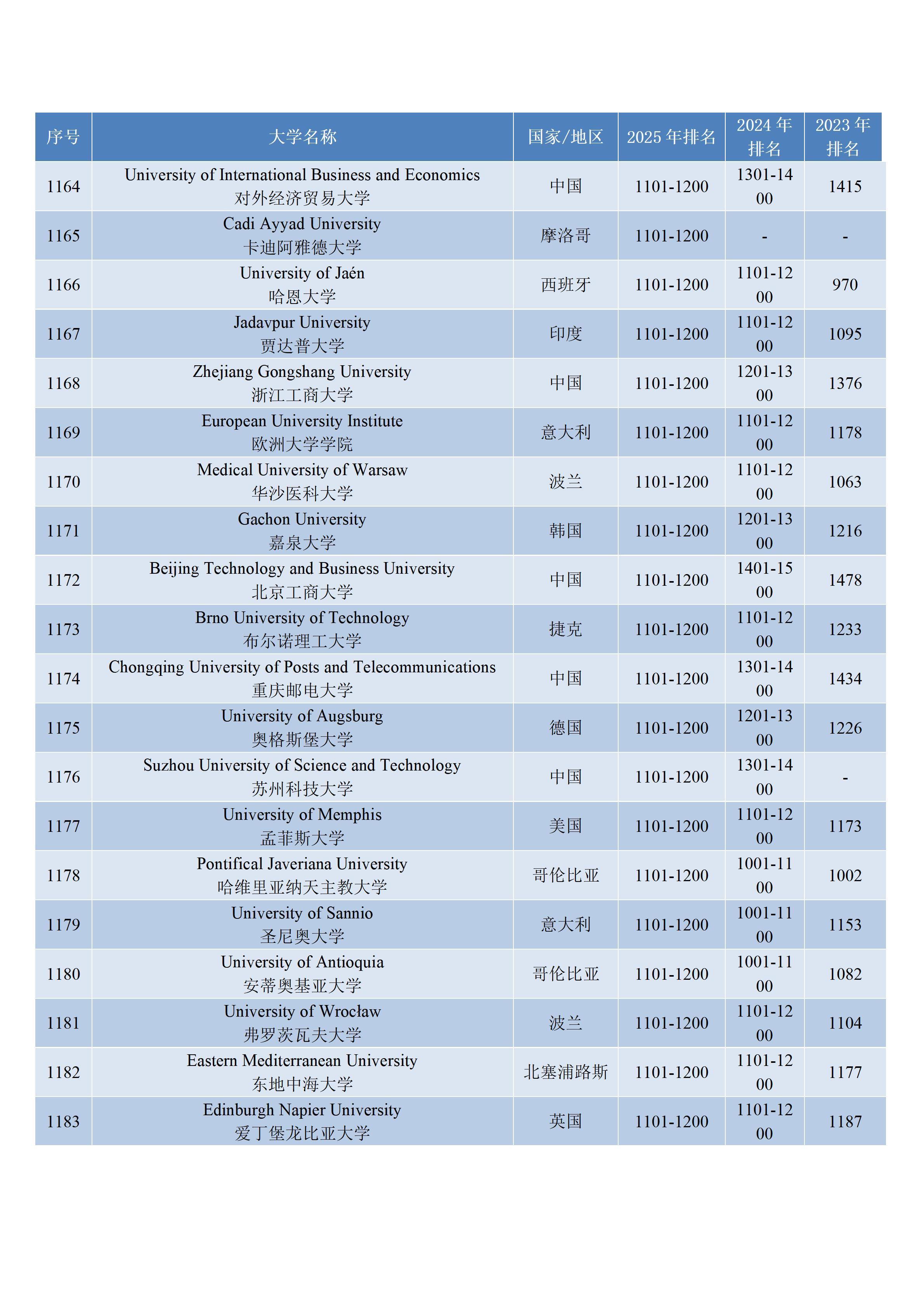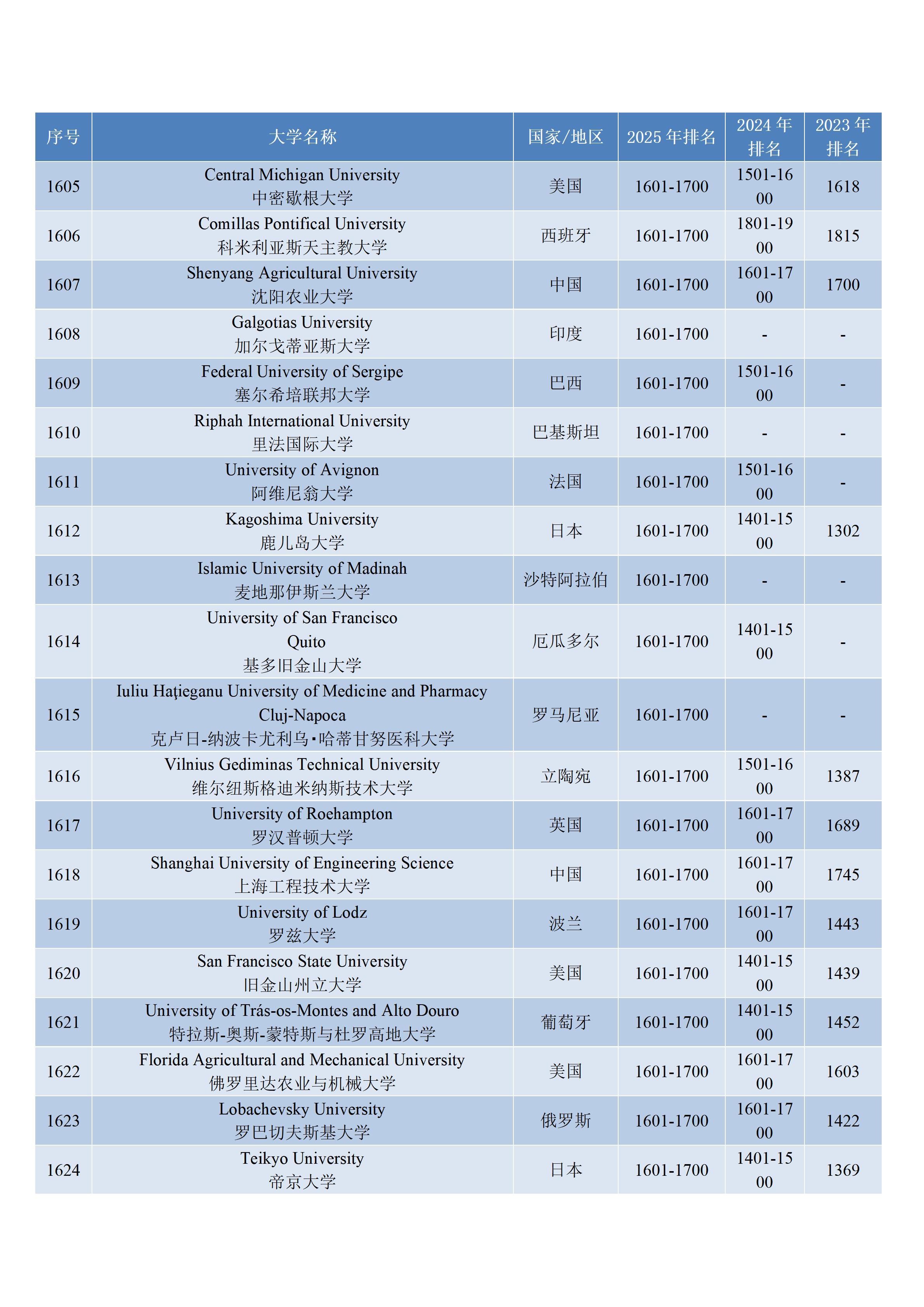 附:2167所大学的2023-2025年世界大学第三方指数排名
