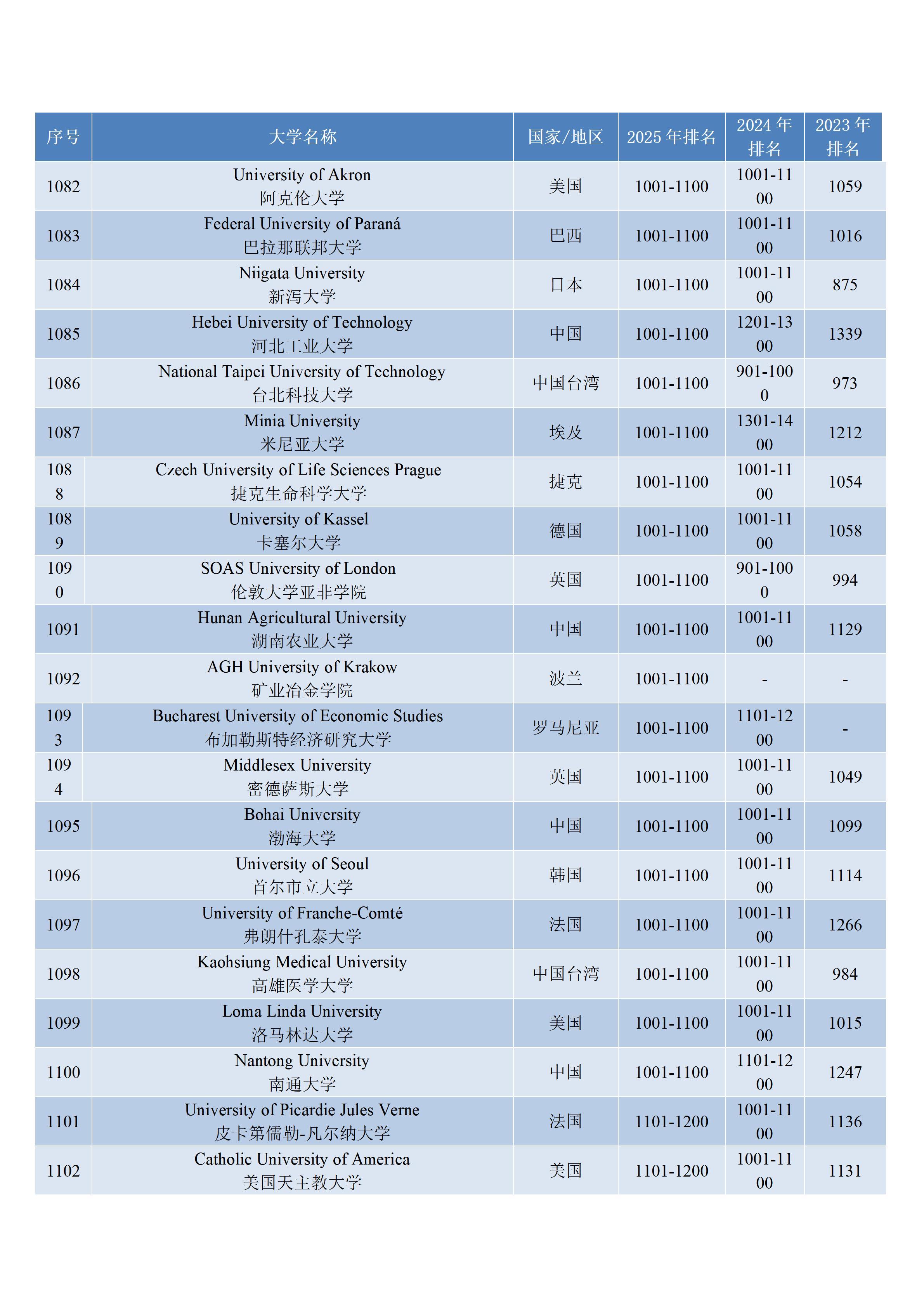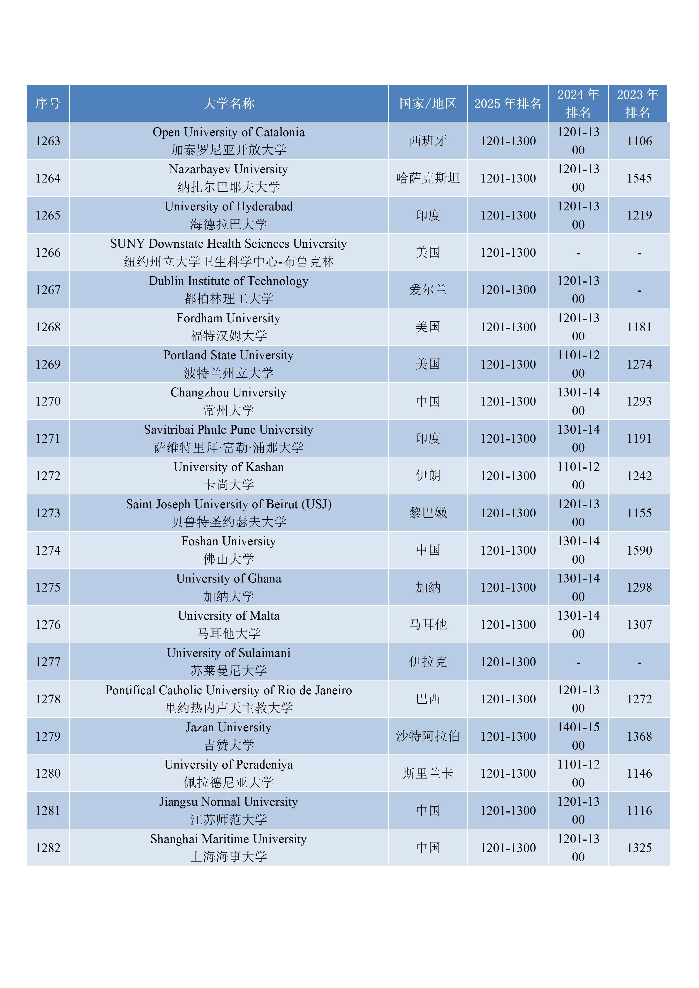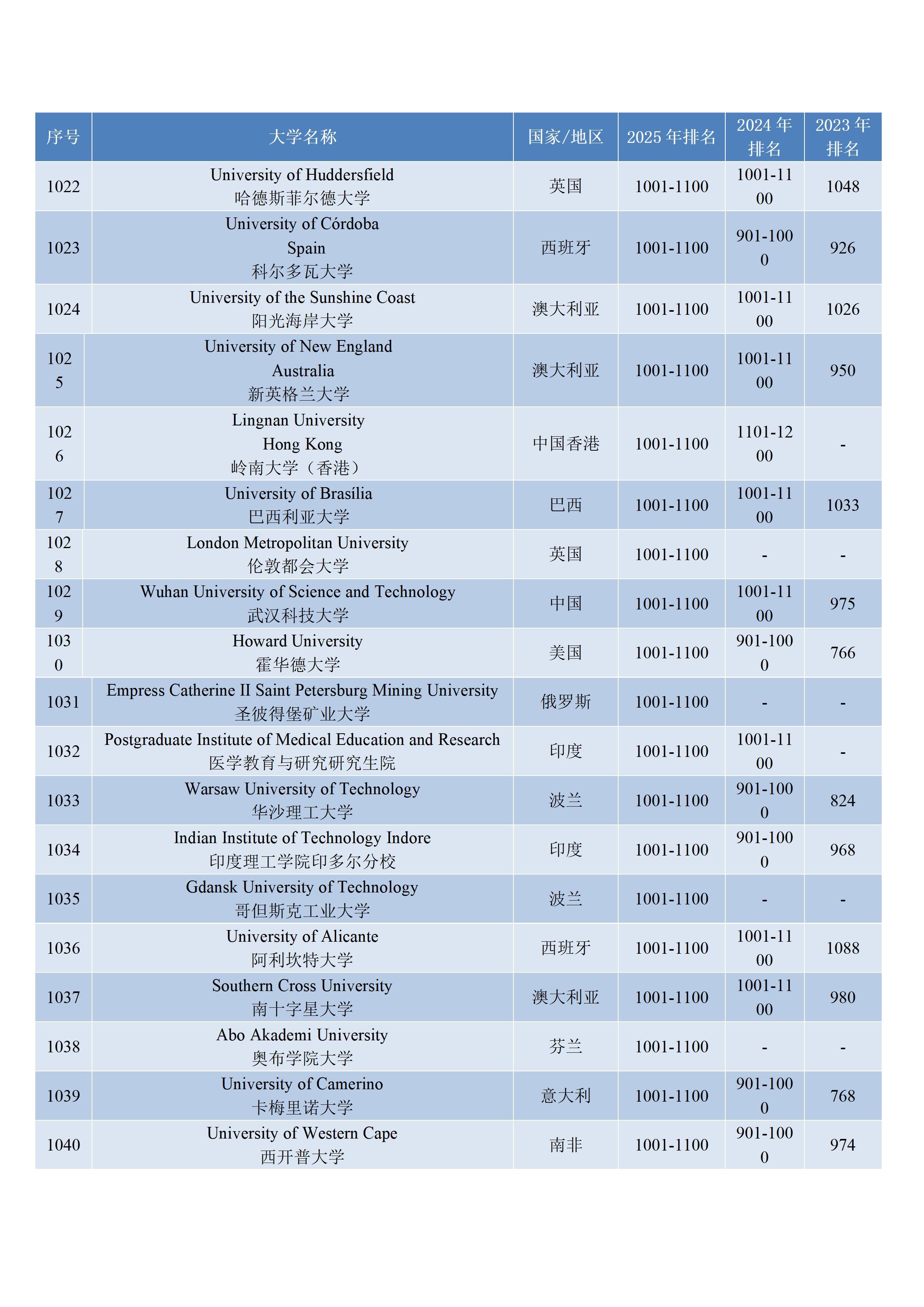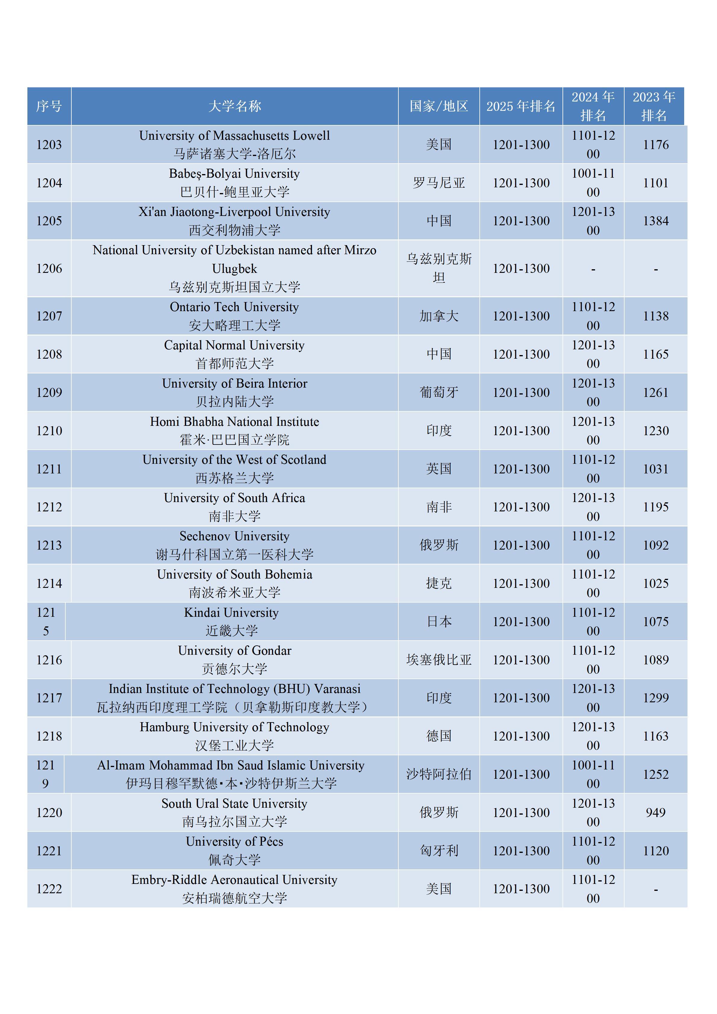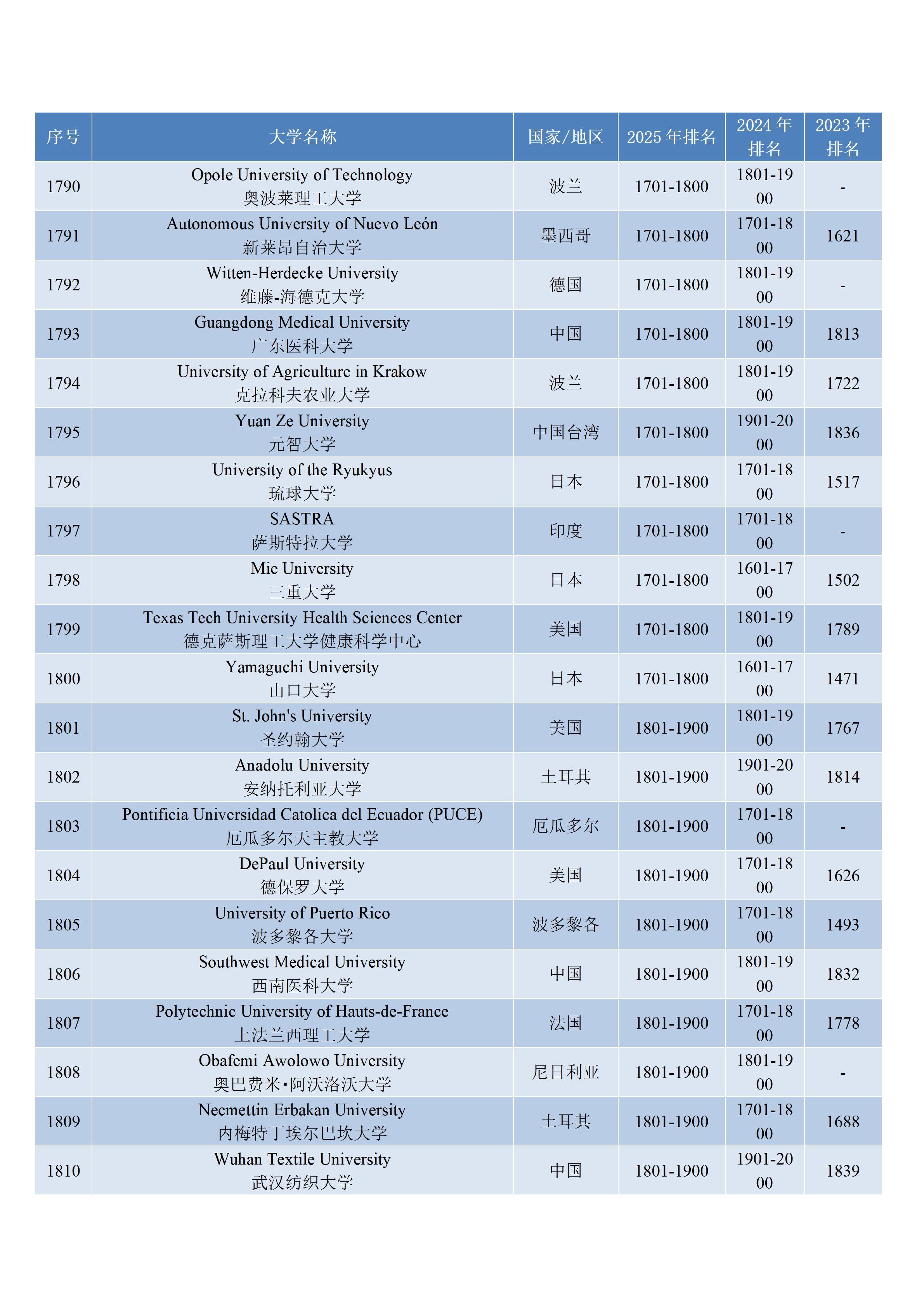 附:2167所大学的2023-2025年世界大学第三方指数排名
