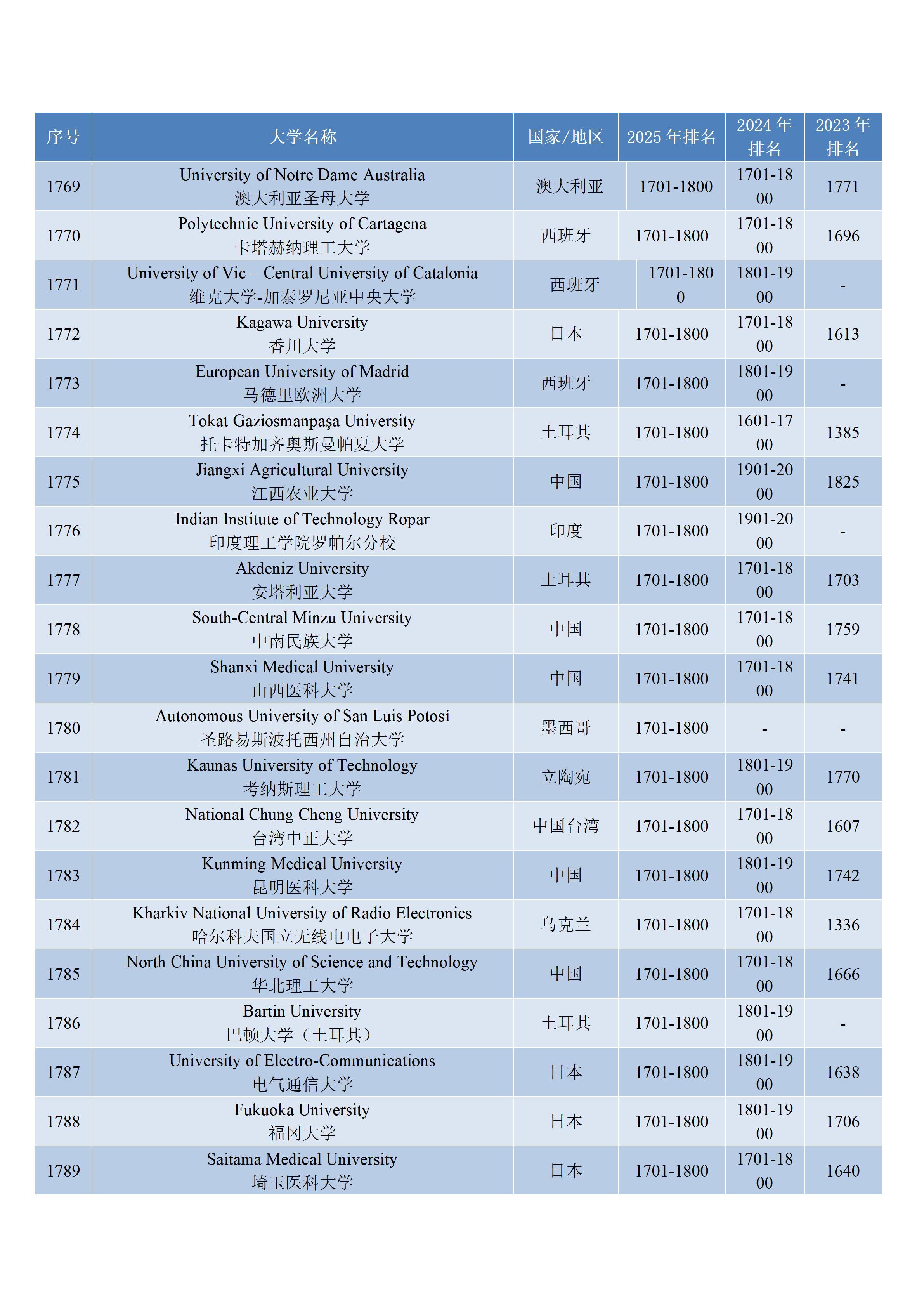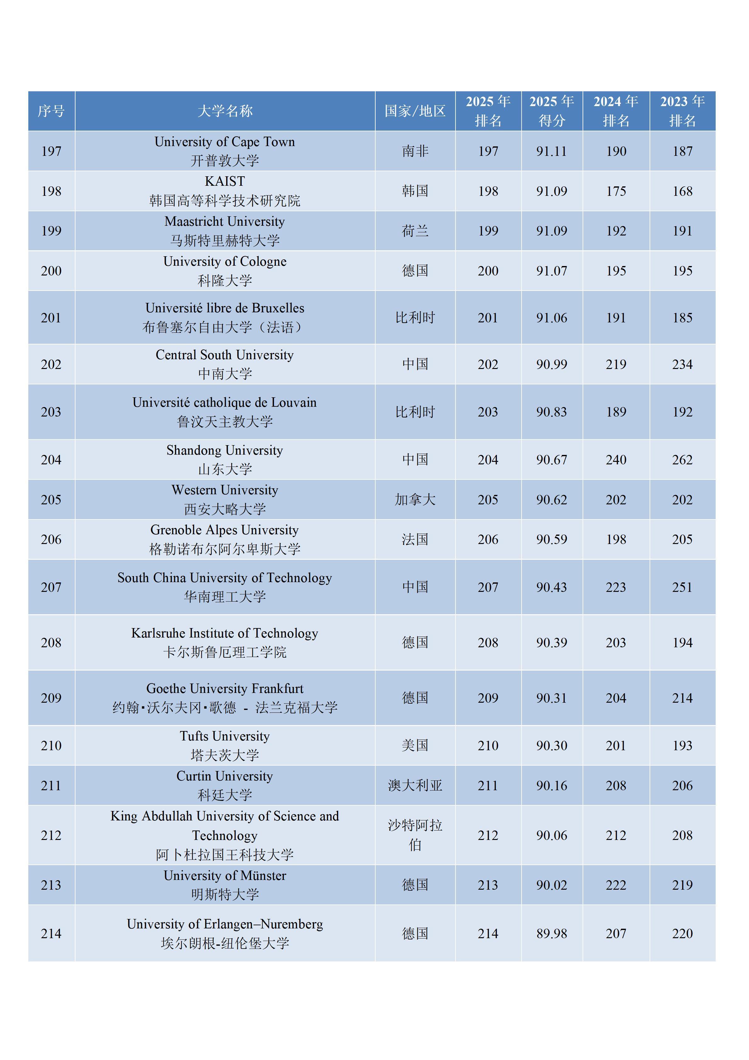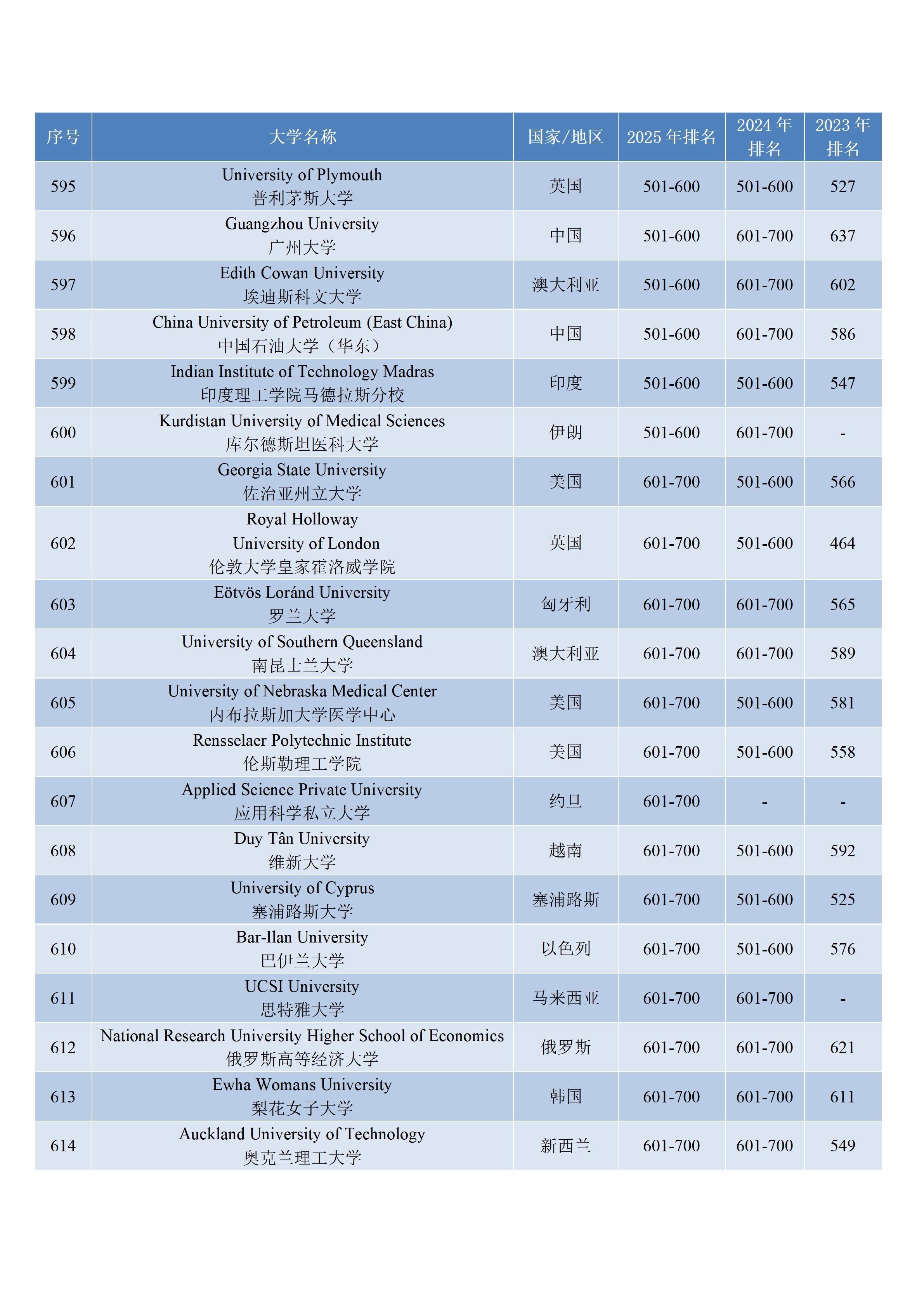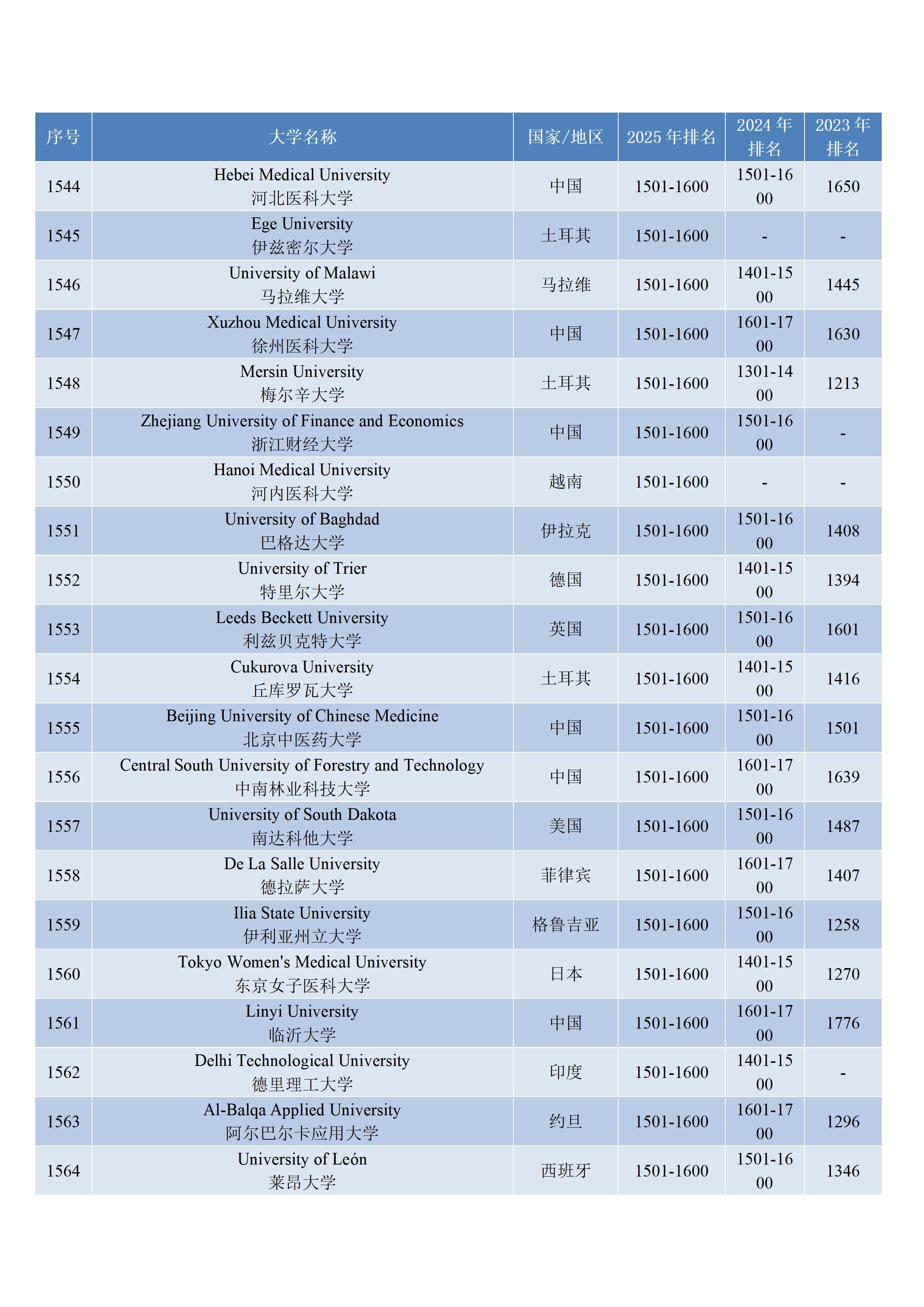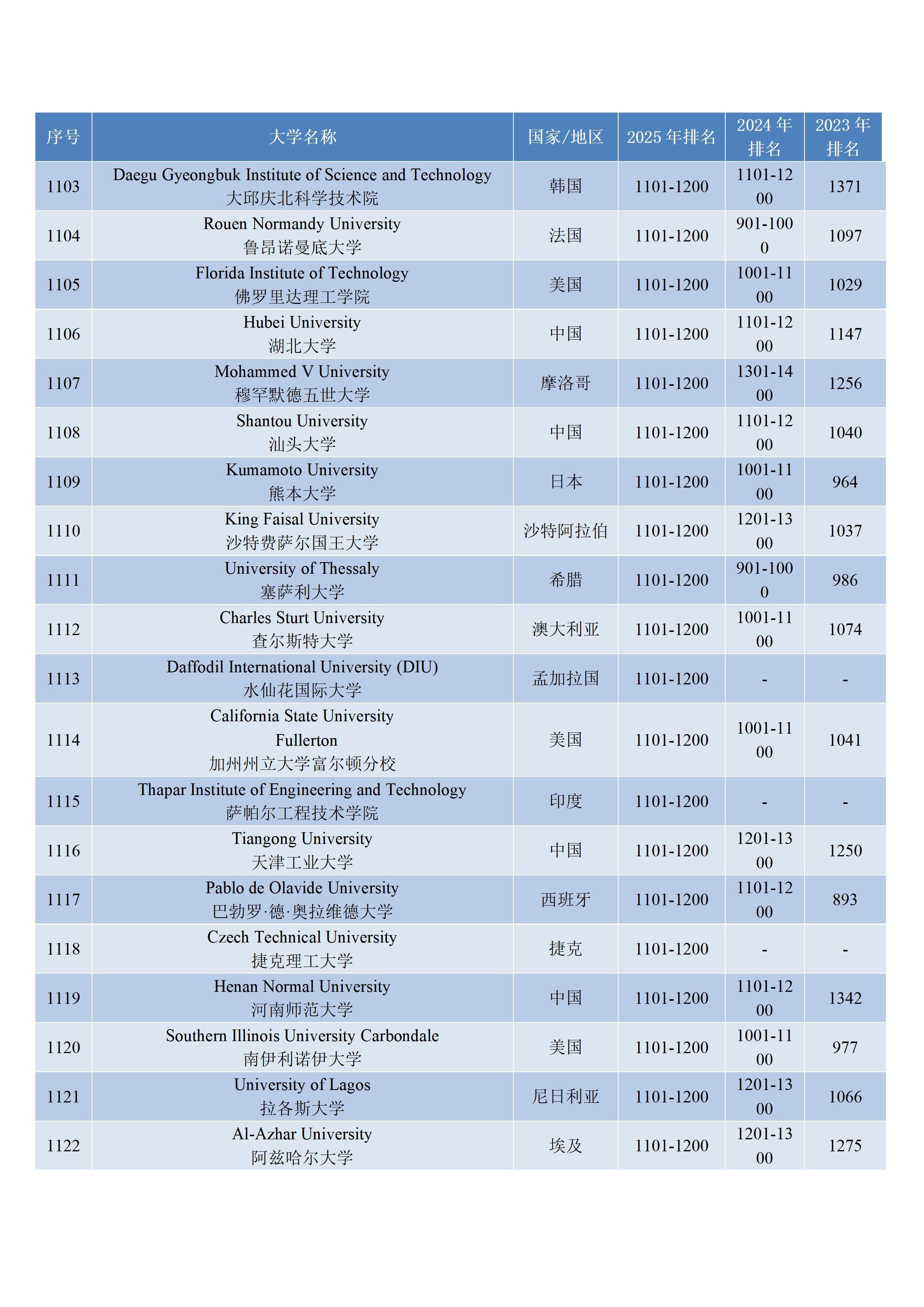 附:2167所大学的2023-2025年世界大学第三方指数排名