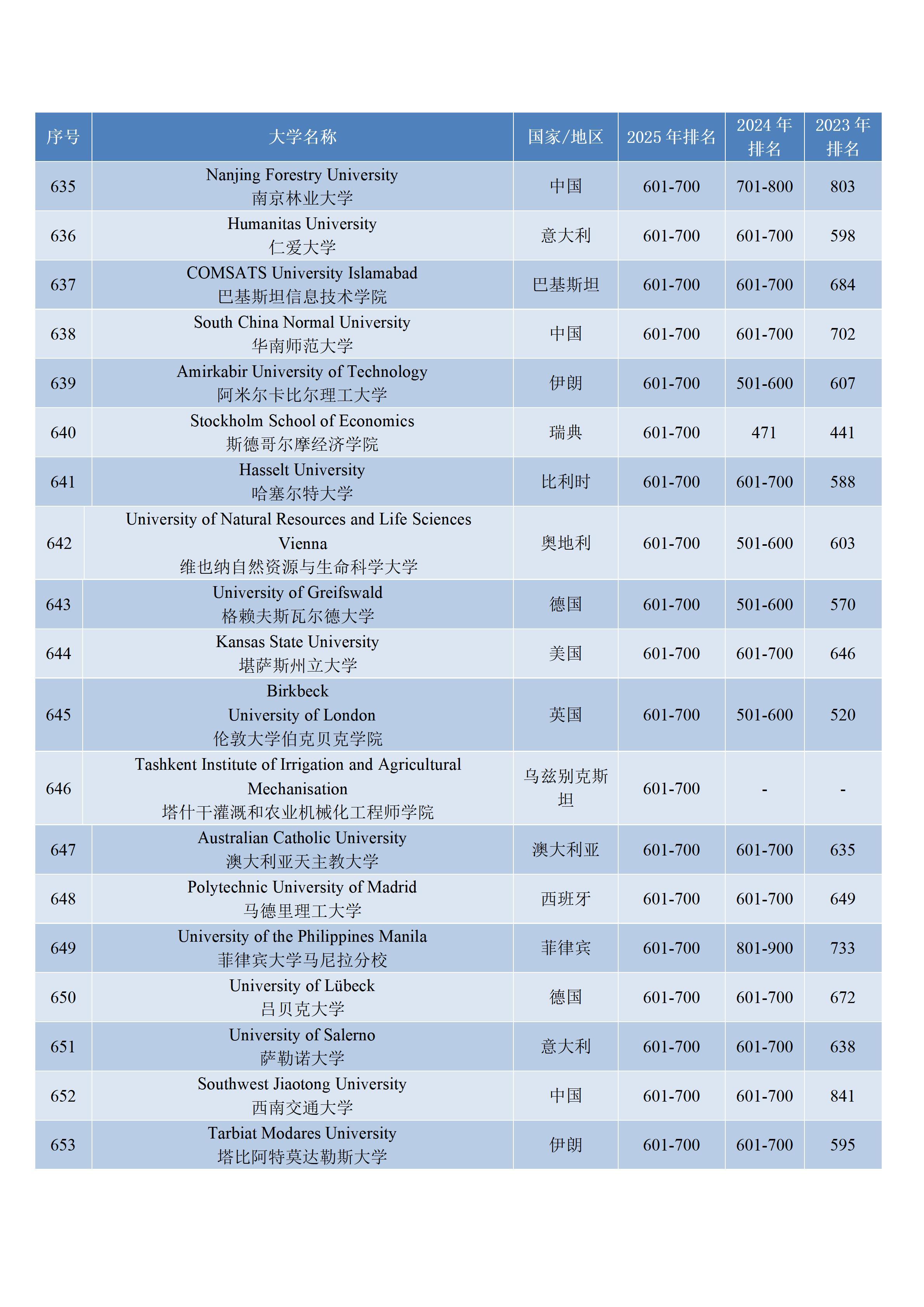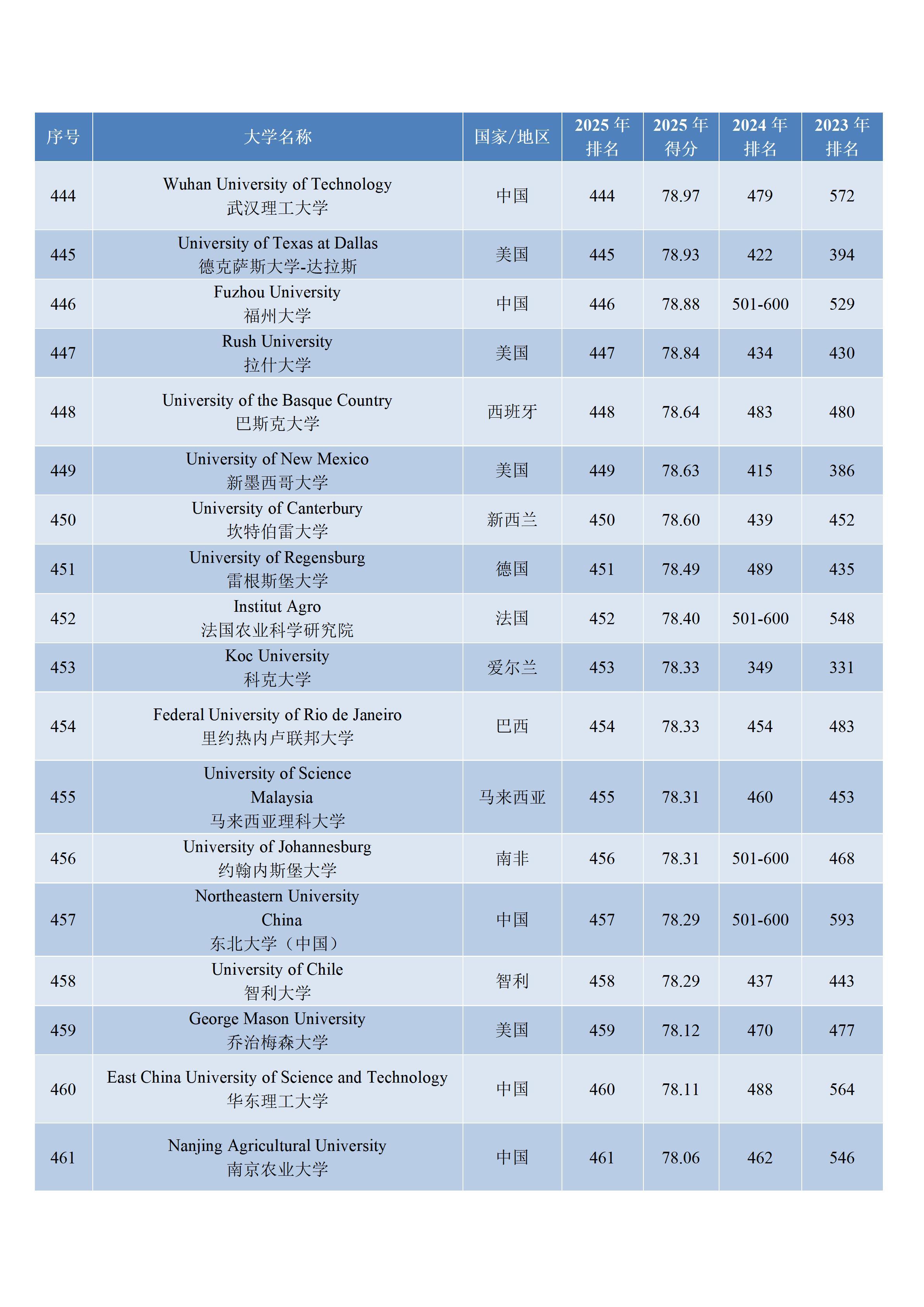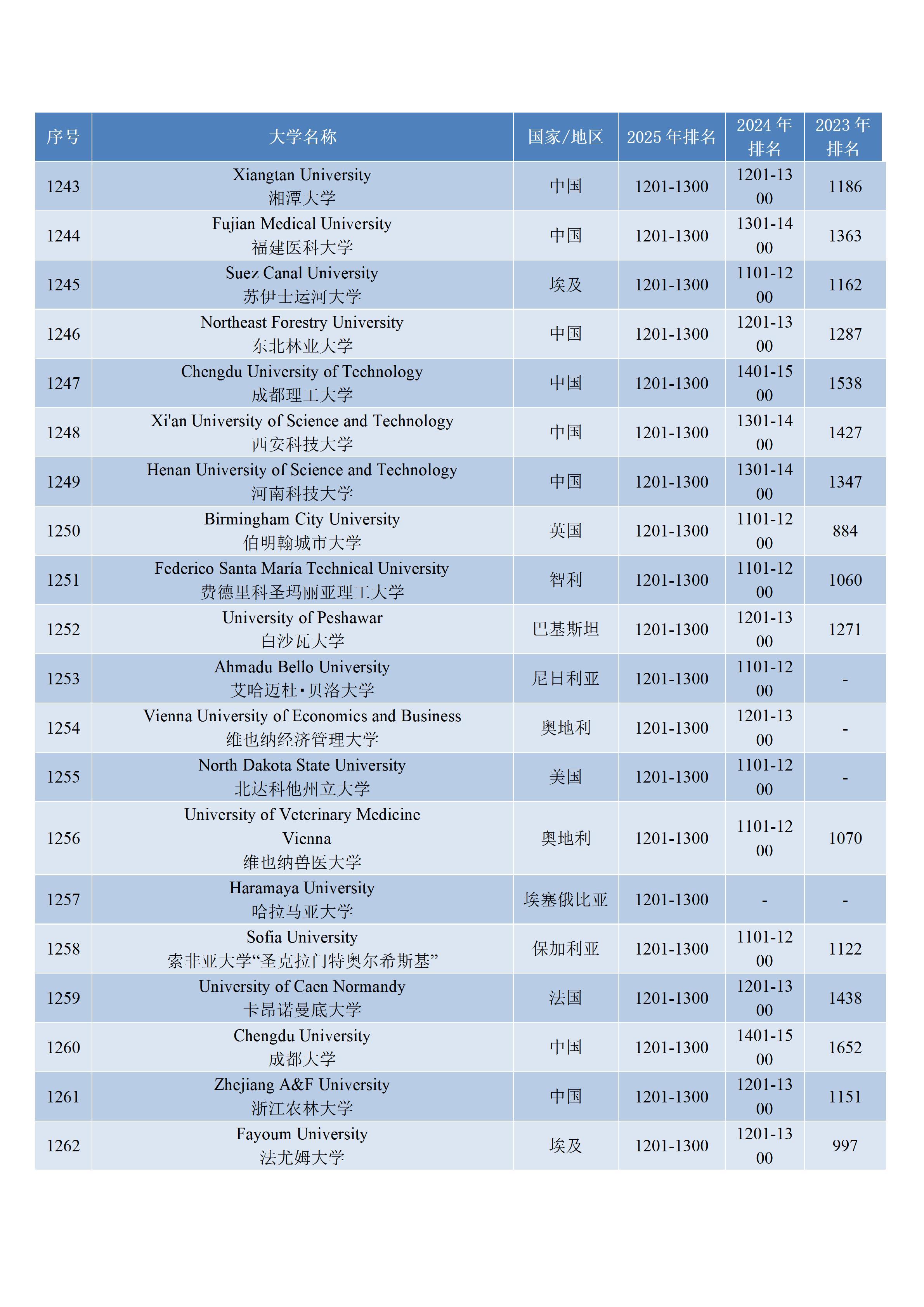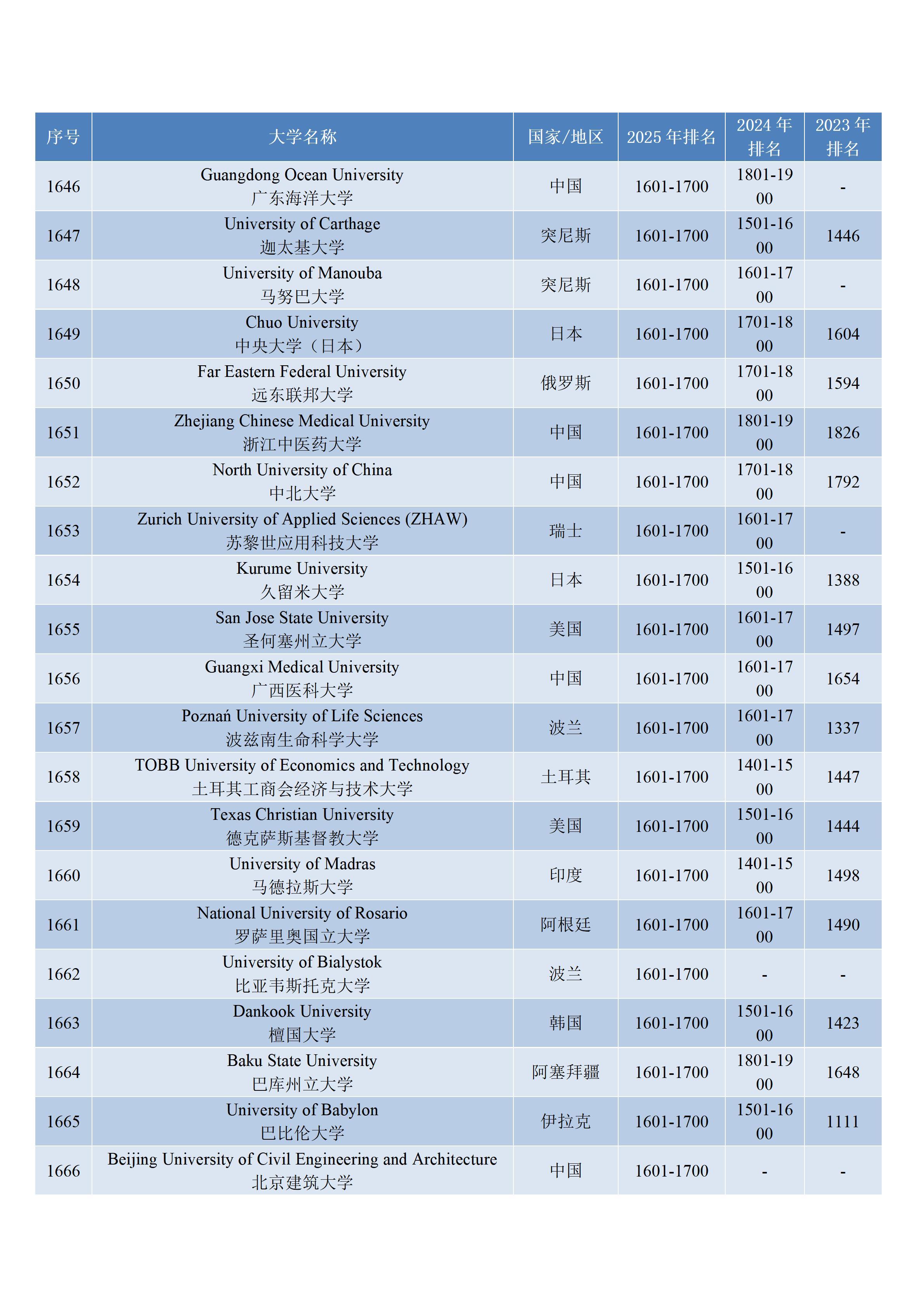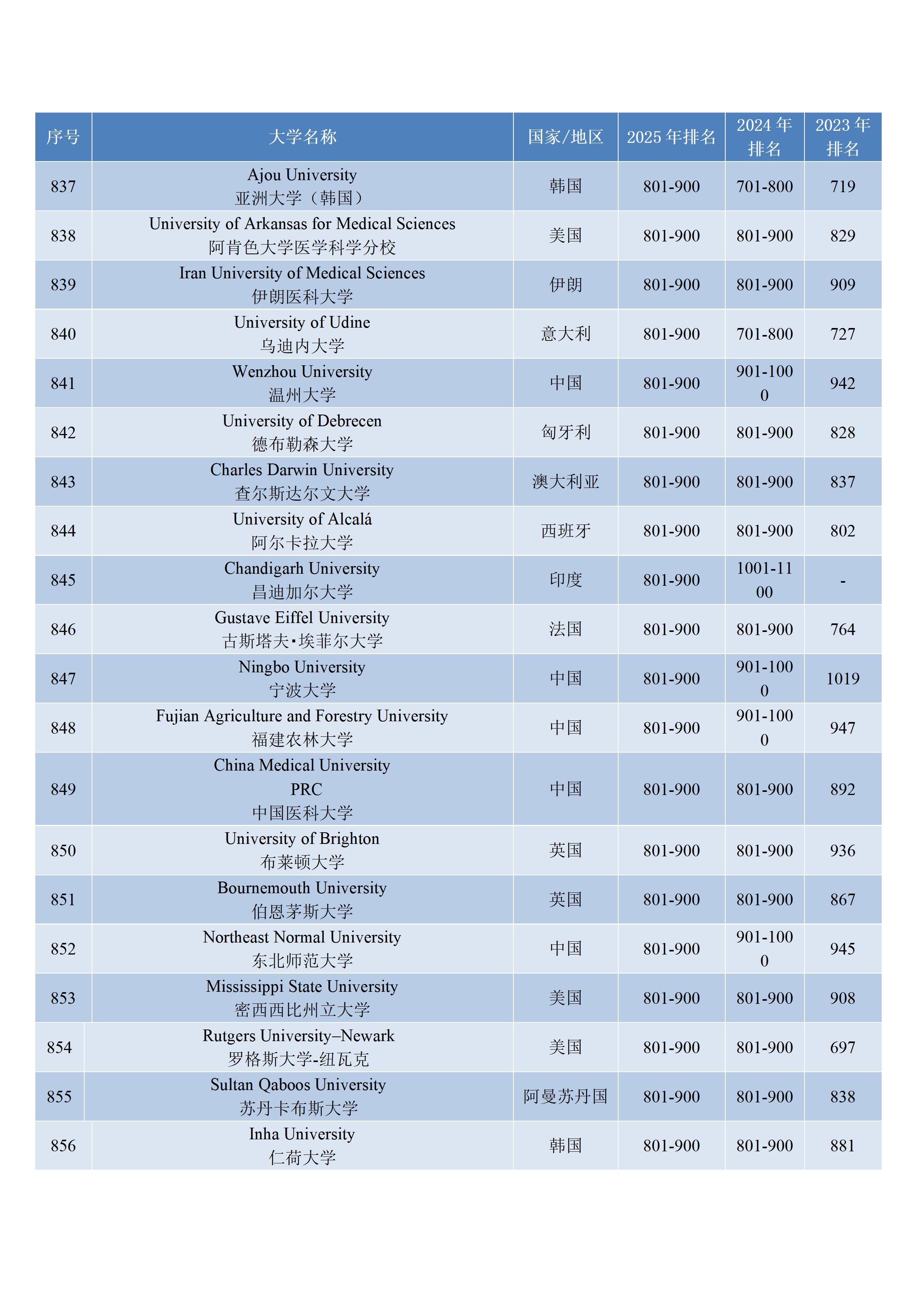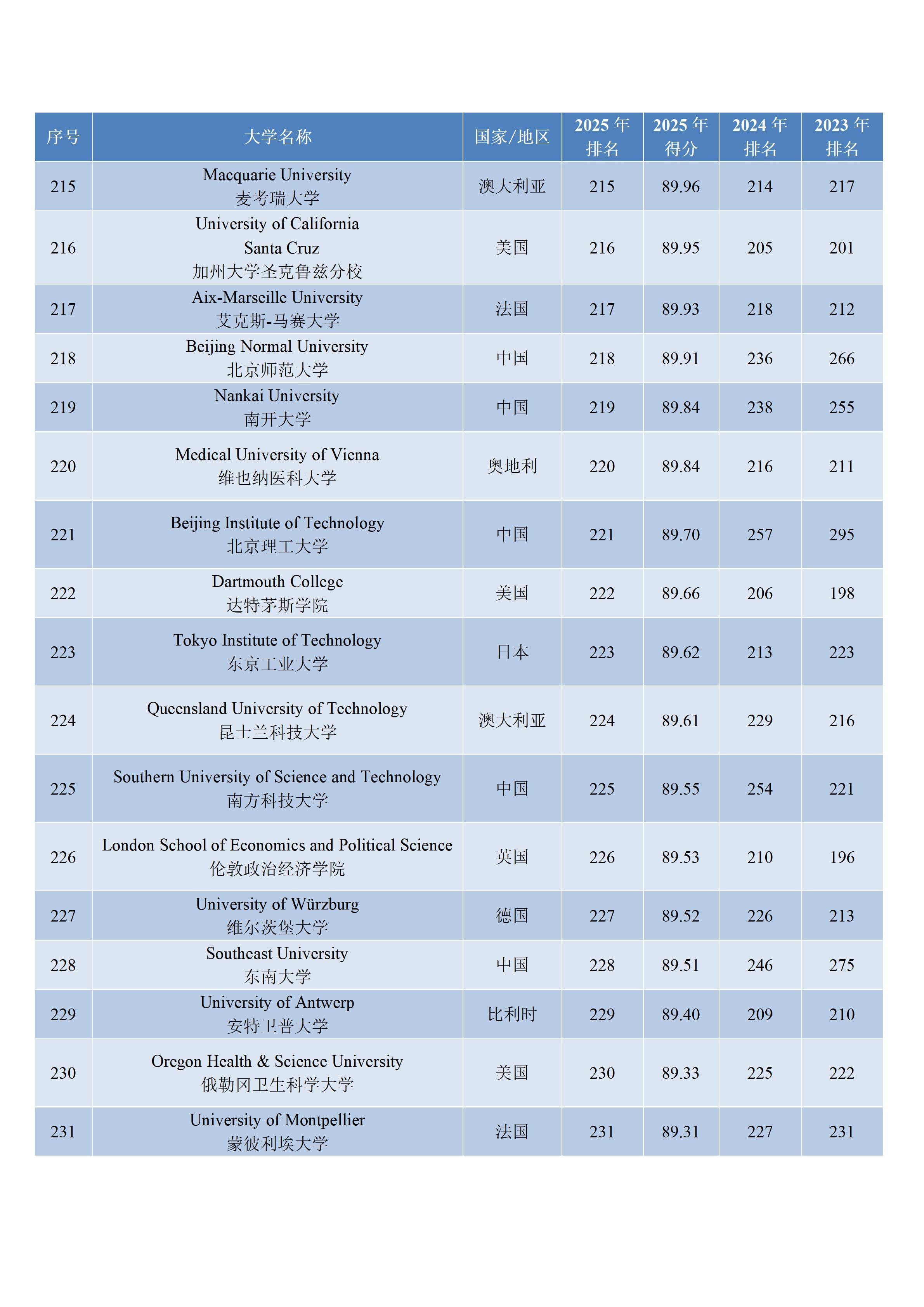 附:2167所大学的2023-2025年世界大学第三方指数排名