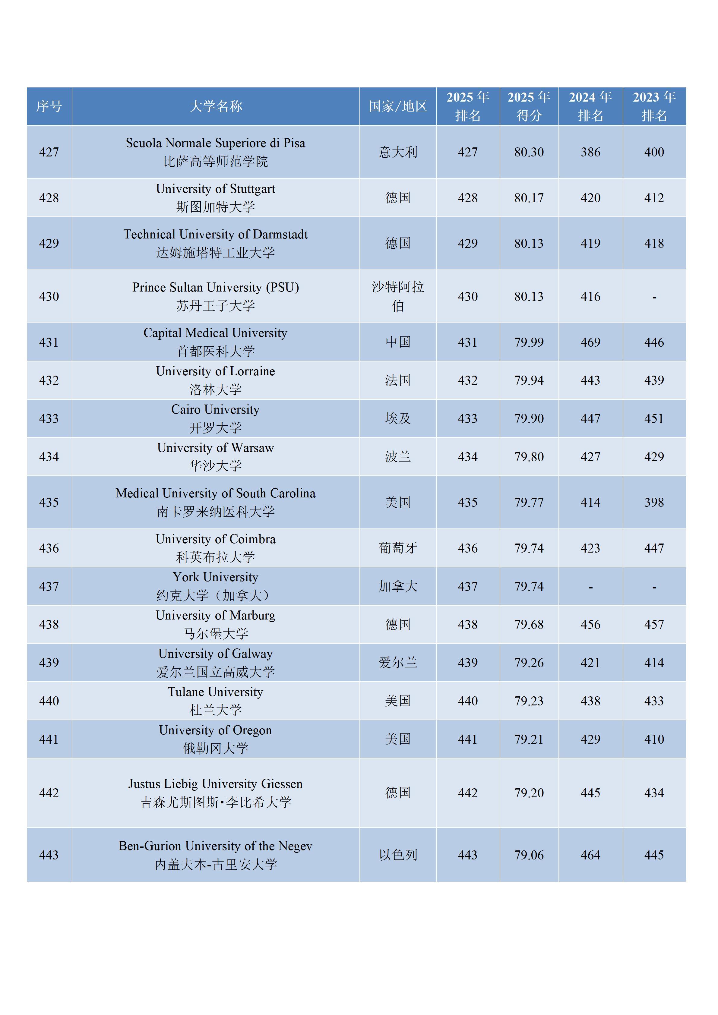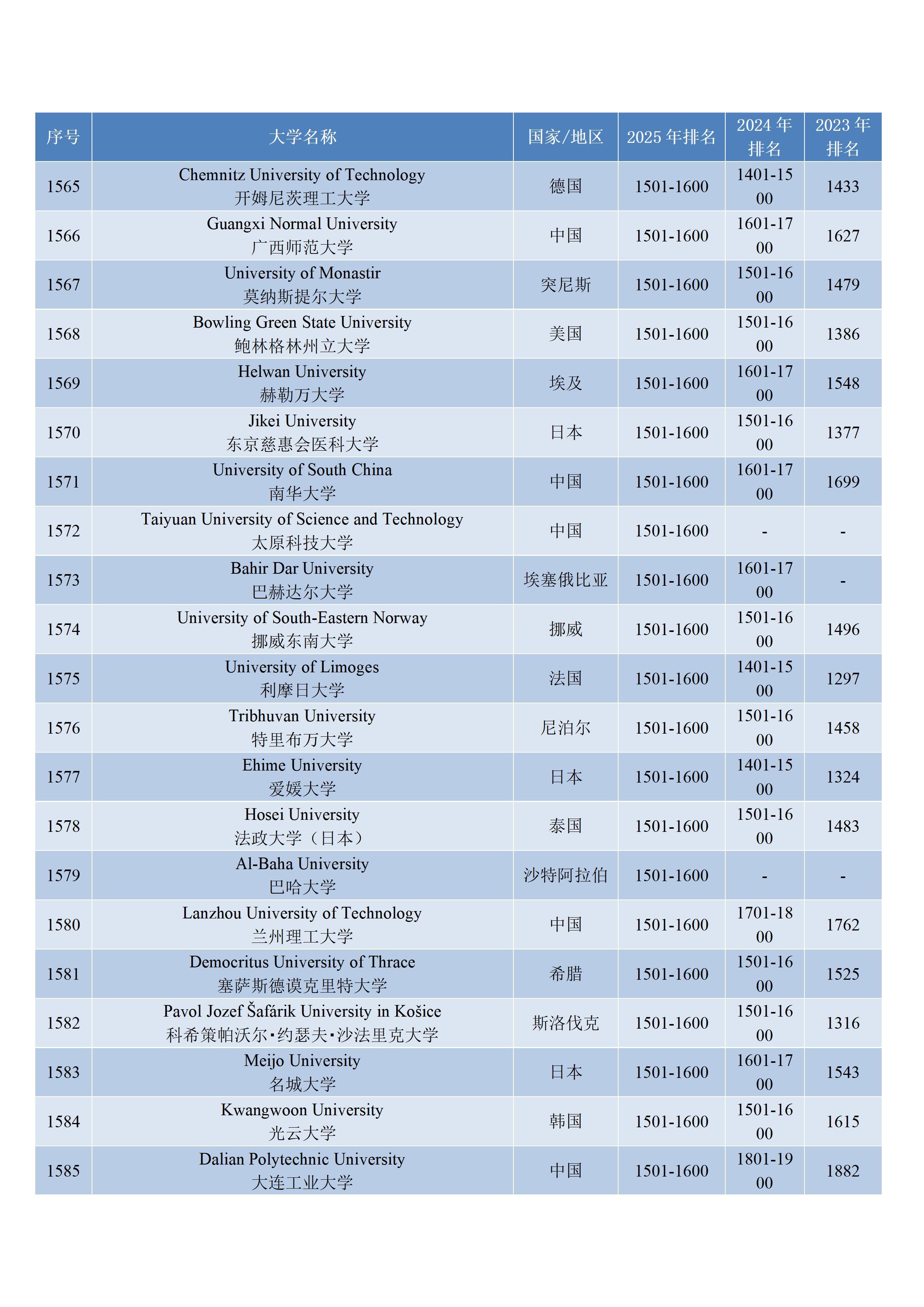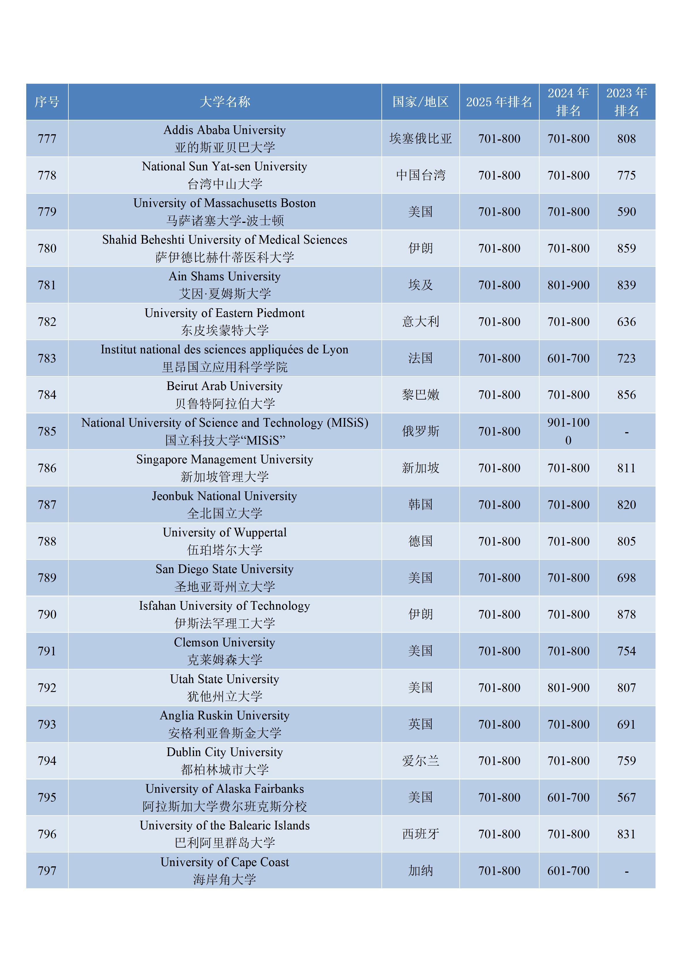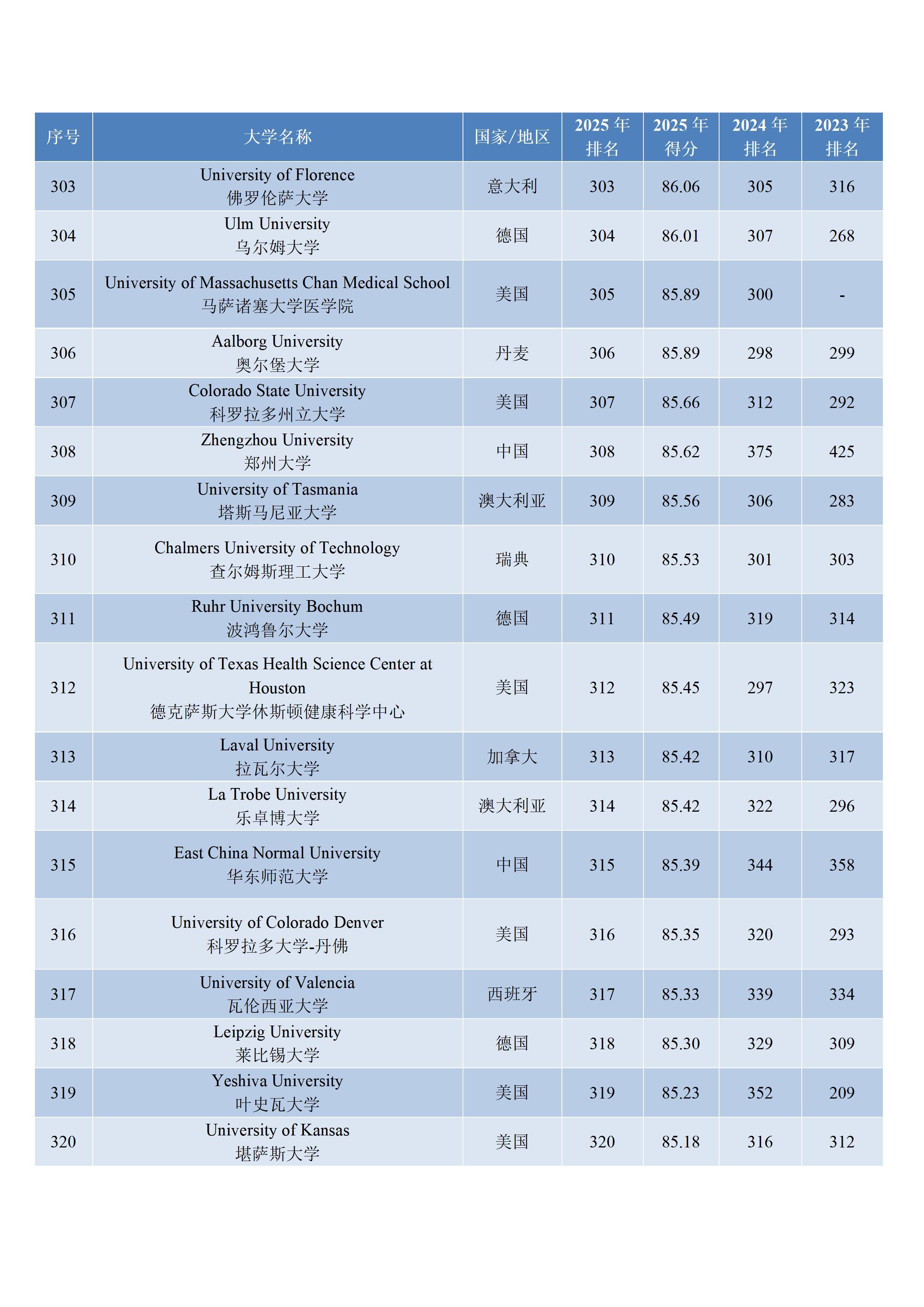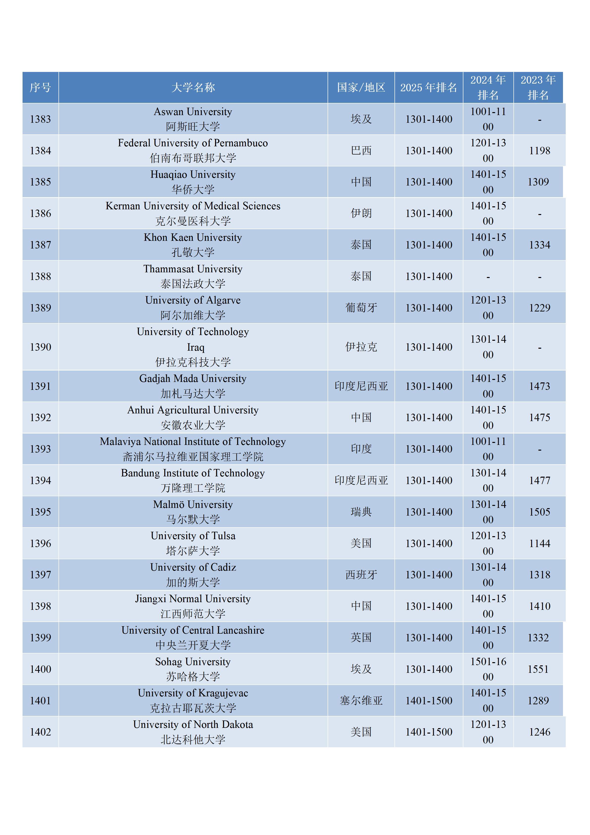 附:2167所大学的2023-2025年世界大学第三方指数排名