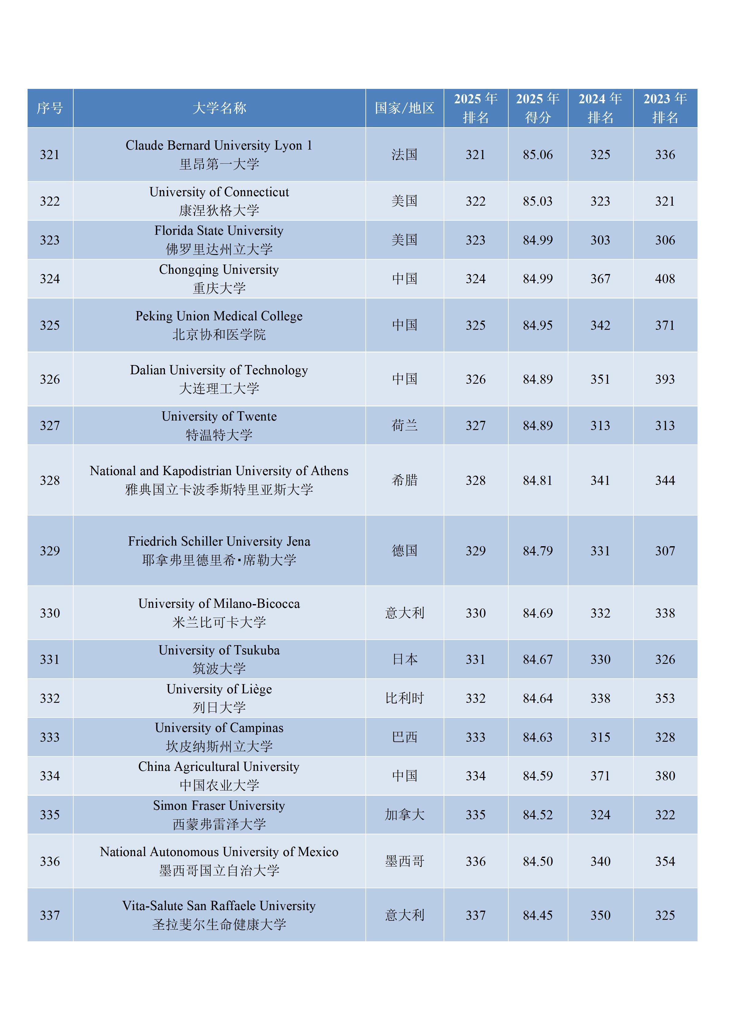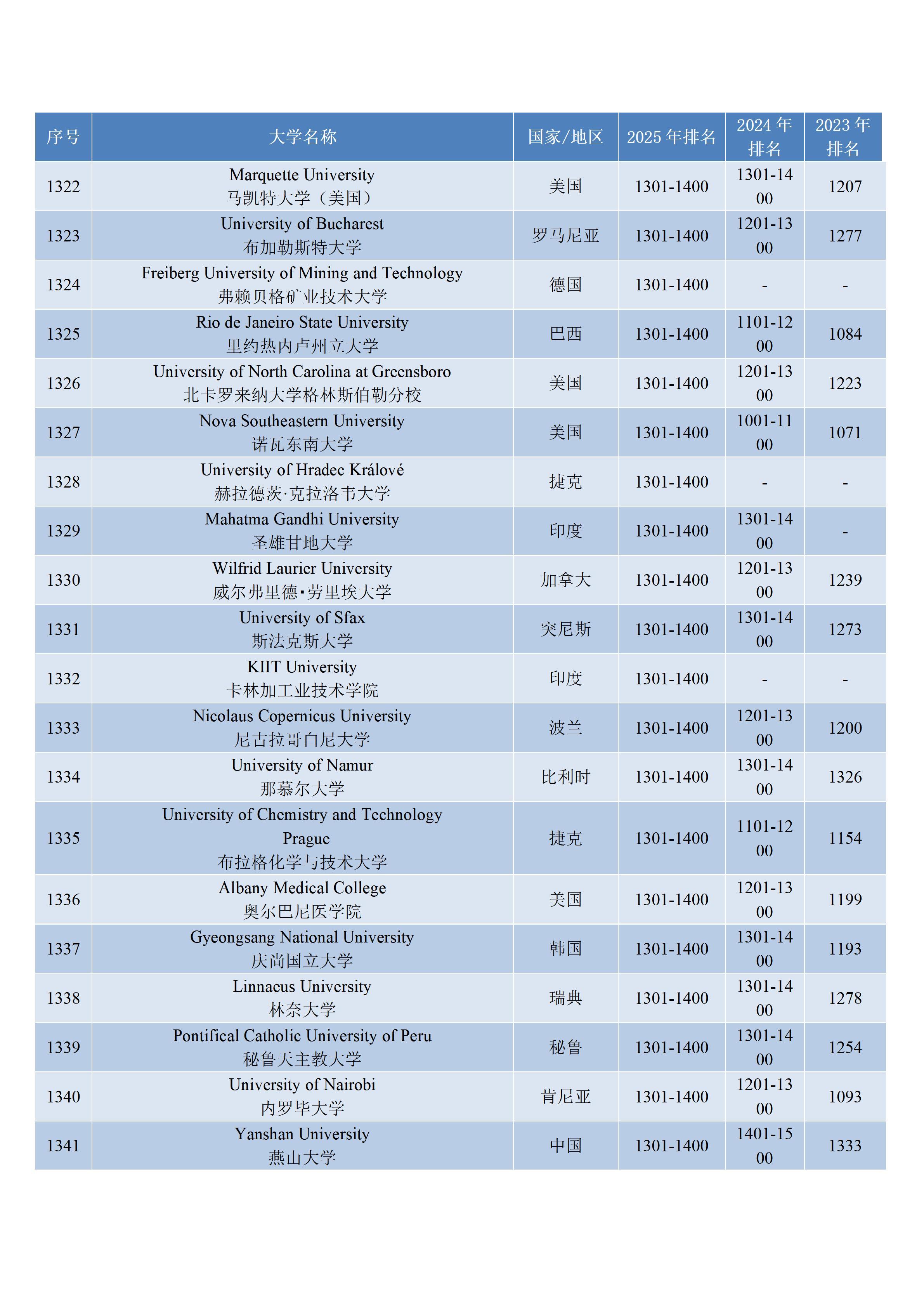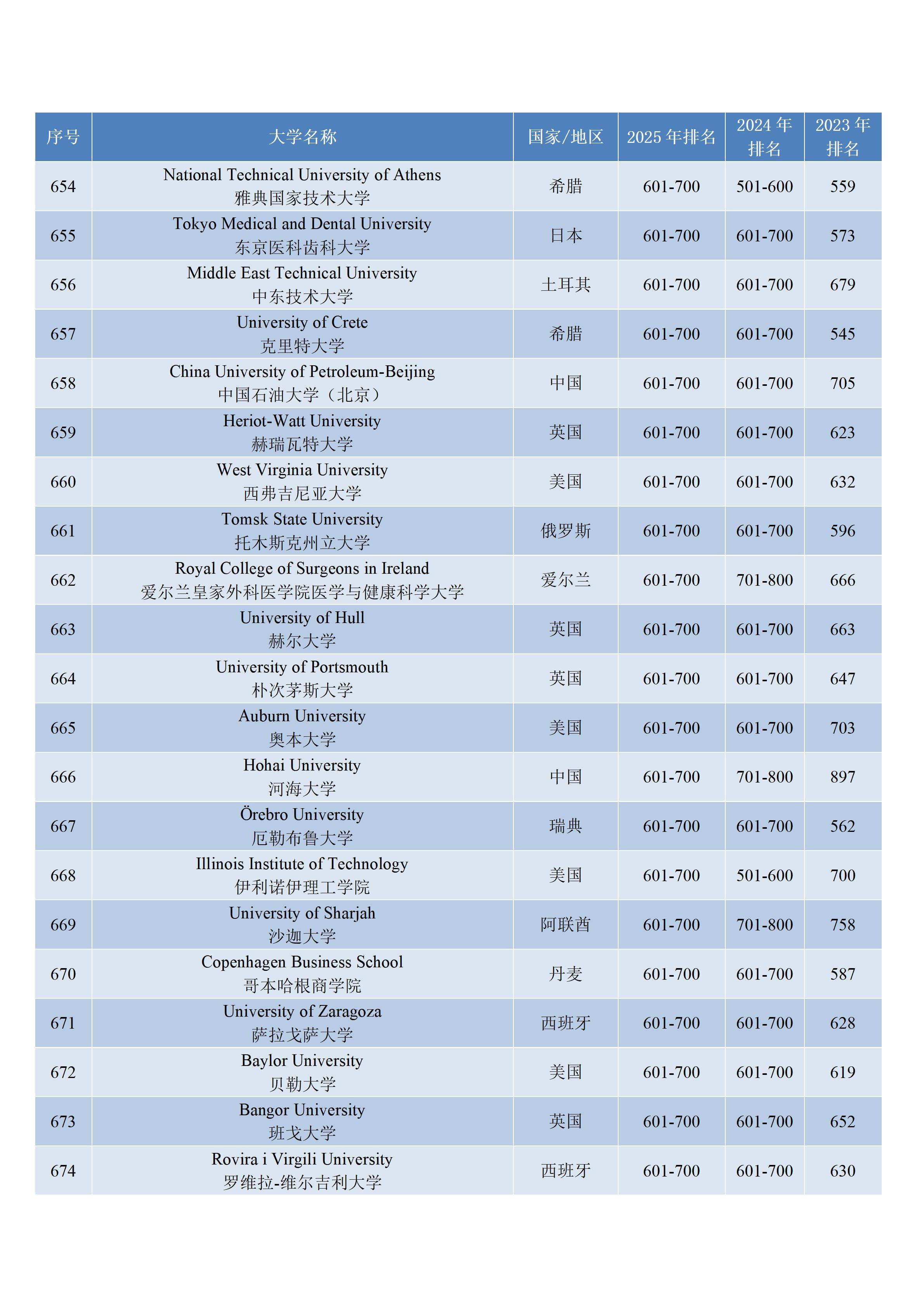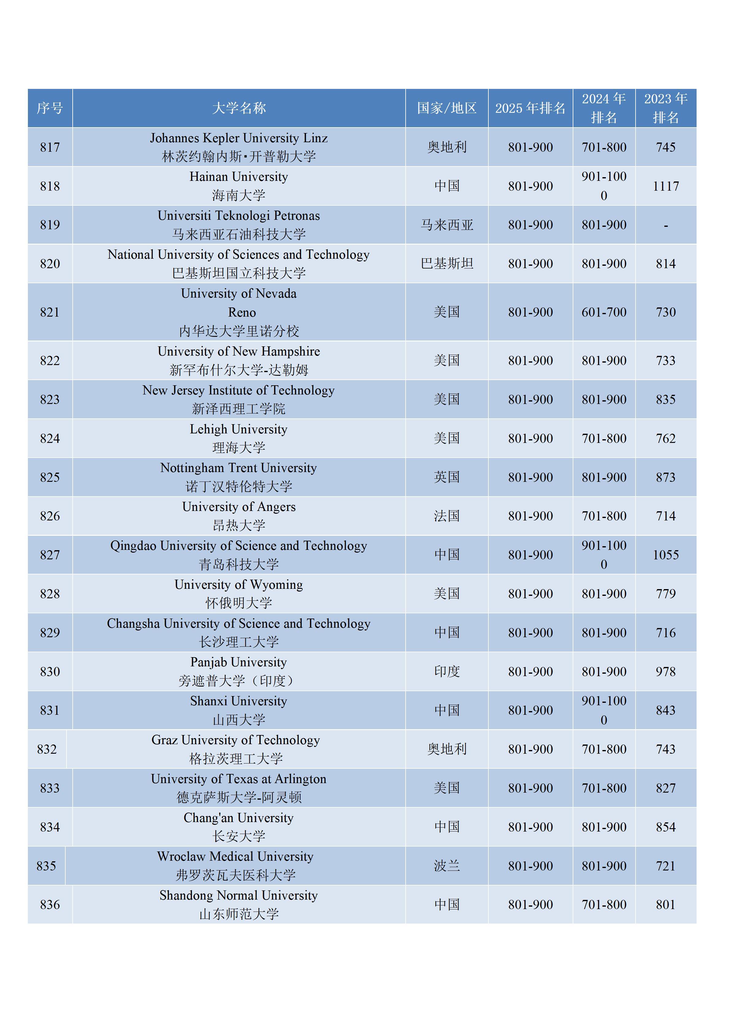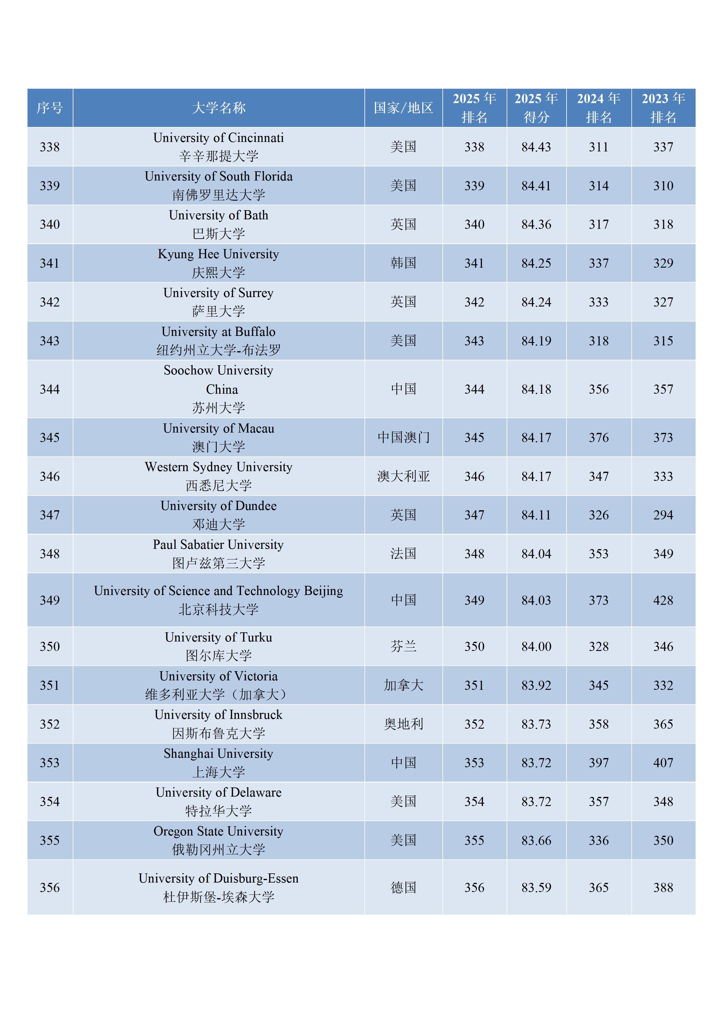 附:2167所大学的2023-2025年世界大学第三方指数排名