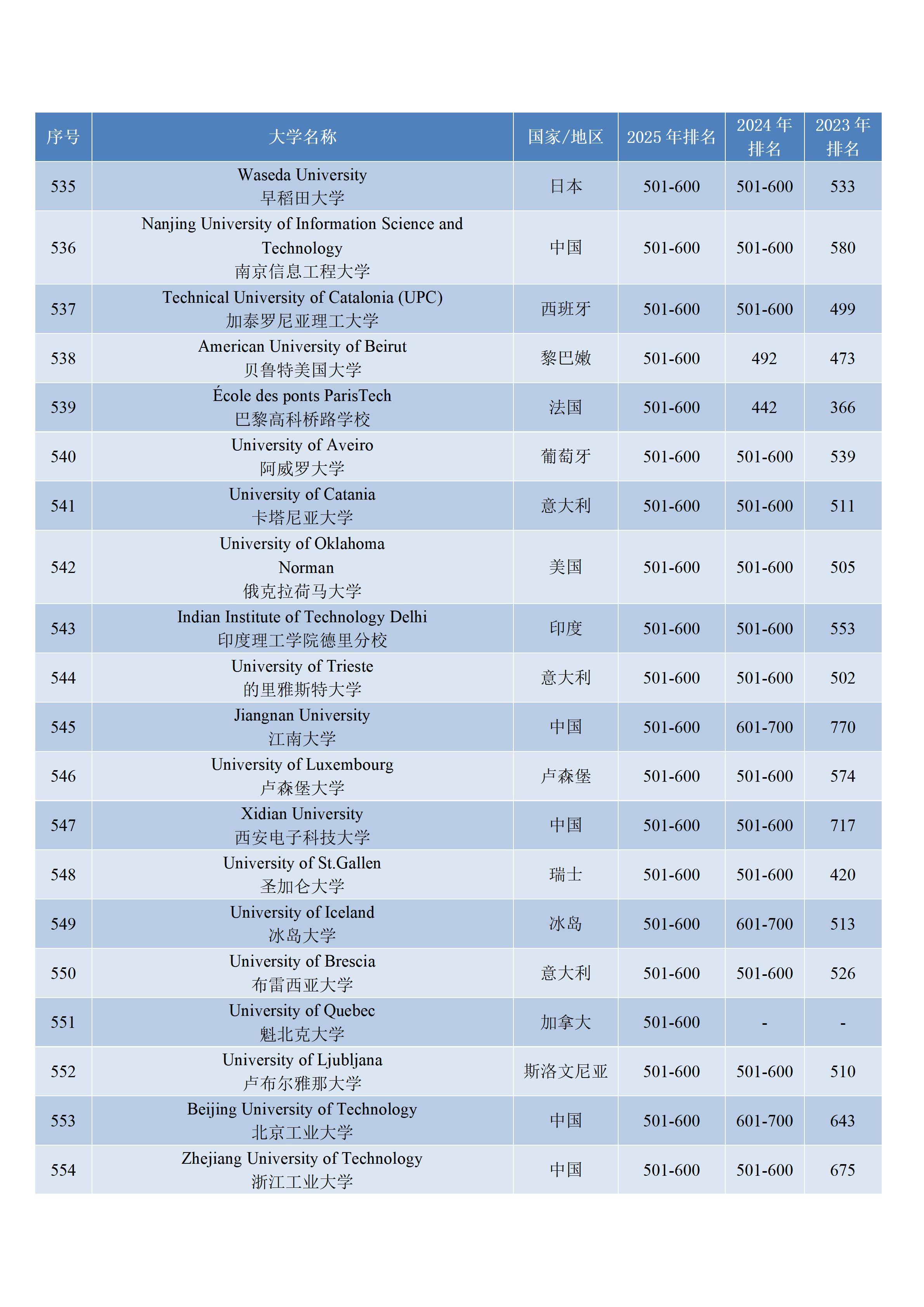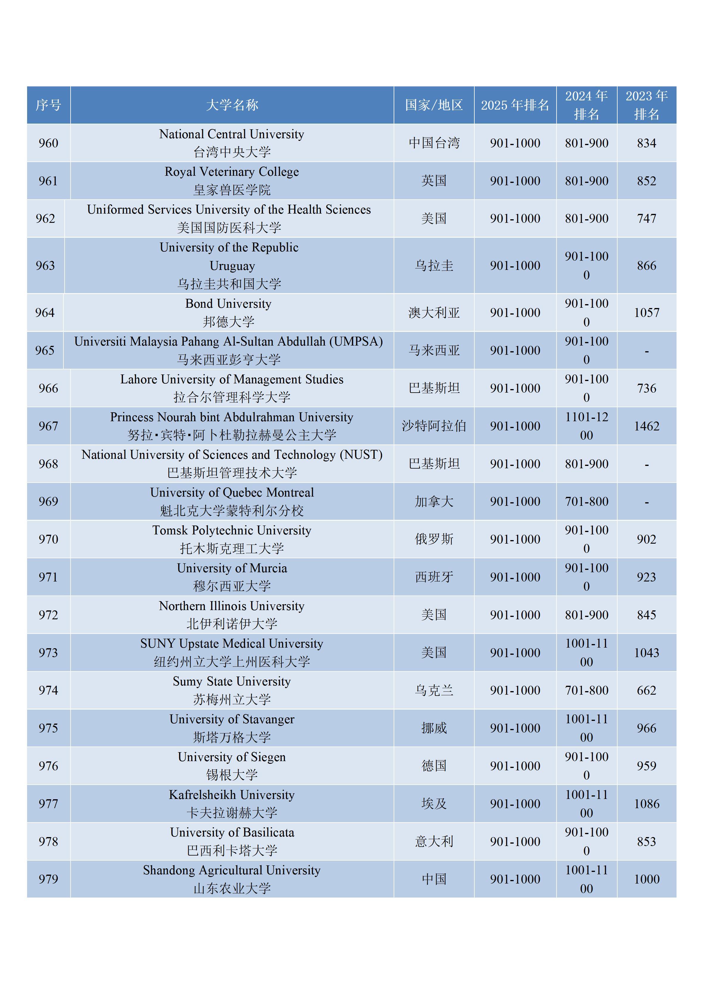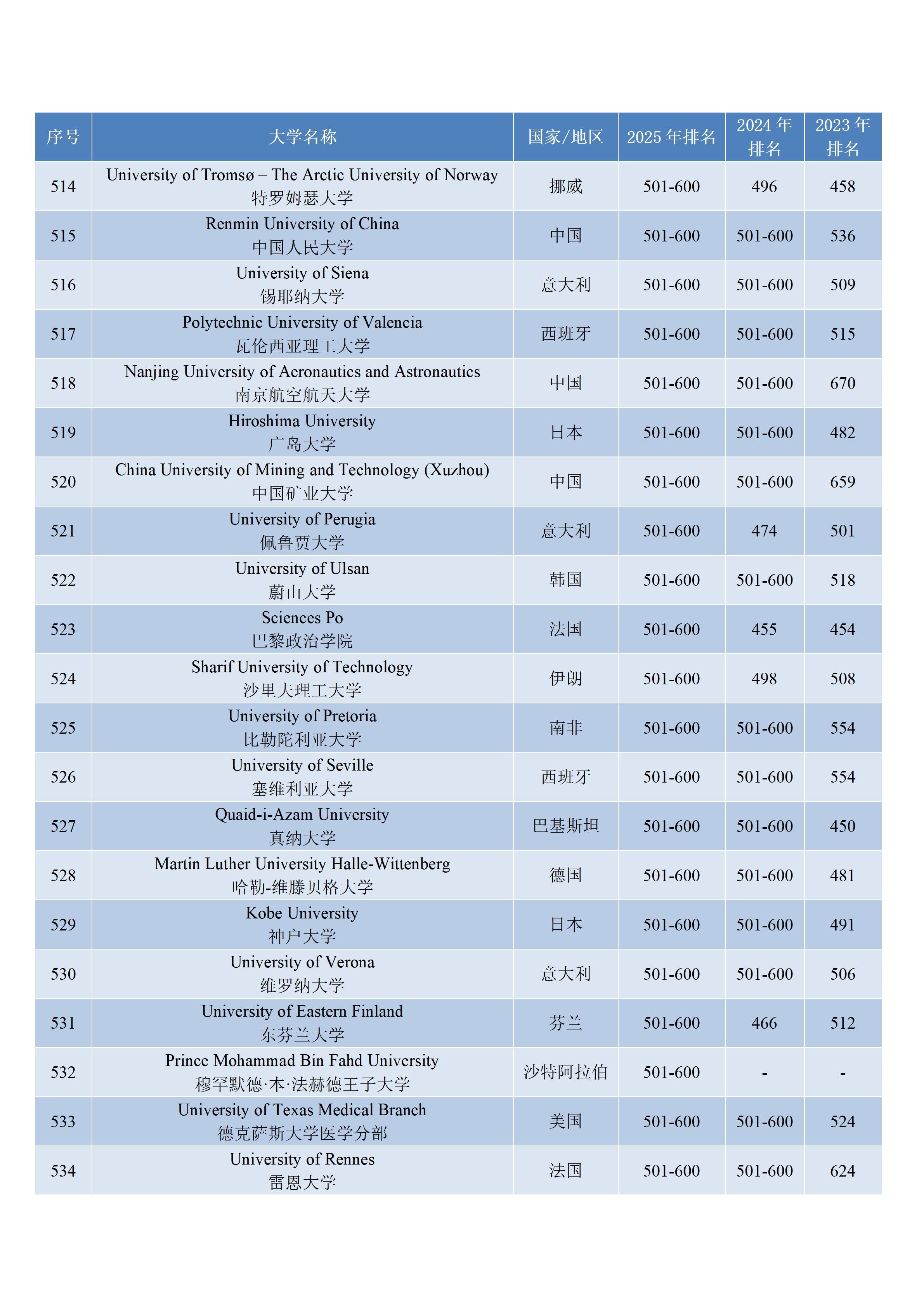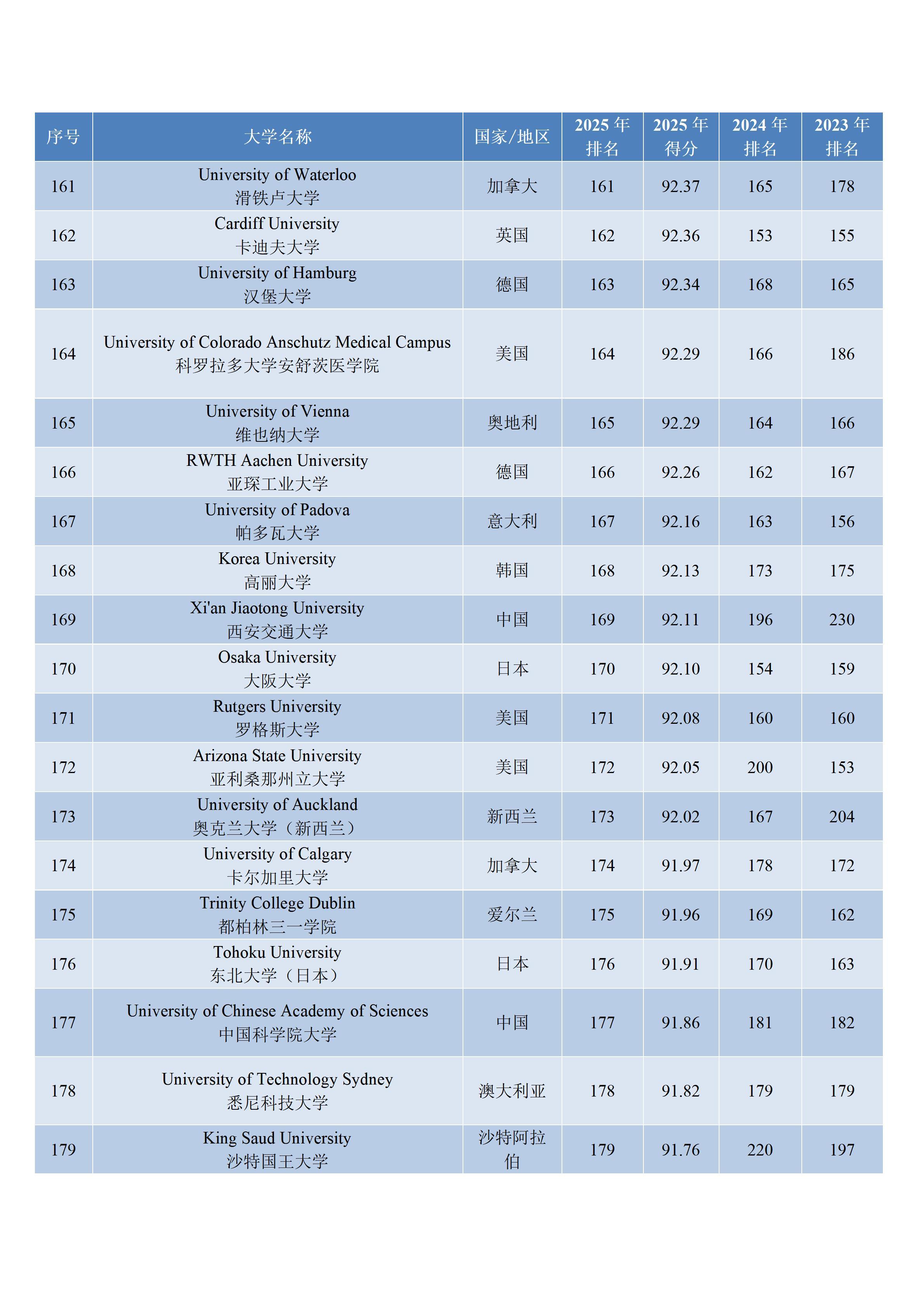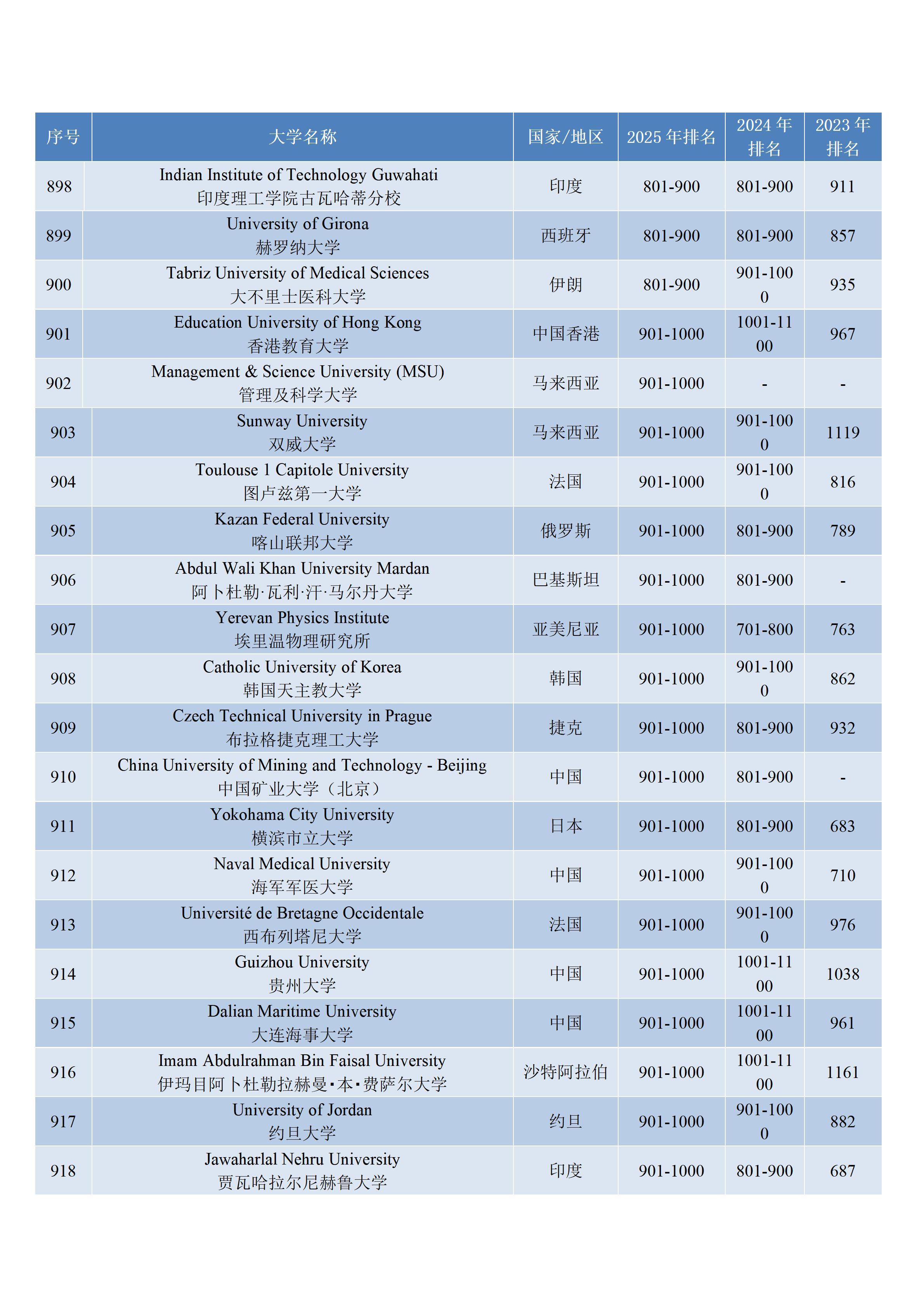 附:2167所大学的2023-2025年世界大学第三方指数排名