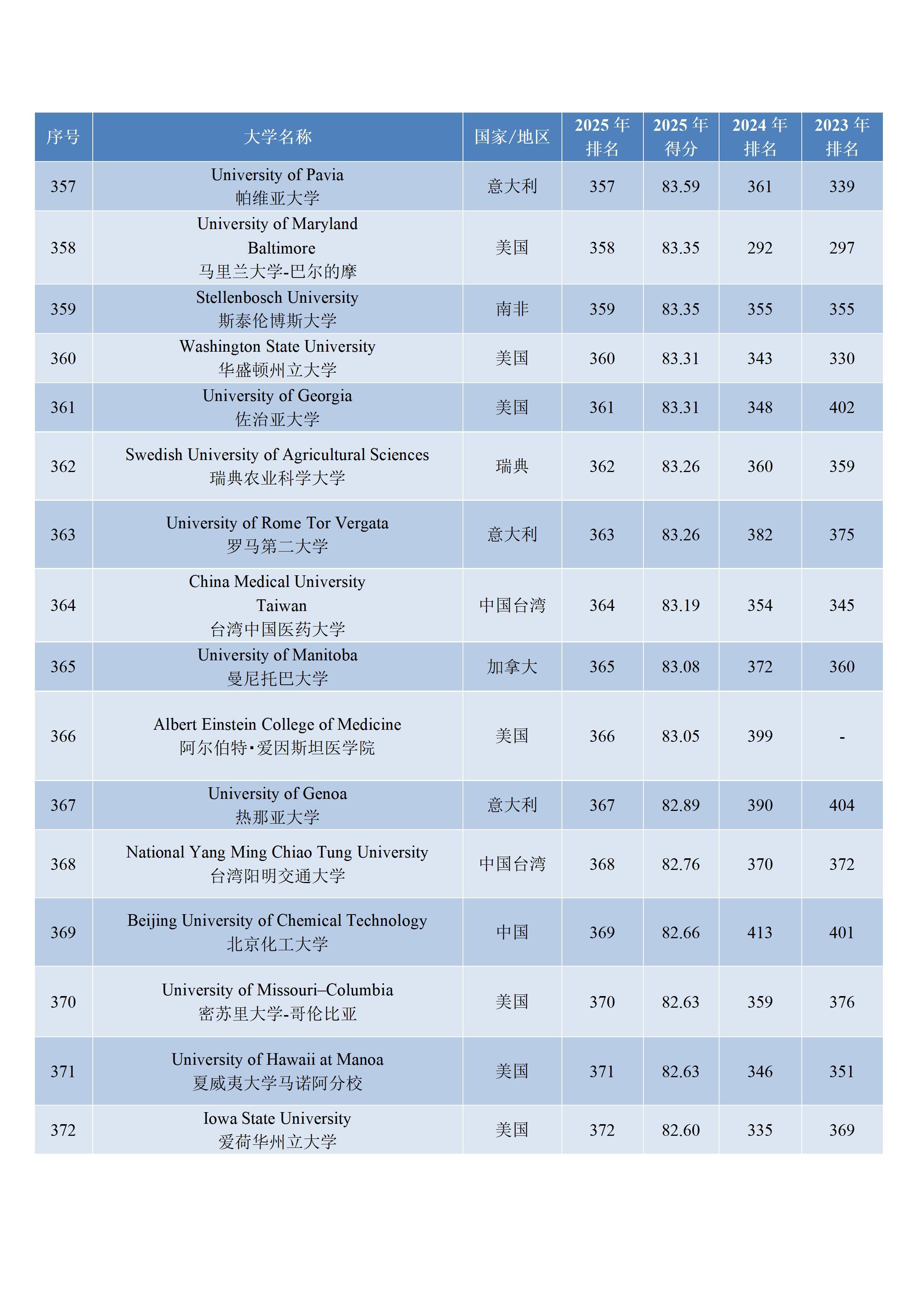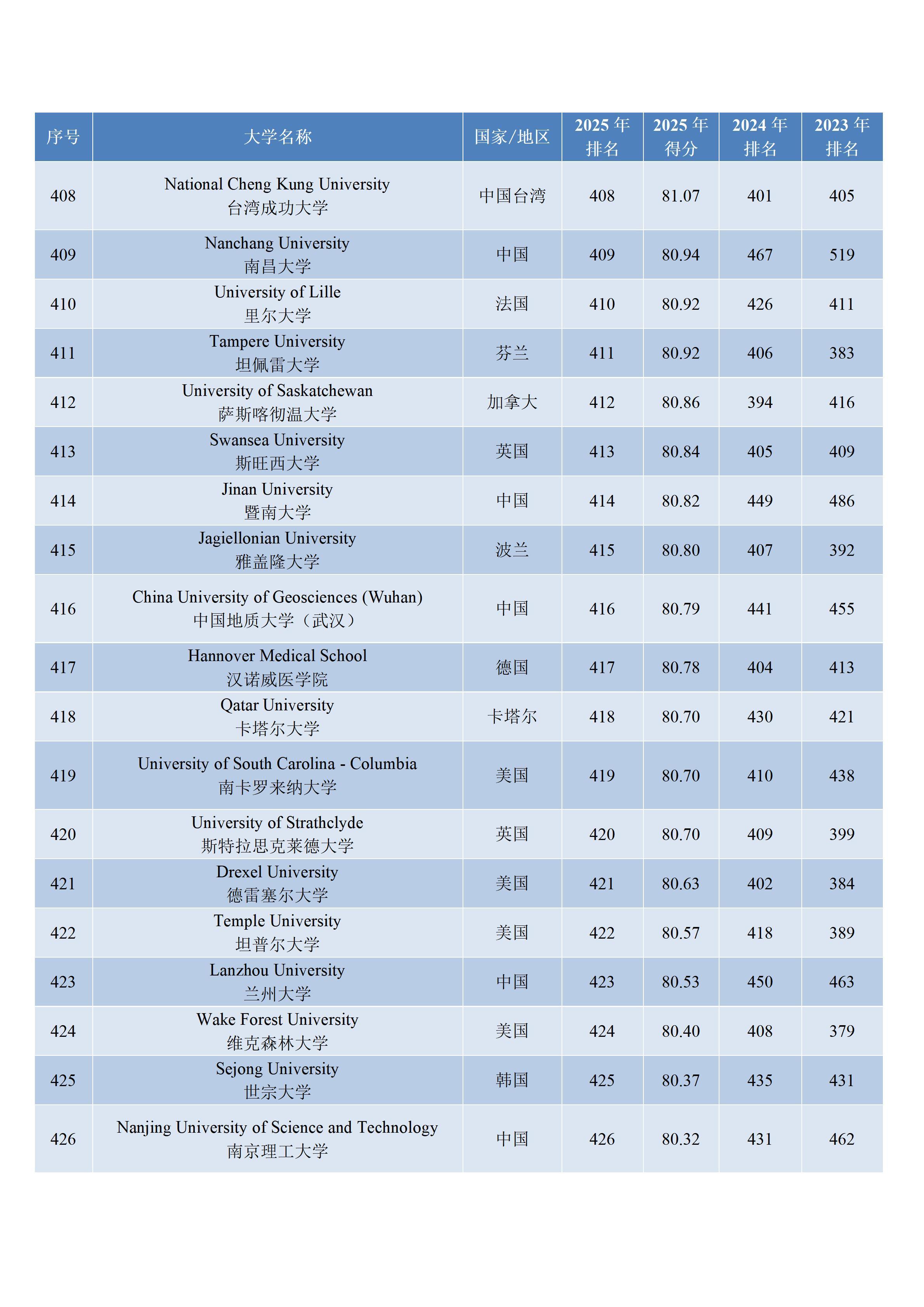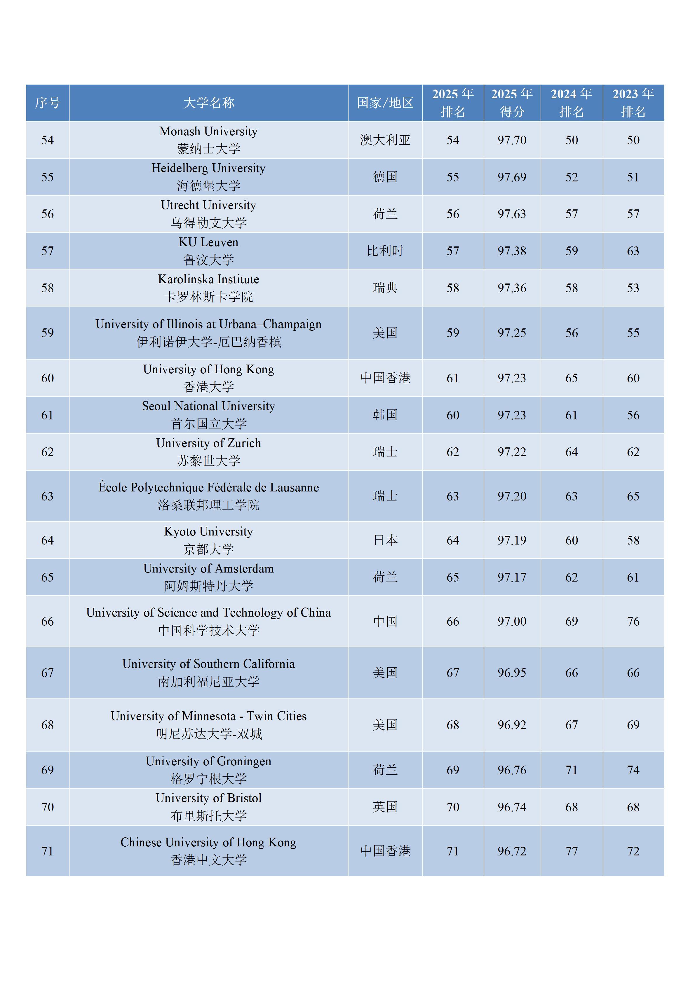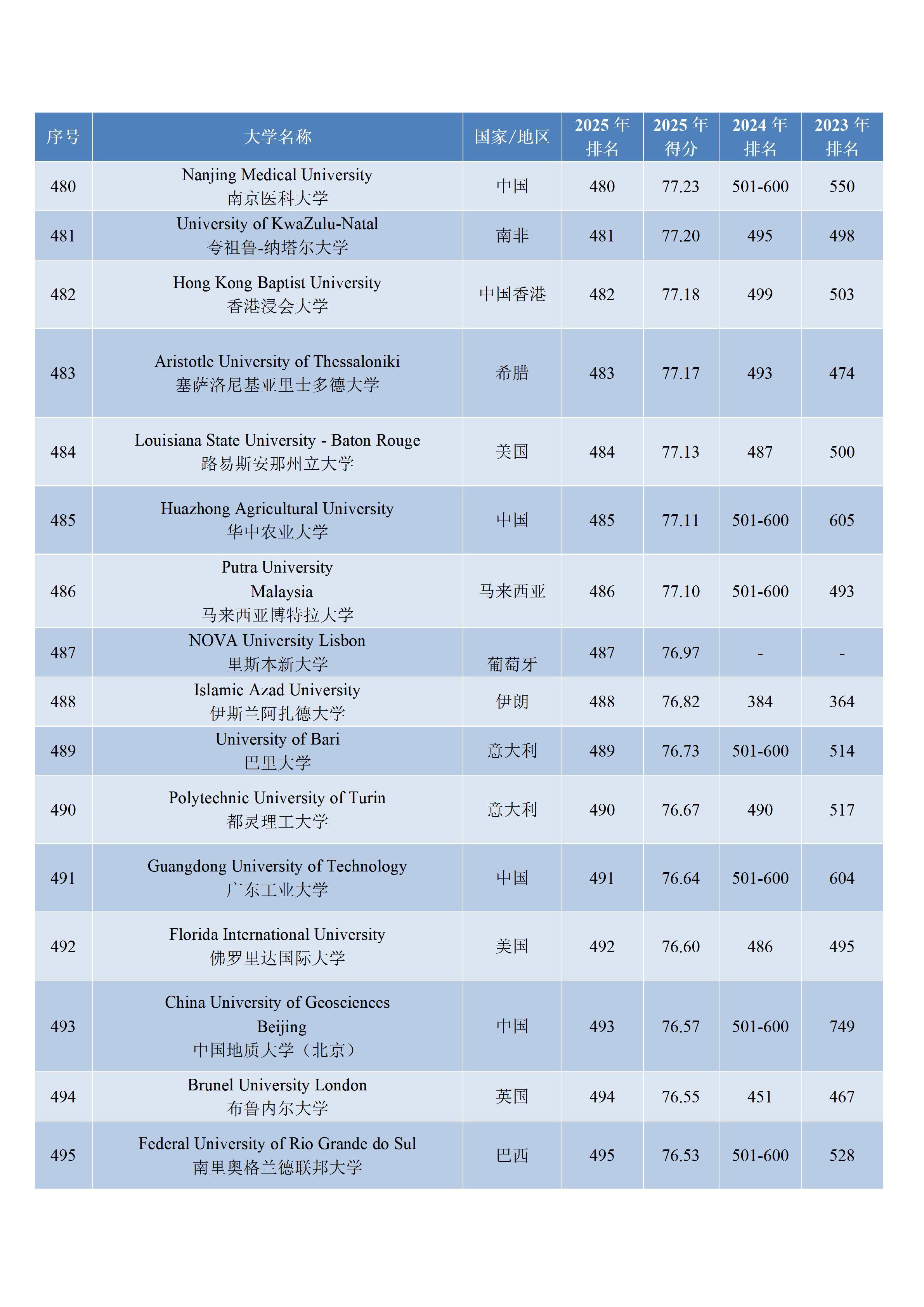 多校排名大幅提升:佛山大学3年升316名(2025年1274名),华南农业大学升136名(2025年512名),广东工业大学升113名(2025 年491名),东莞理工学院升87名(2025年1413名),南方医科大学升75名(2025年404名)。香港城市大学、香港理工大学等连续3年上升,澳门大学稳定在前500。