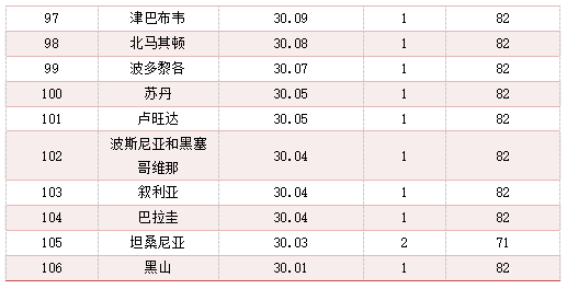 英国、德国、意大利入选大学数量少于日本,但世界大学第三方指数竞争力总得分高于日本,可见英国、德国、意大利拥有高水平大学的比例高于日本。2025年106个国家/地区的世界大学第三方指数竞争力总得分及排名详见下表。